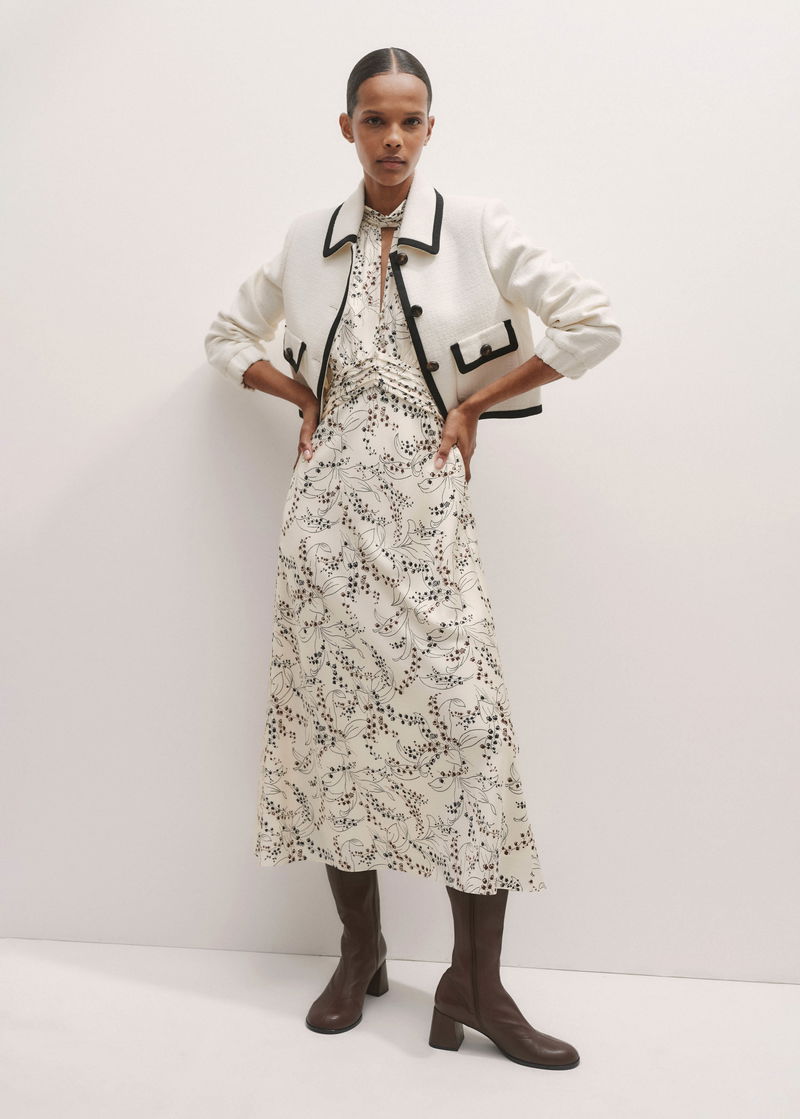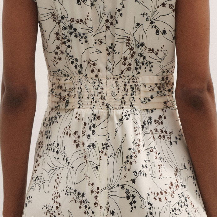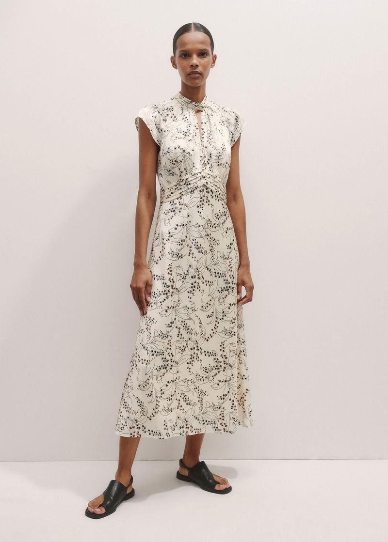 Lily Of The Valley Print Midi Tea Dress Light Cream/Black/Multi