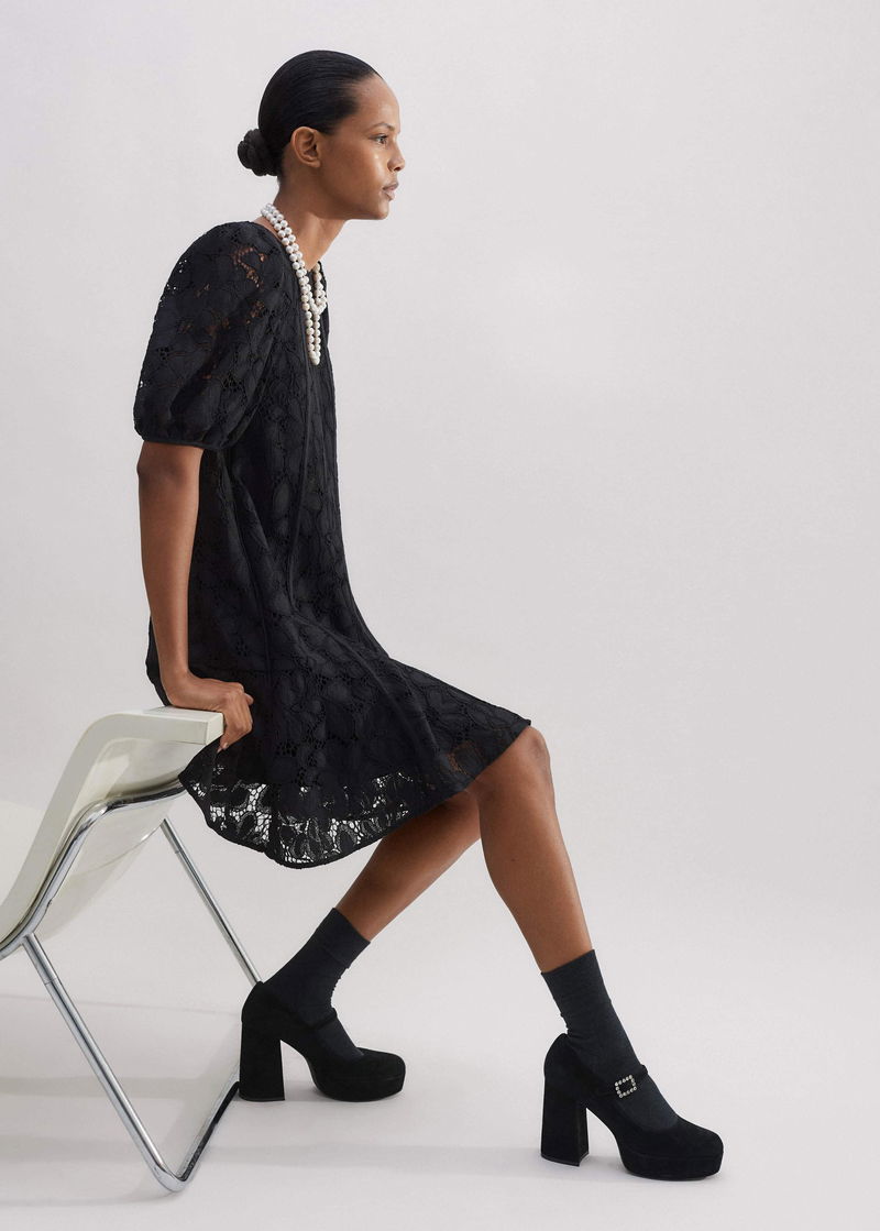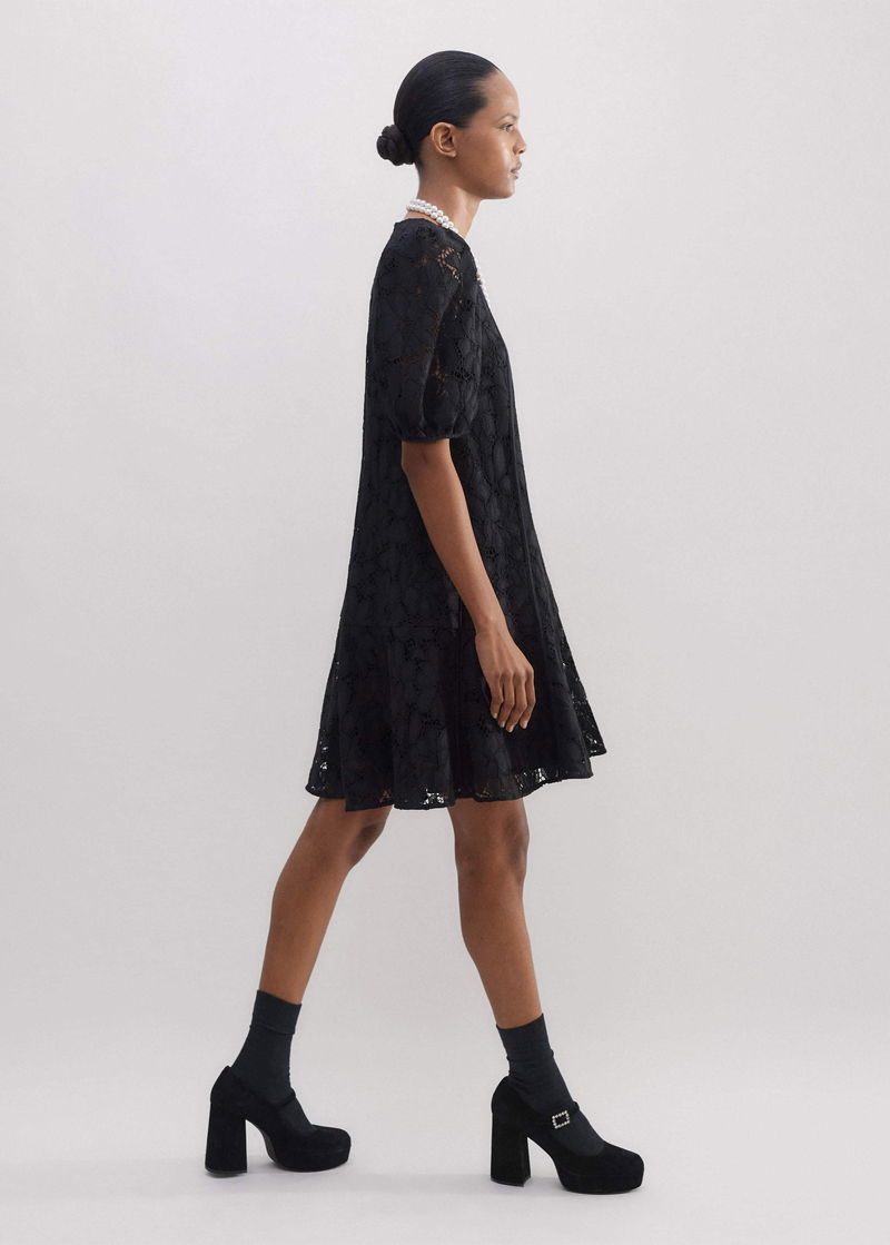 Lined Lace Mini Dress Black