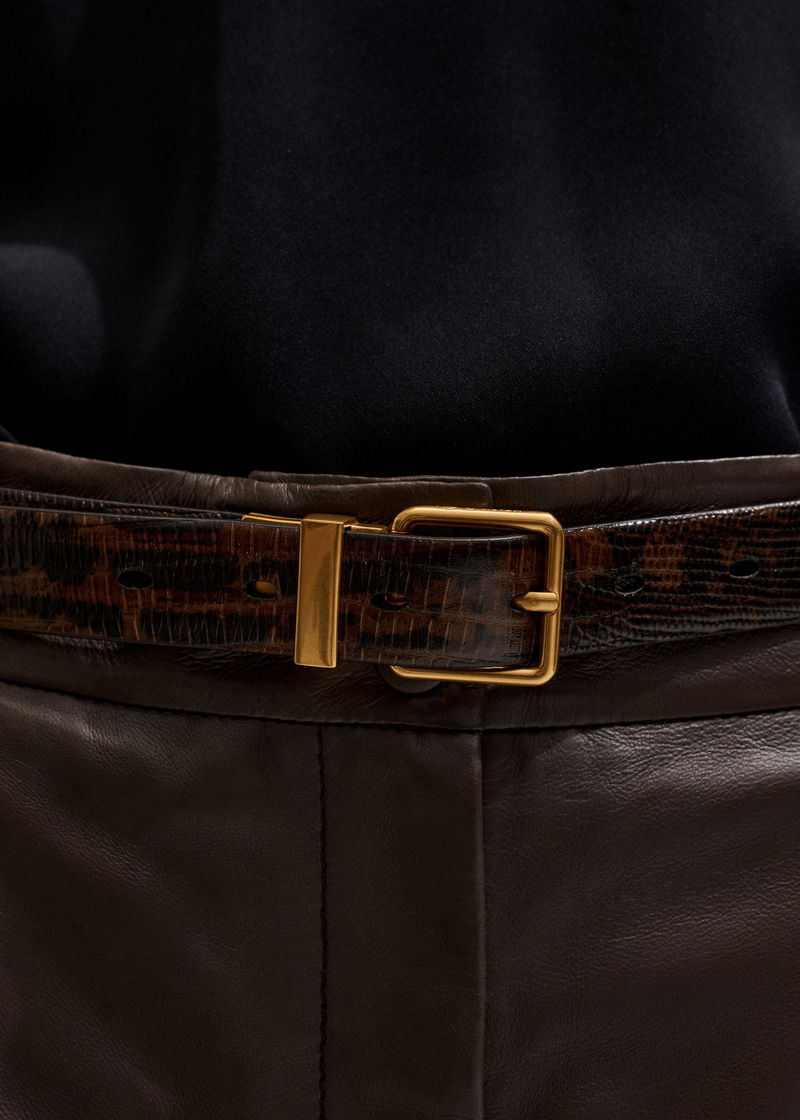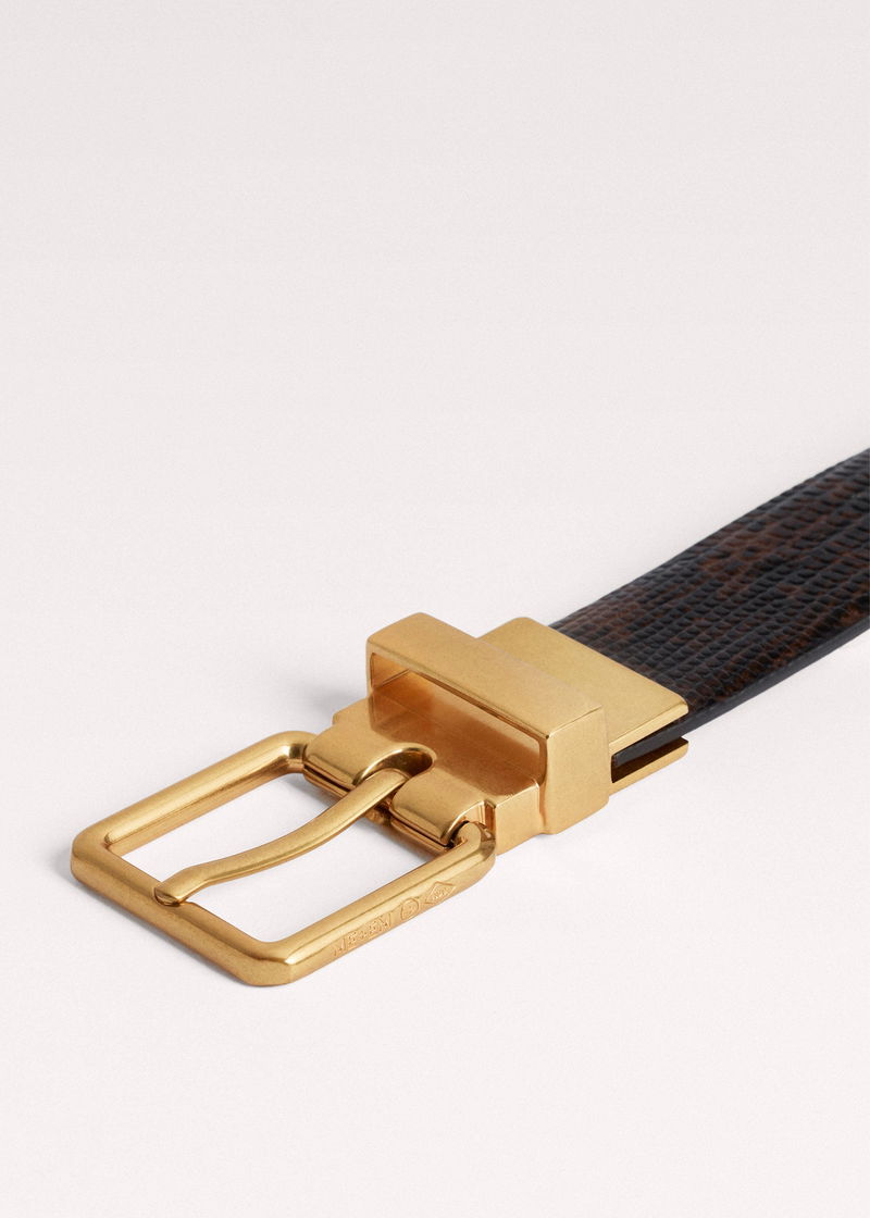 ME+EM's Toffee Brown Lizard Embossed Reversible Belt is designed with a reversible buckle to achieve two different finishes.