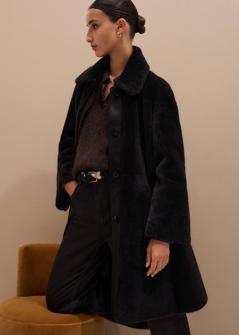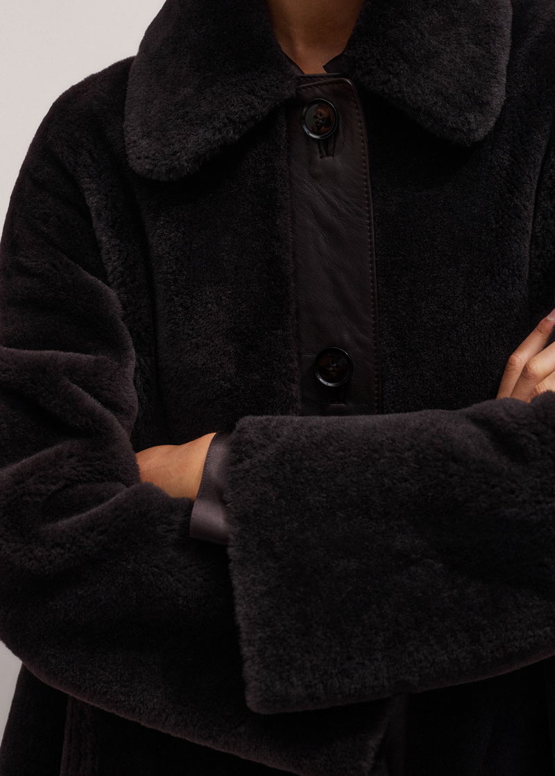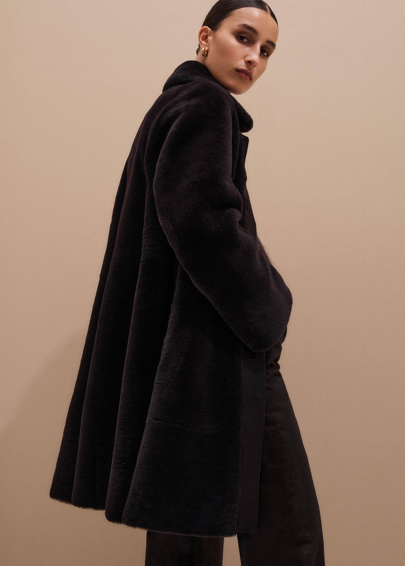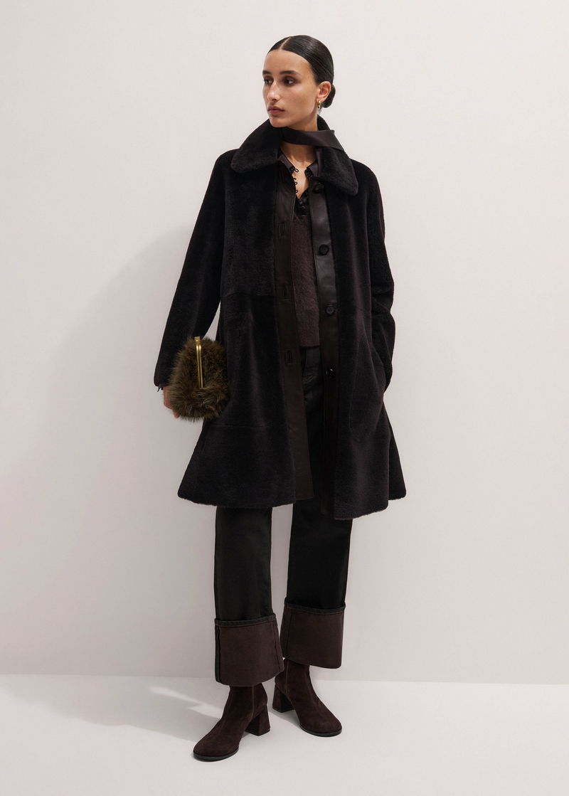 Luxe Shearling Leather Mix Swing Coat Chocolate
