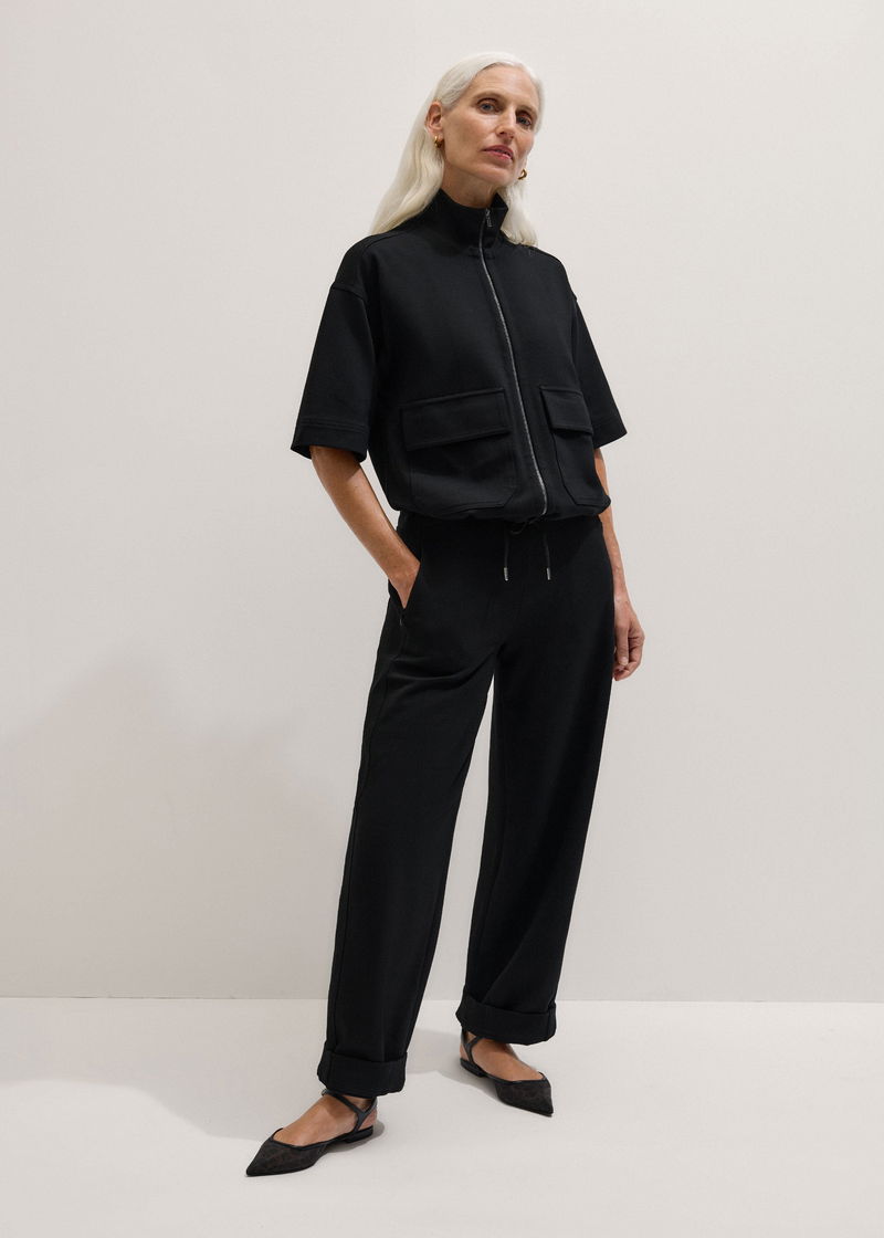 Luxe Travel Tailoring Barrel-Leg Trouser Black