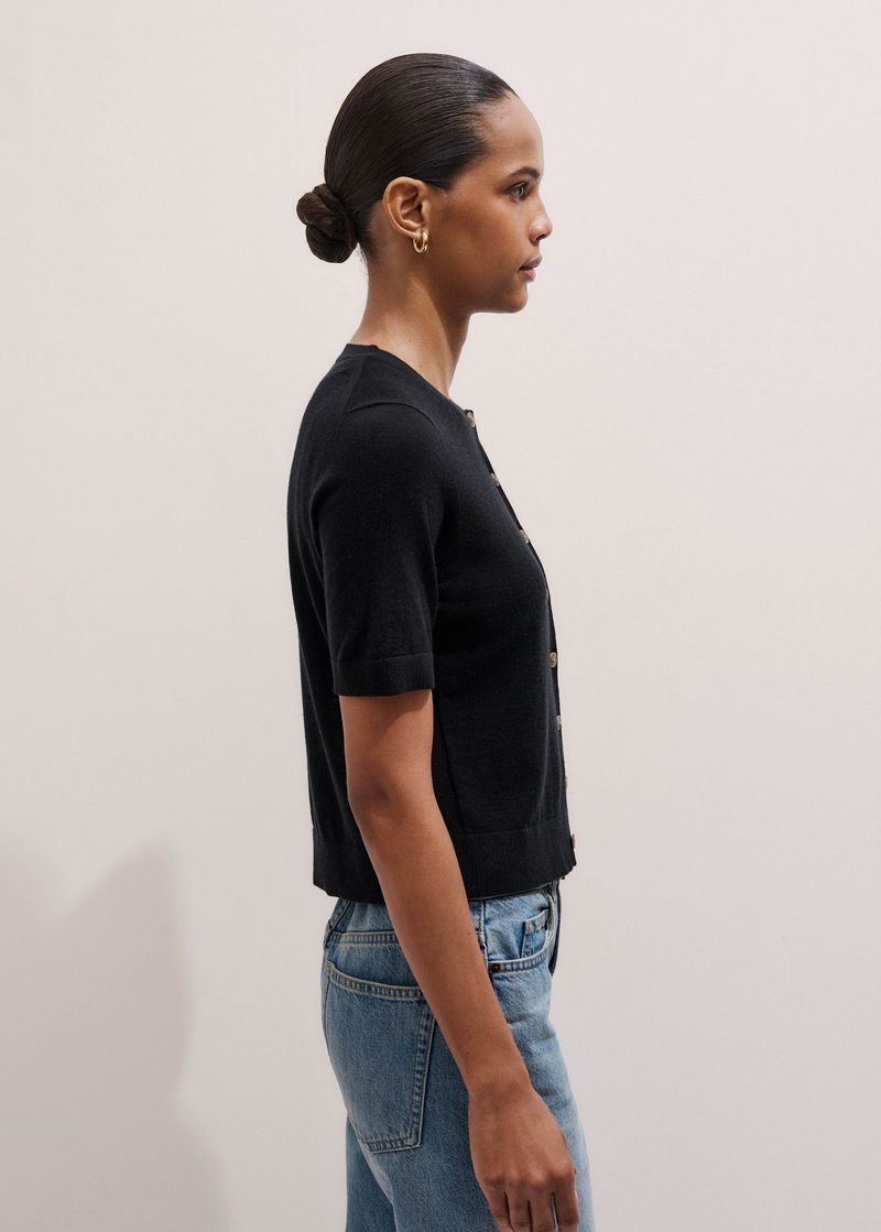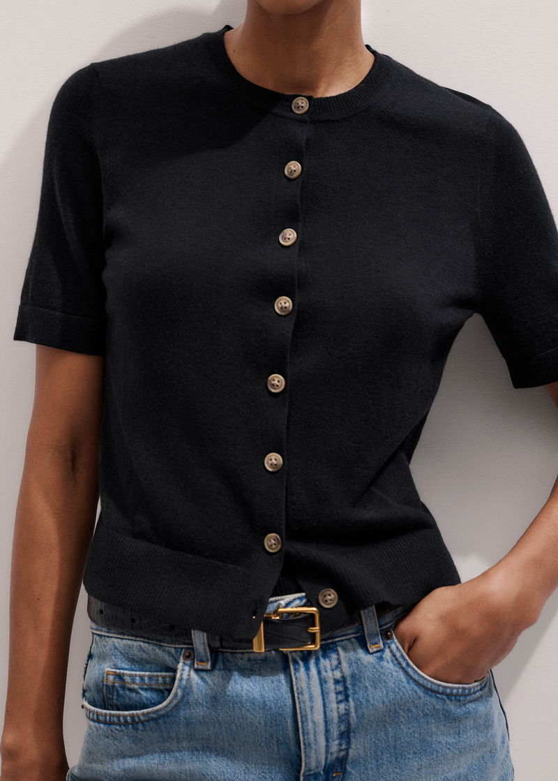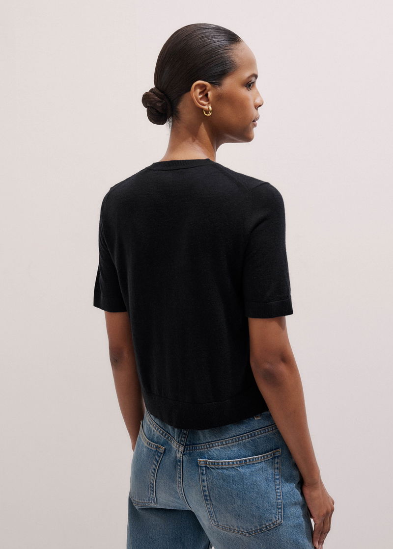 Merino Cashmere Barely There Buttoned Knit Tee Black
