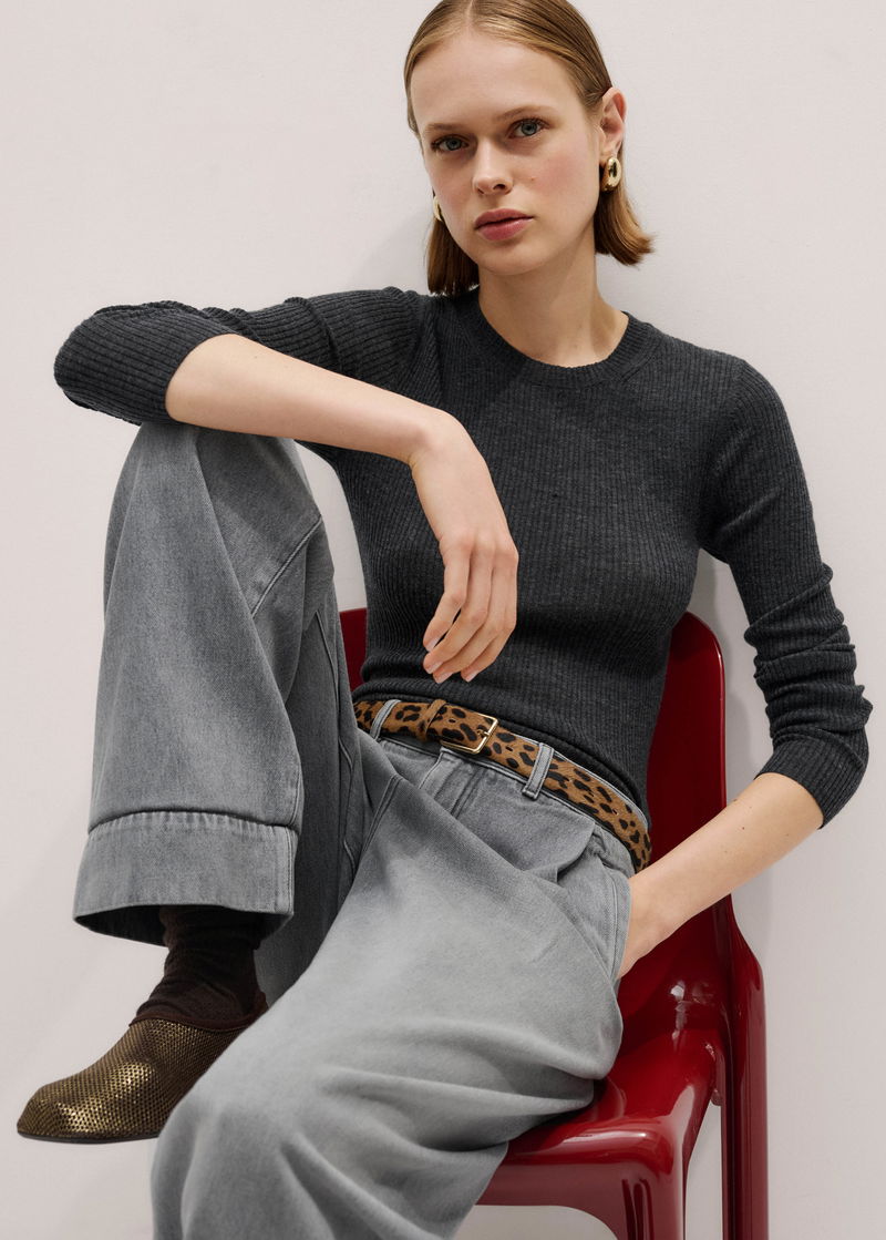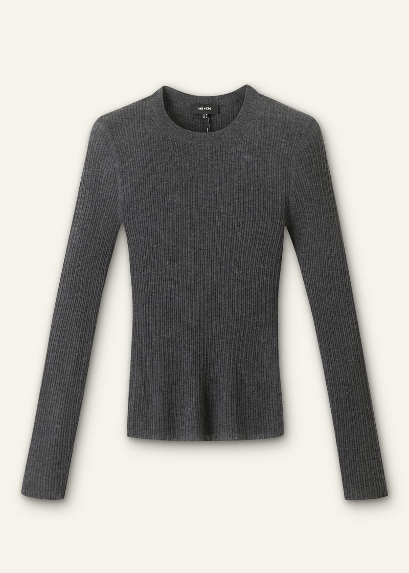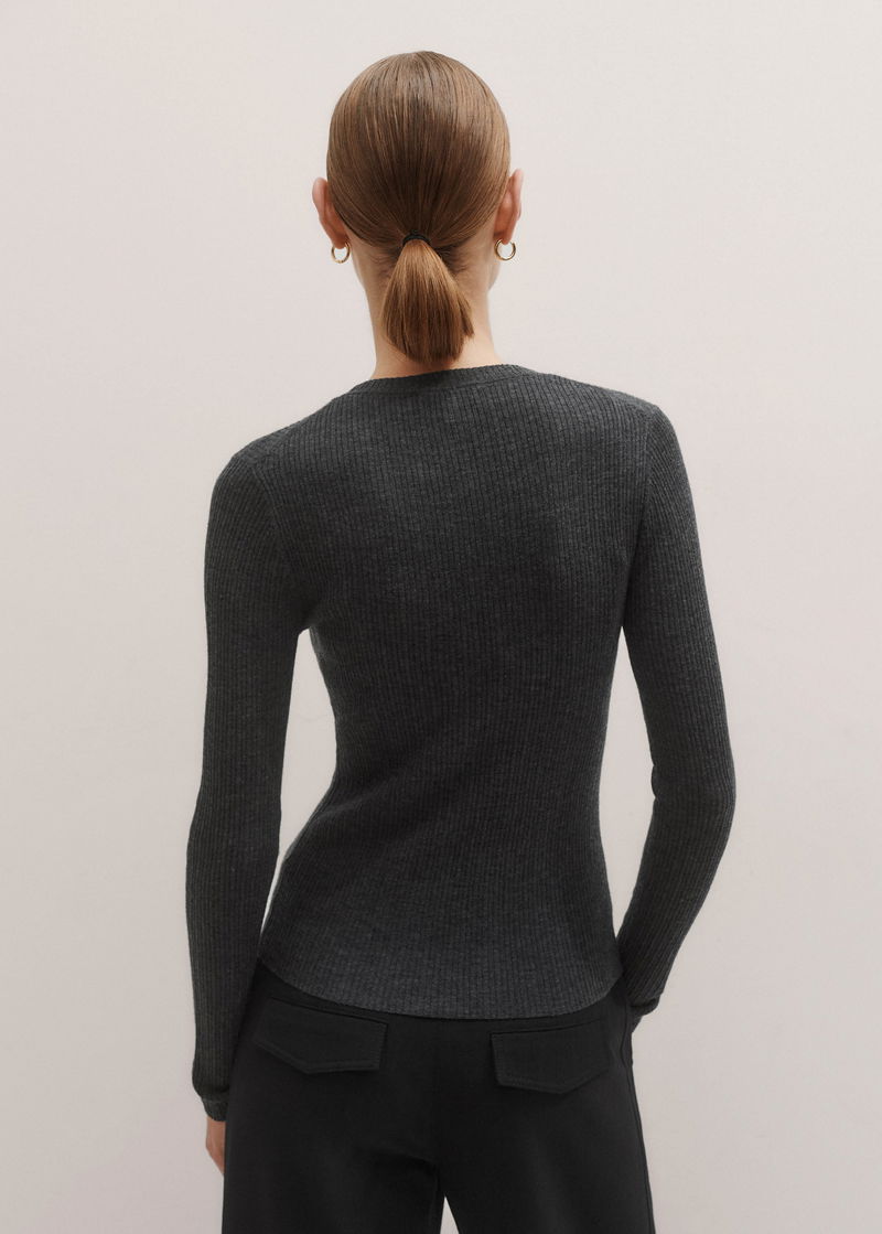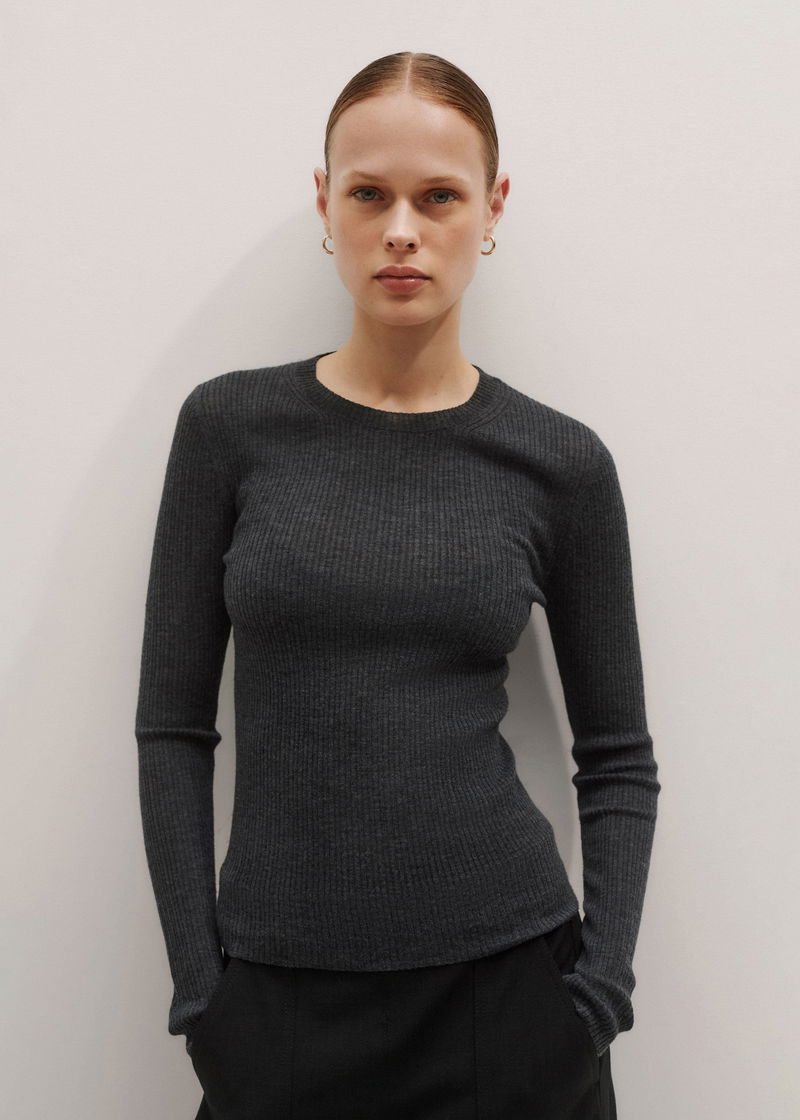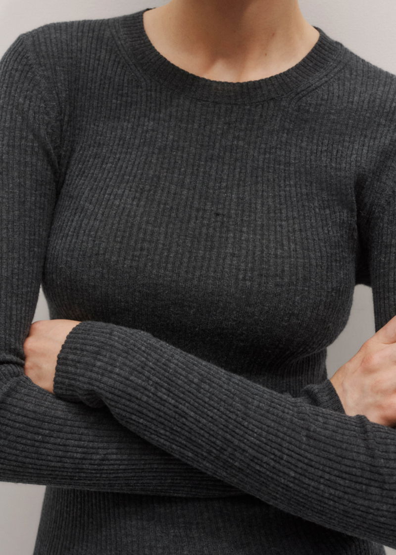 Merino Cashmere Barely There Rib Layering Jumper Dark Charcoal Mélange