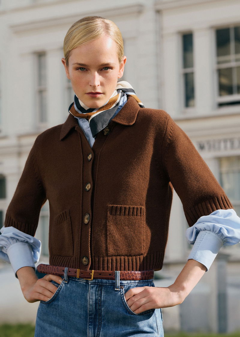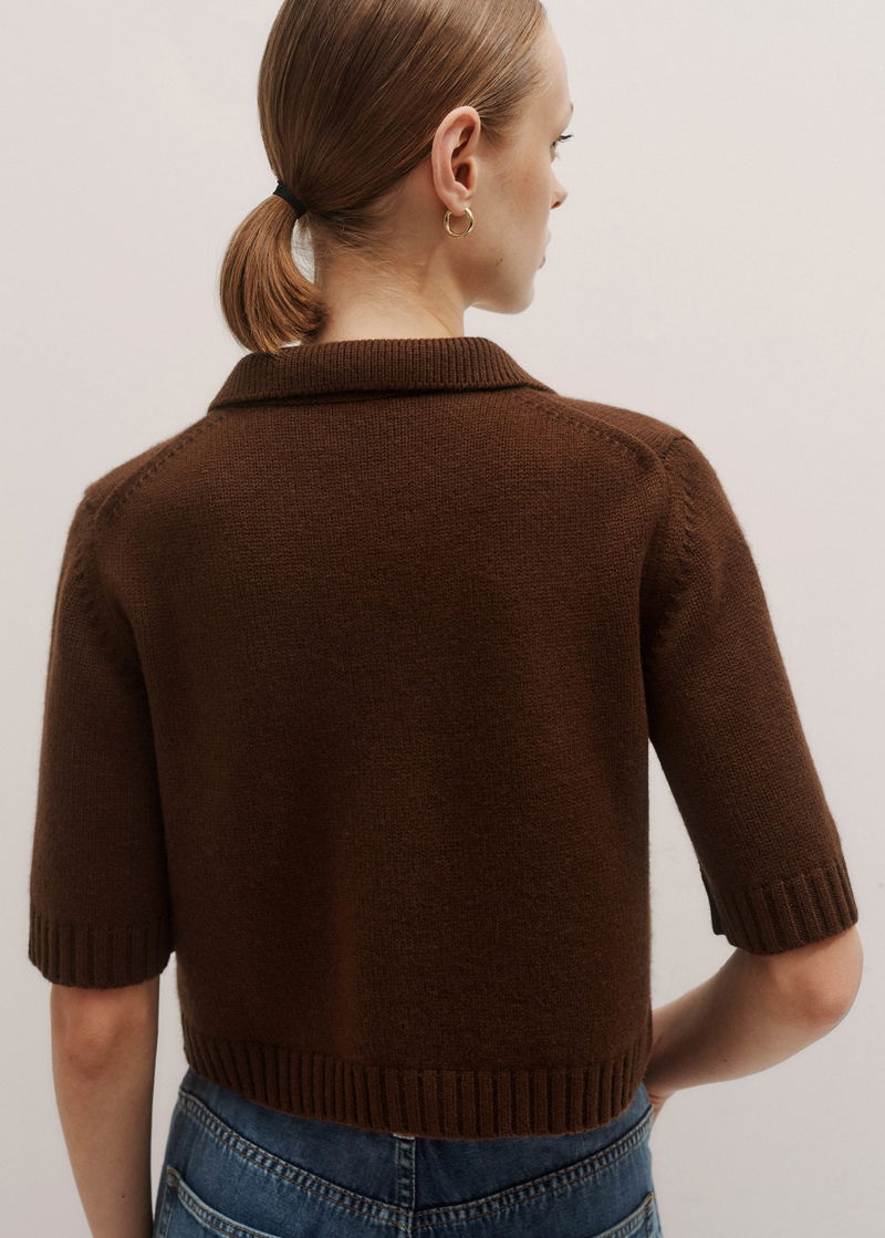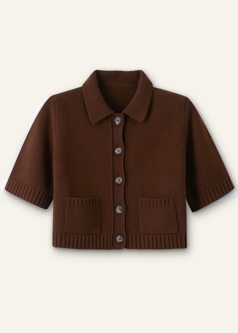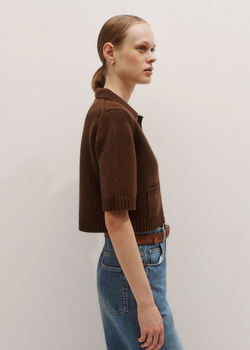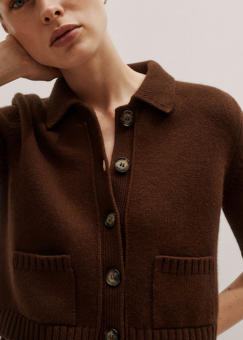 Merino Cashmere Cropped Knit Jacket Chestnut Brown