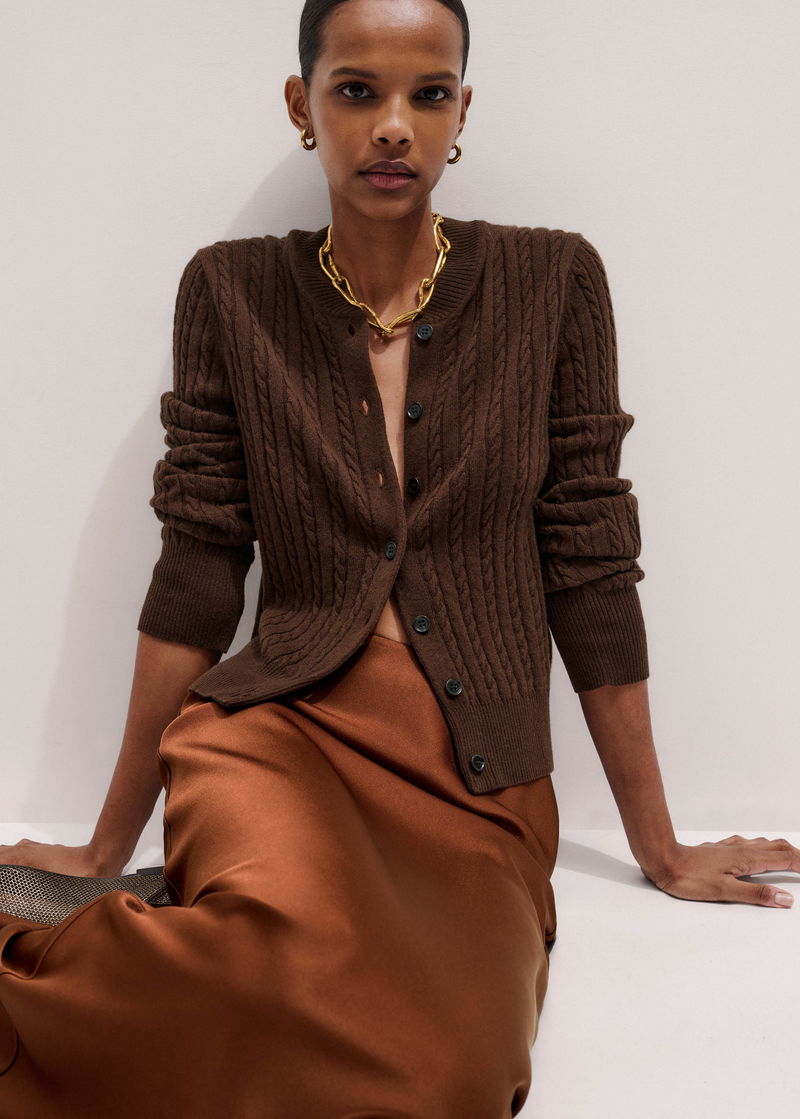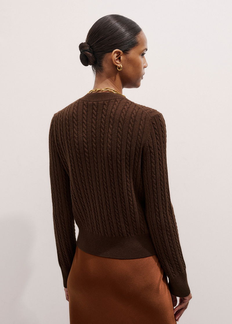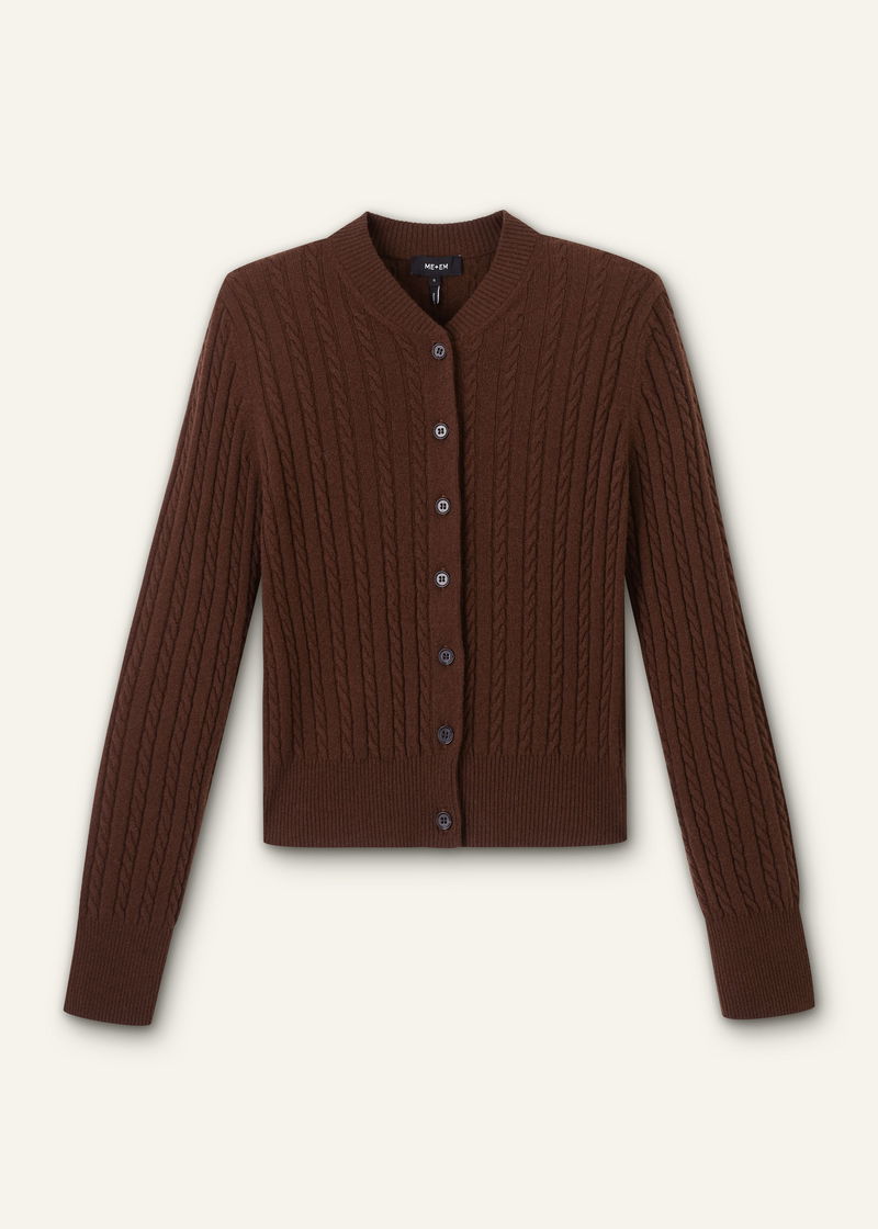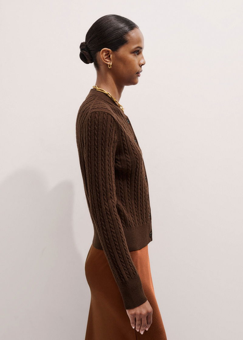 Merino Cashmere Micro Cable Cardigan Deep Chestnut