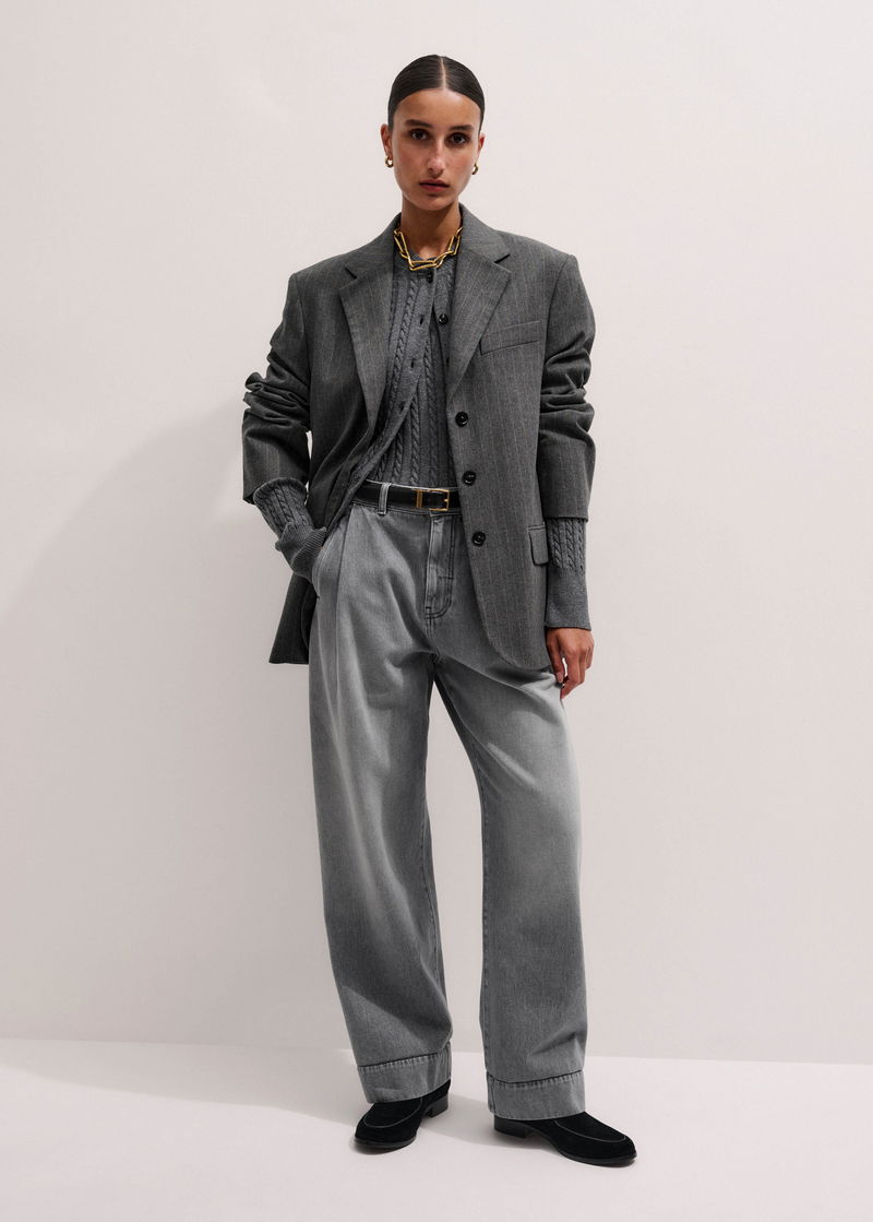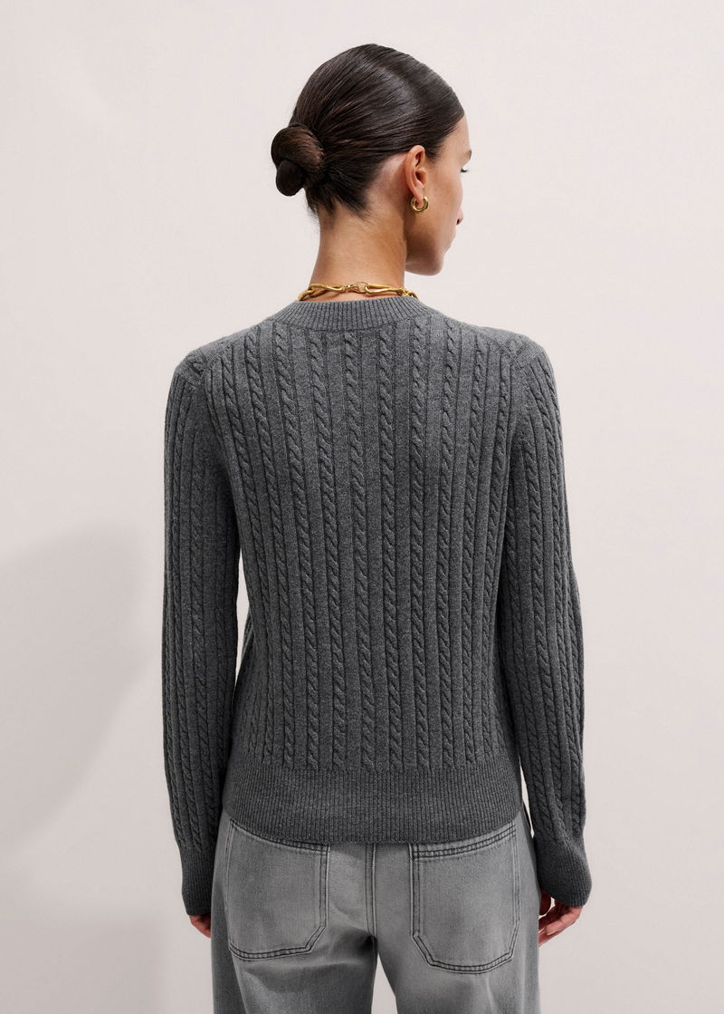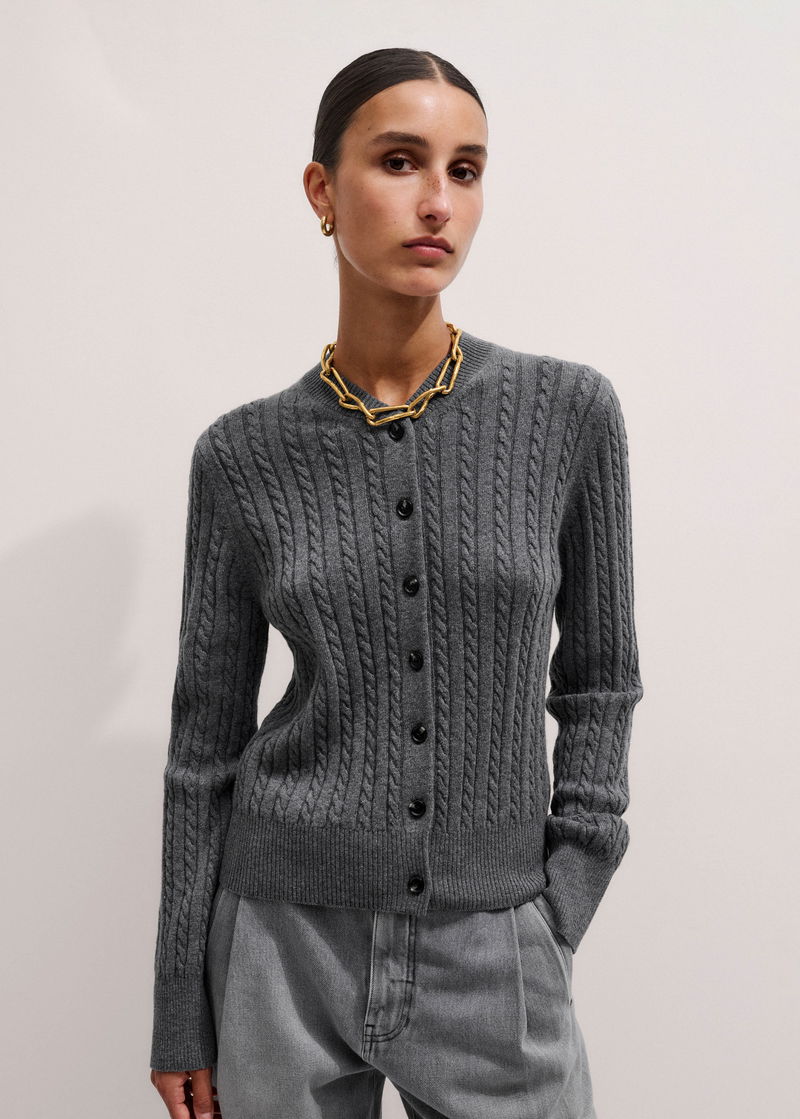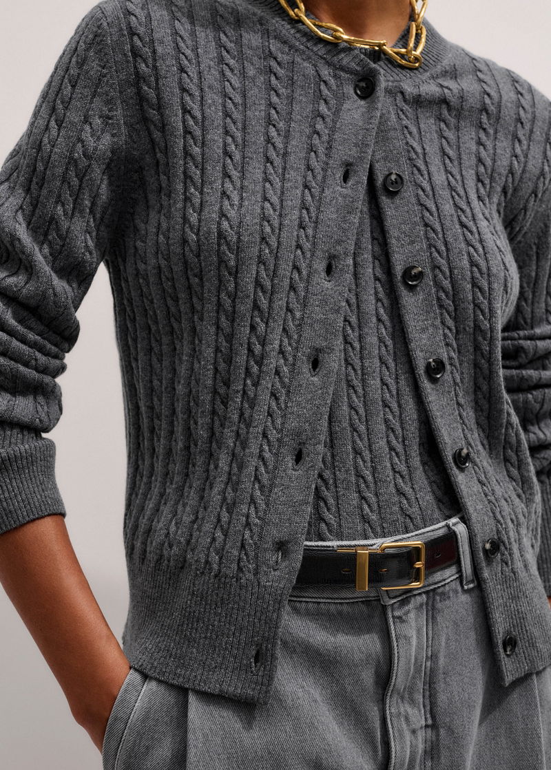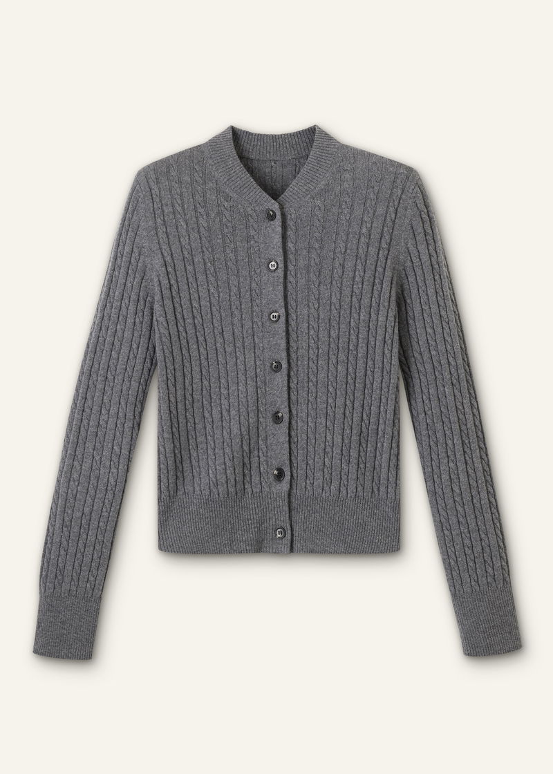 Merino Cashmere Micro Cable Cardigan Mid Grey Mélange
