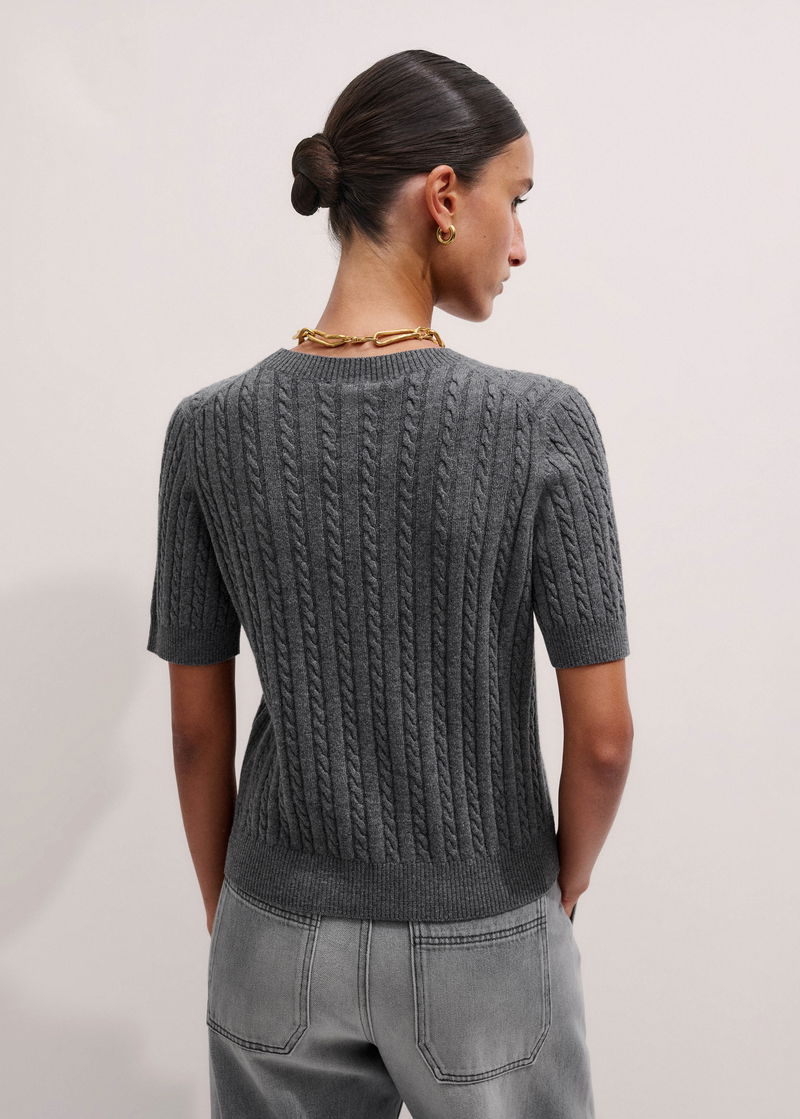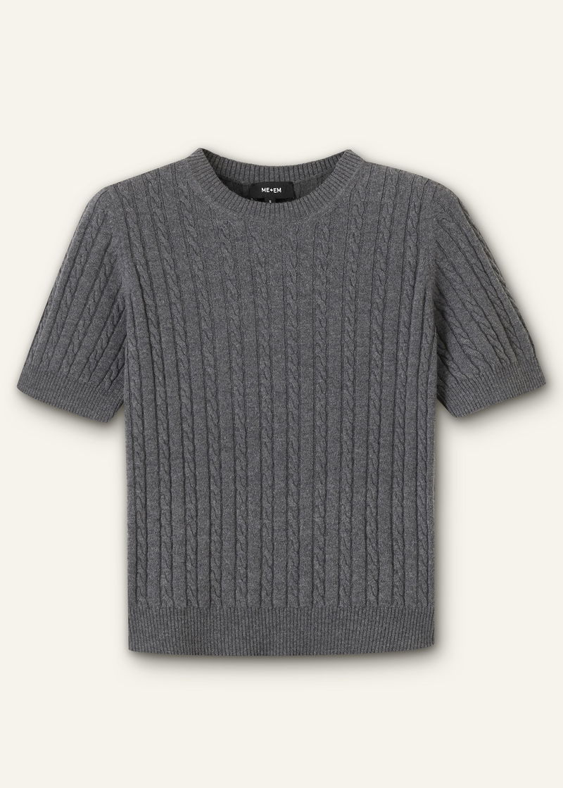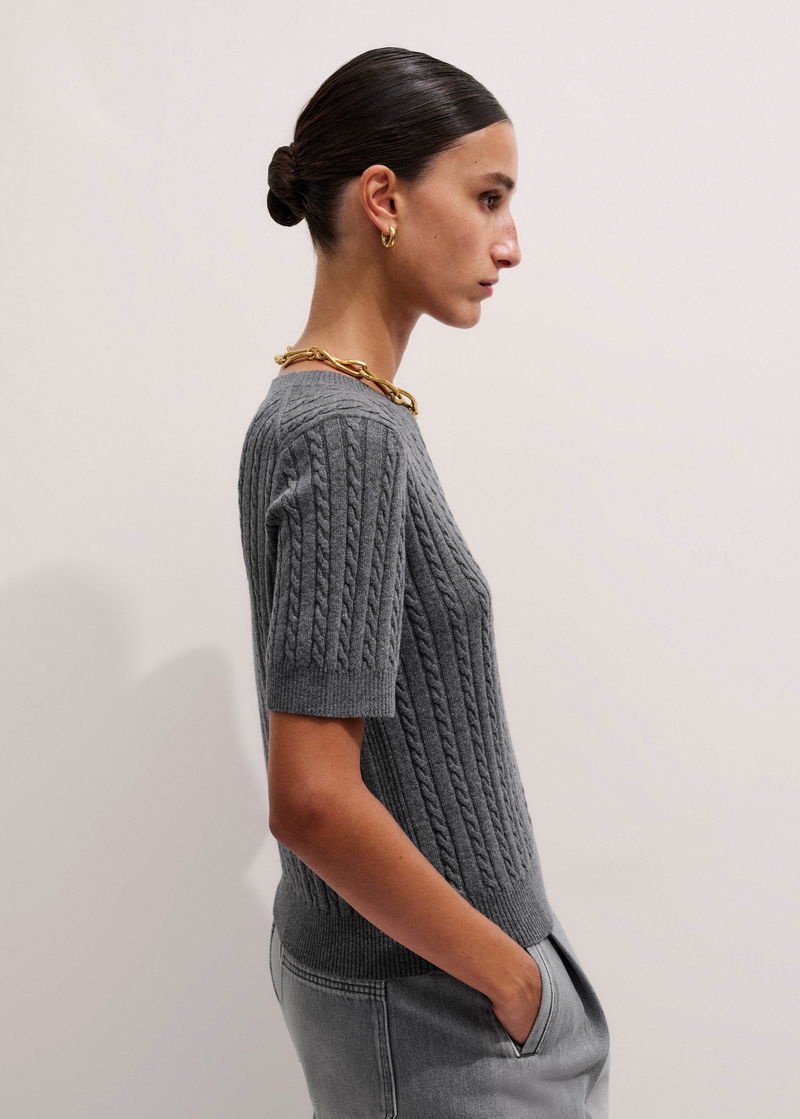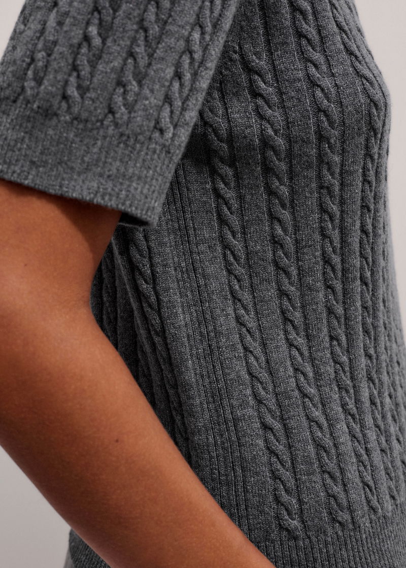 Merino Cashmere Micro Cable Knit Tee Mid Grey Mélange