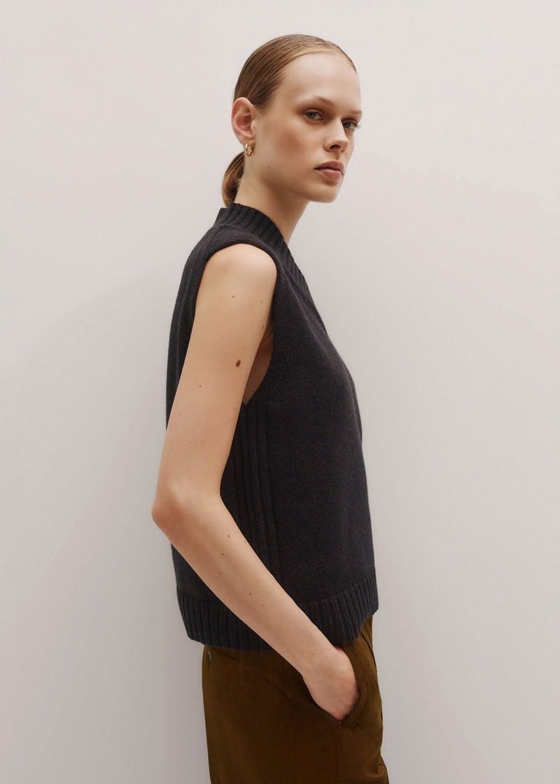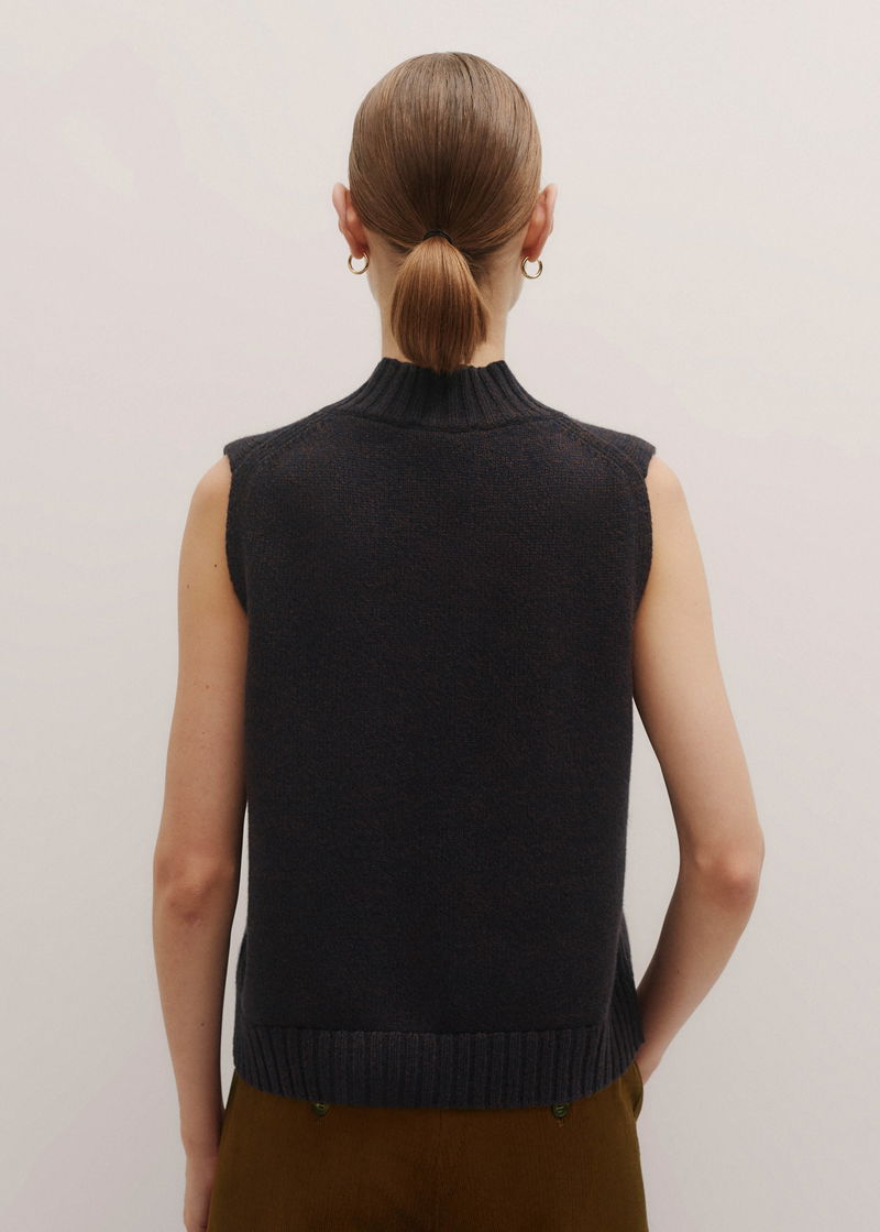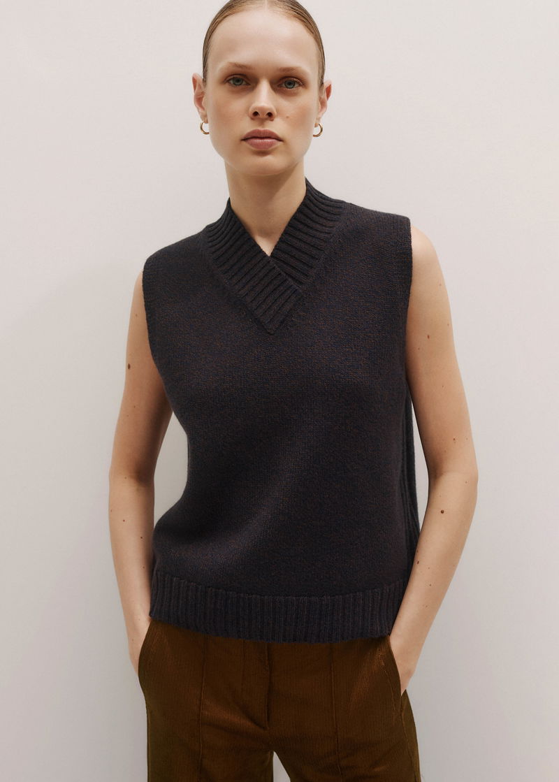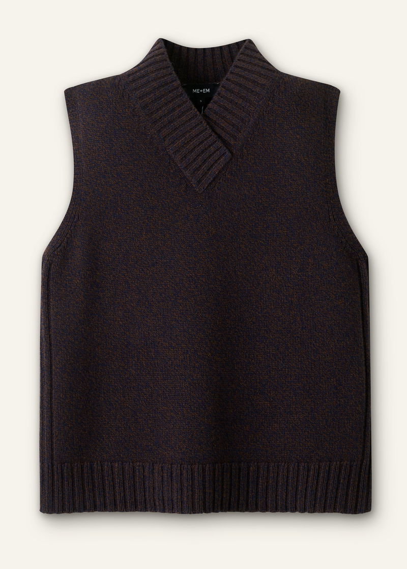 Merino Cashmere Mouliné Knit Vest Navy/Chocolate