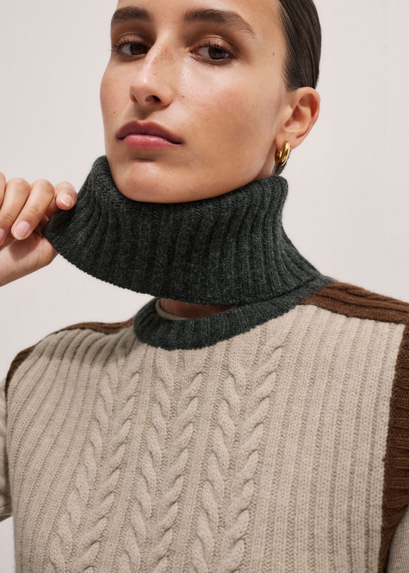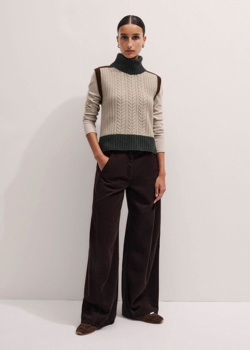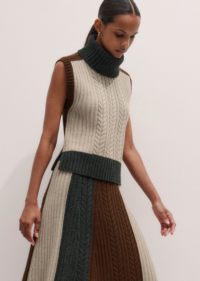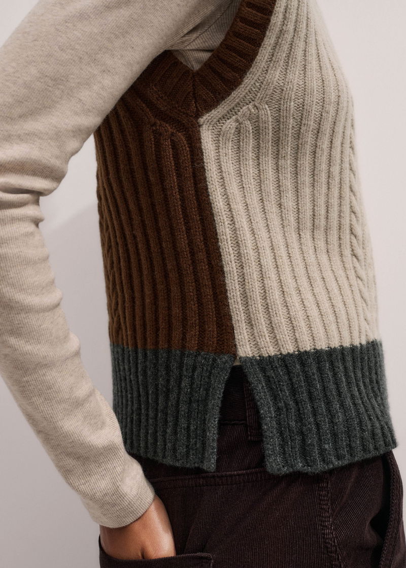 Merino Cashmere Patched Cable Knit Vest Hazelnut Mélange Multi