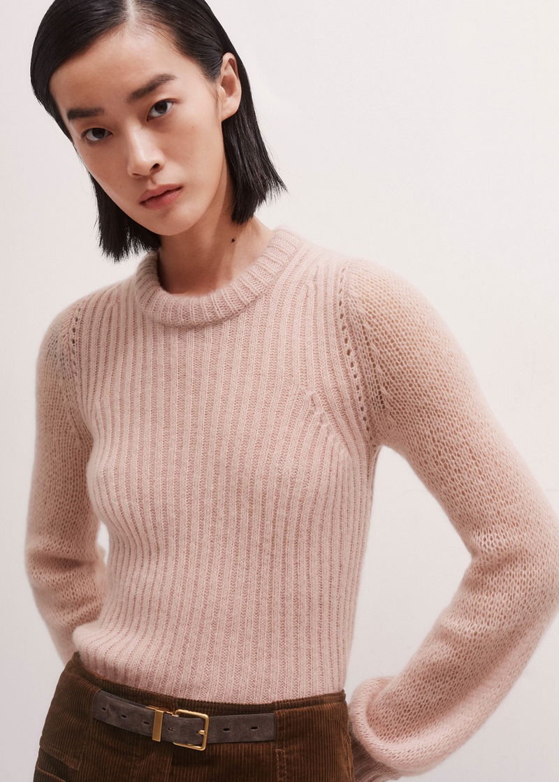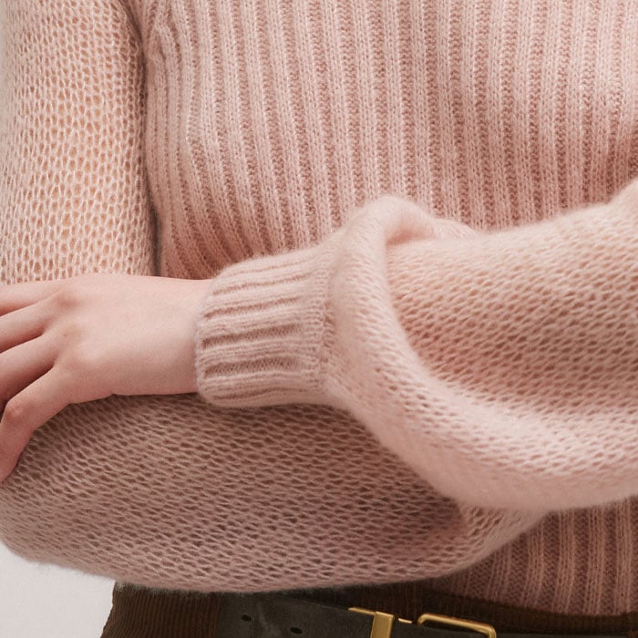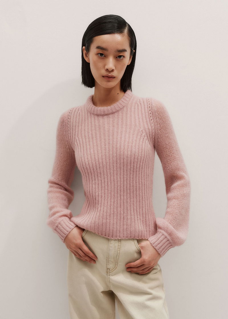 Merino Cashmere Silk Lofty Balloon Sleeve Jumper Smoke Pink