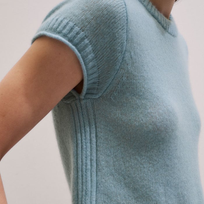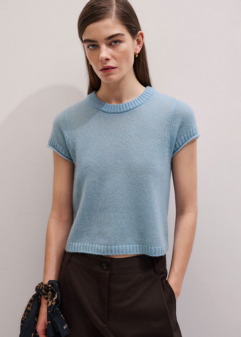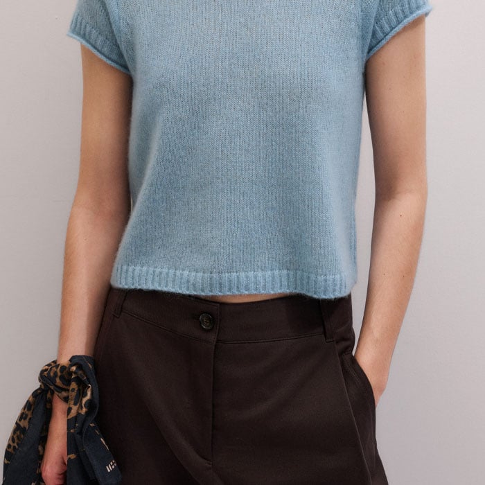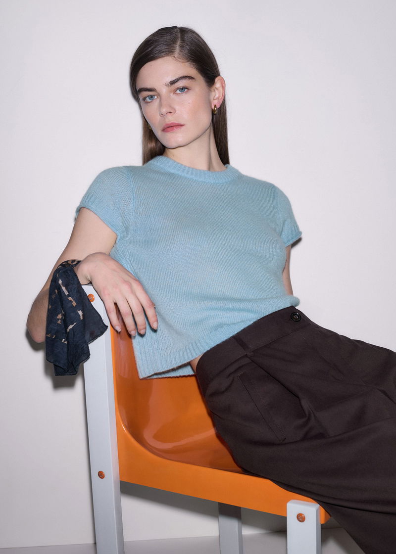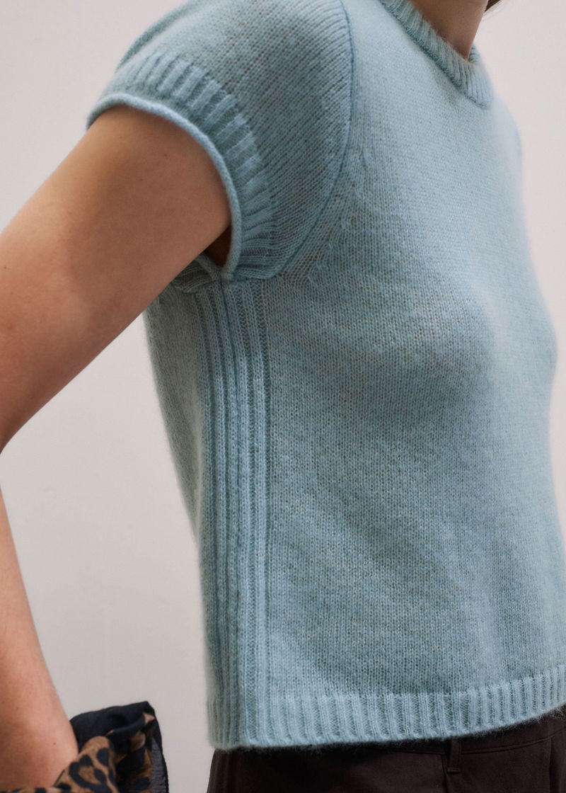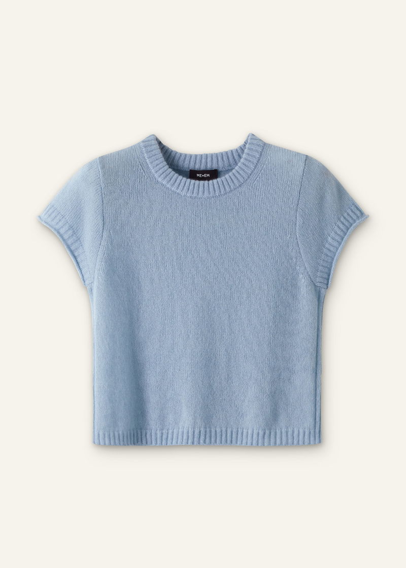 Merino Cashmere Silk Shrunken Baby Tee Chambray Blue