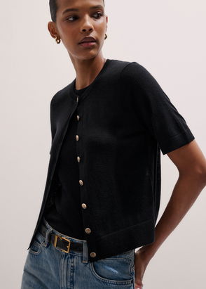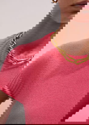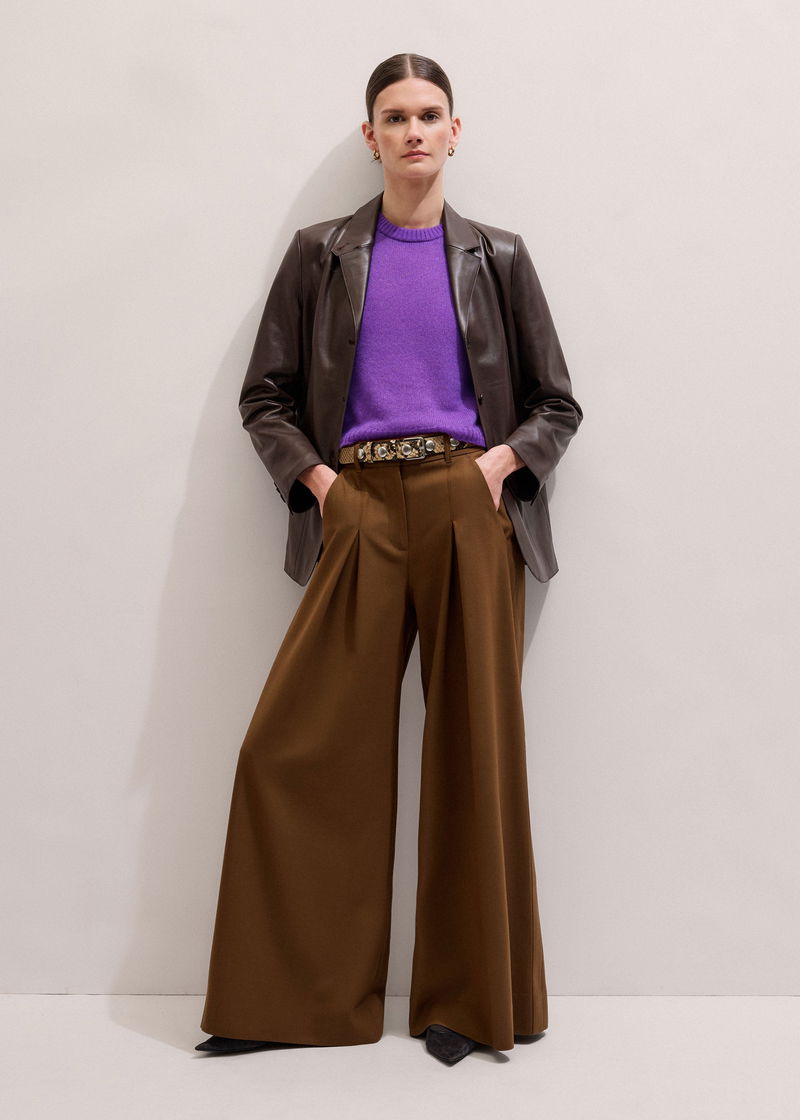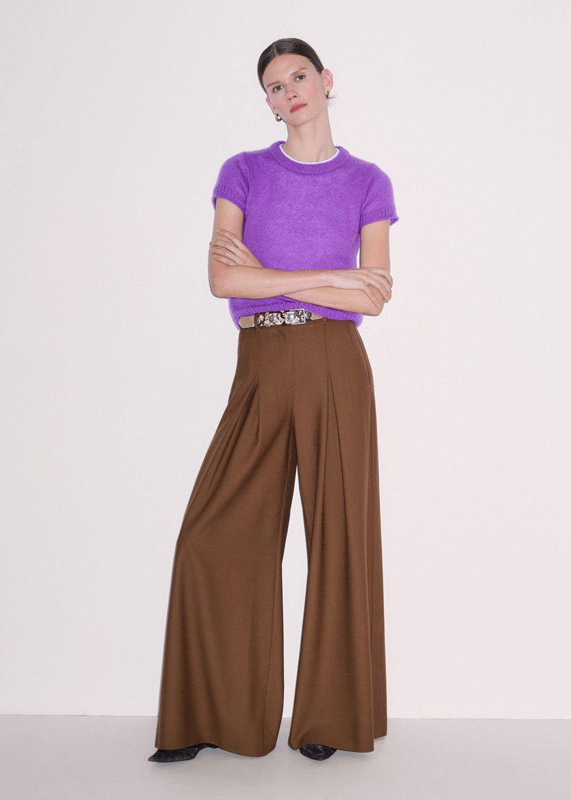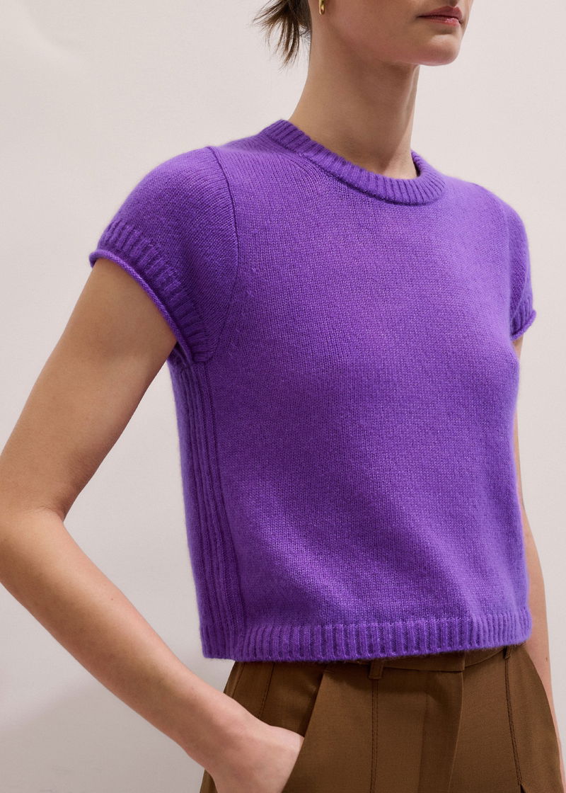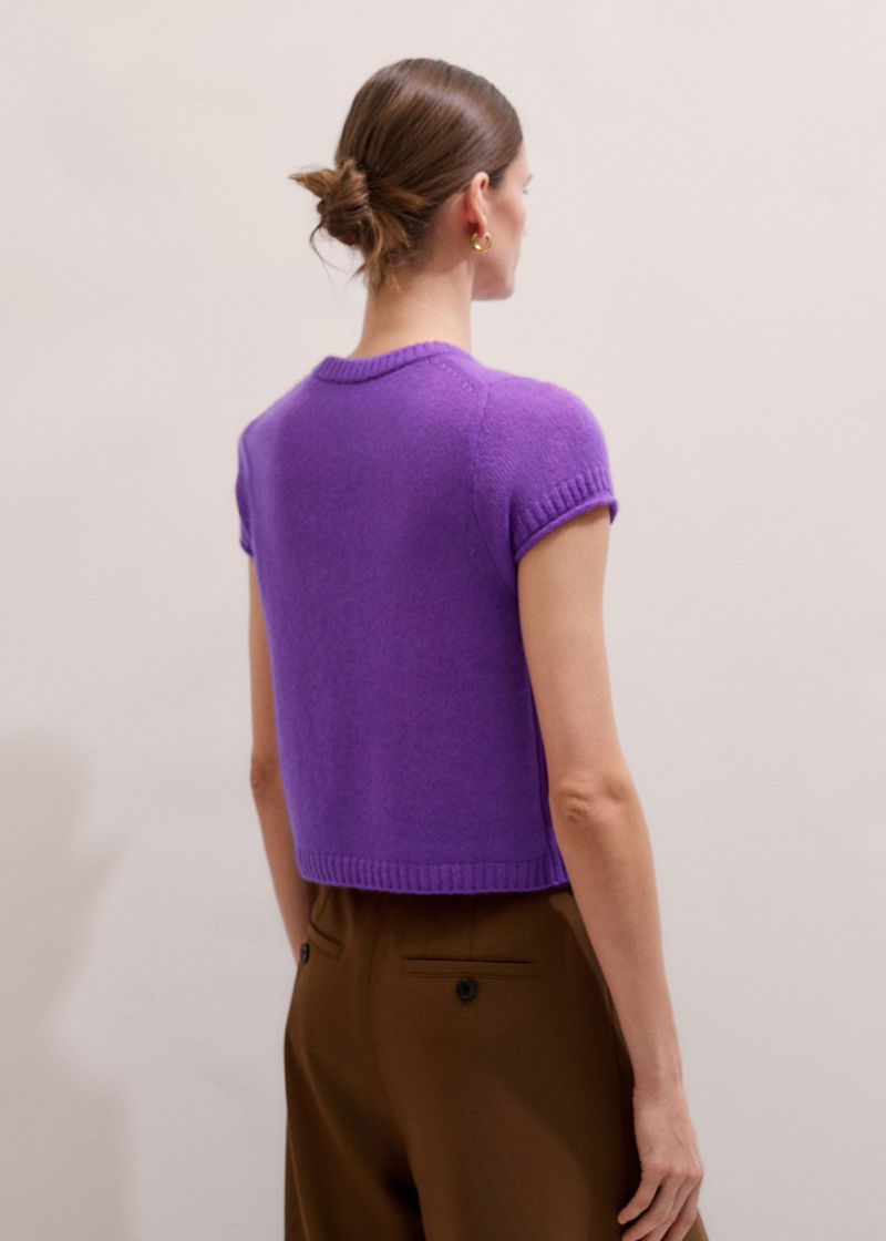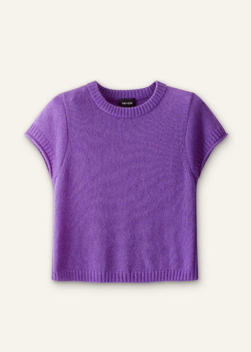 ME+EM's Purple Merino Cashmere Silk Straight Baby Tee spotlights a bold colour-pop shade for a statement-making finish.