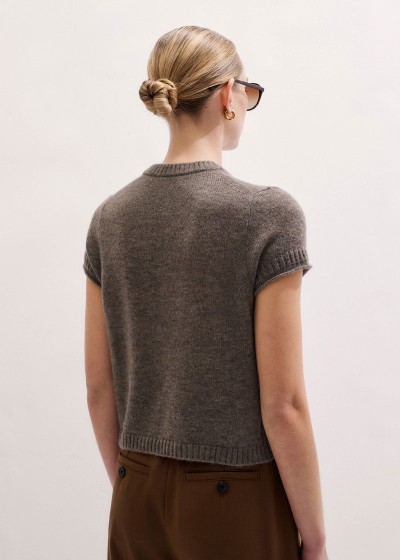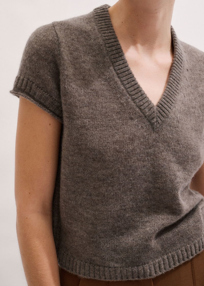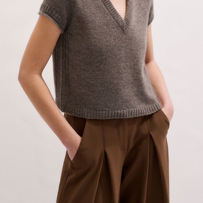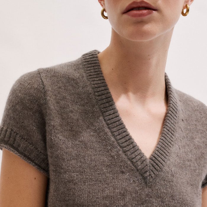 Merino Cashmere Silk V-Neck Straight Baby Tee Hazelnut