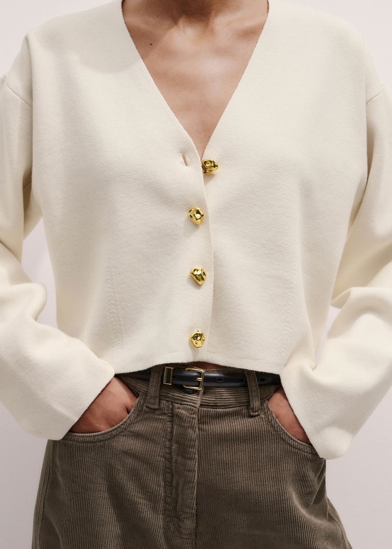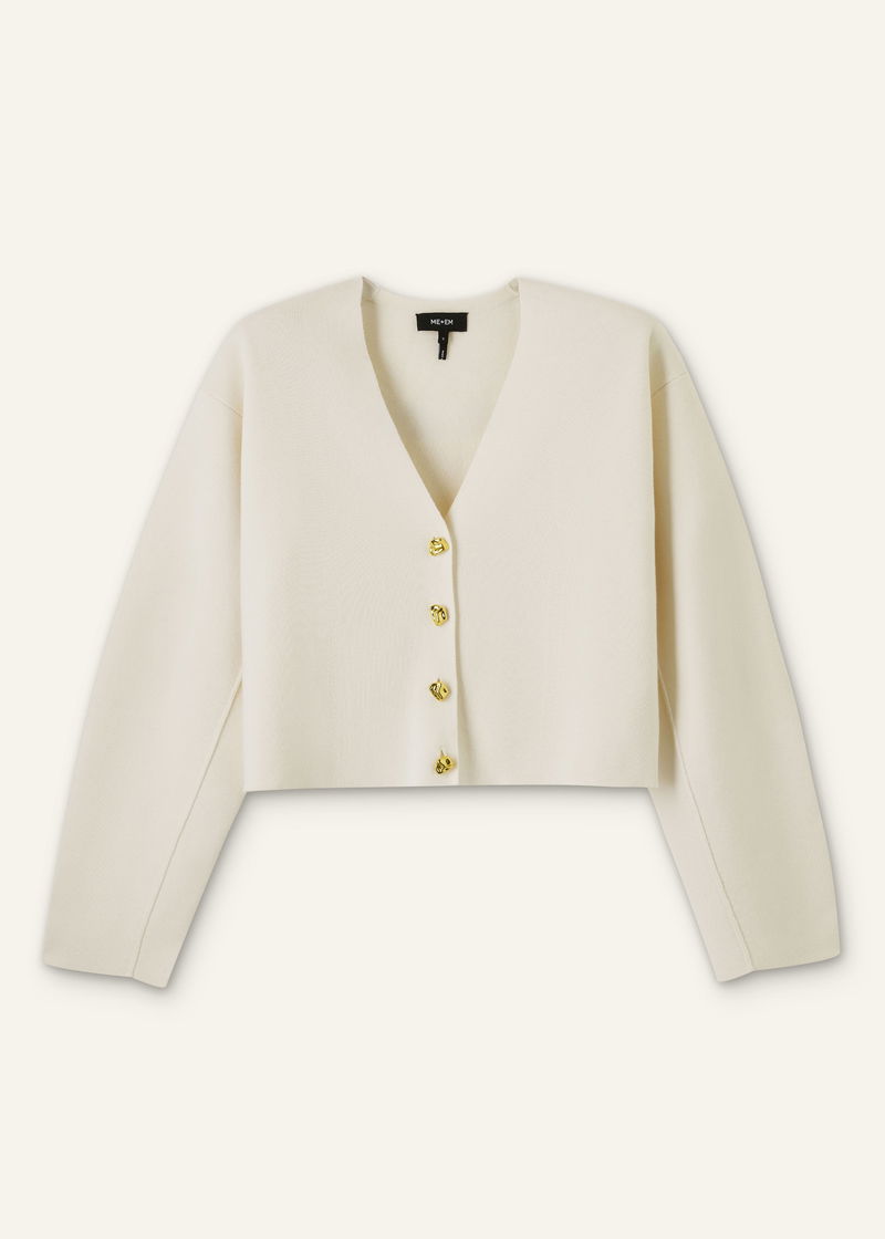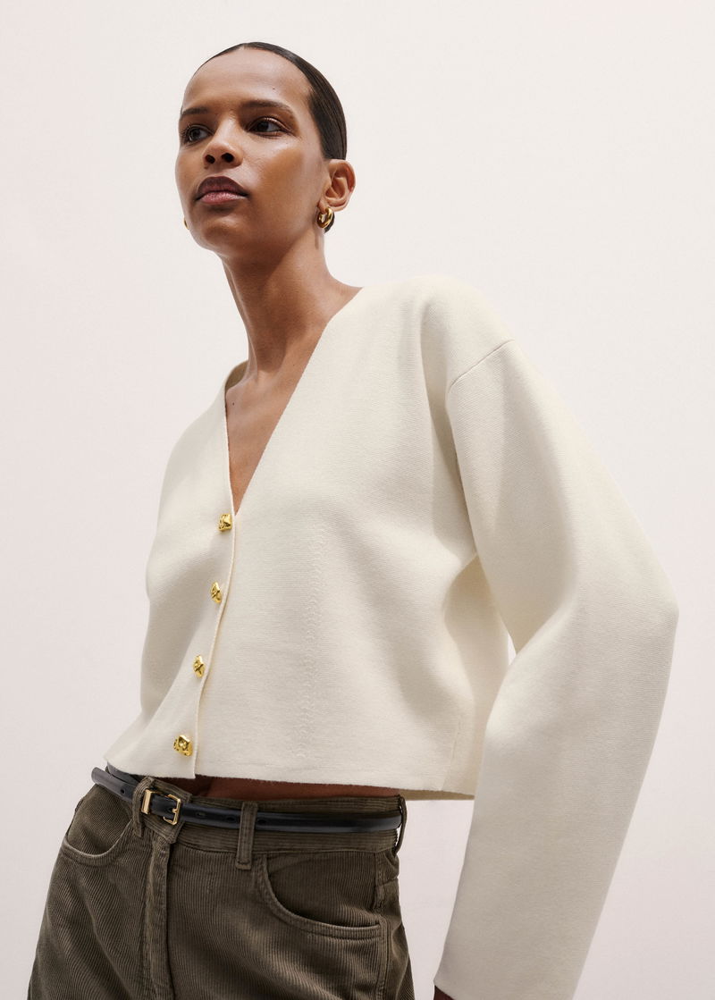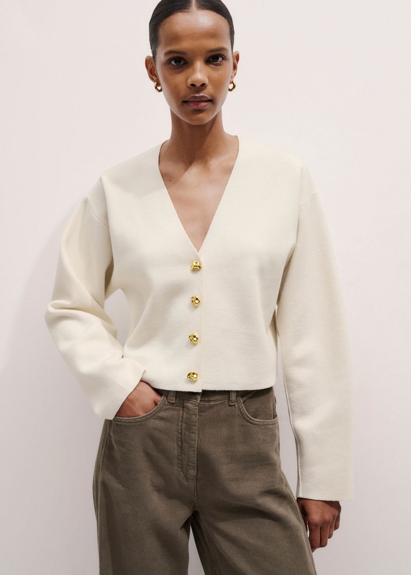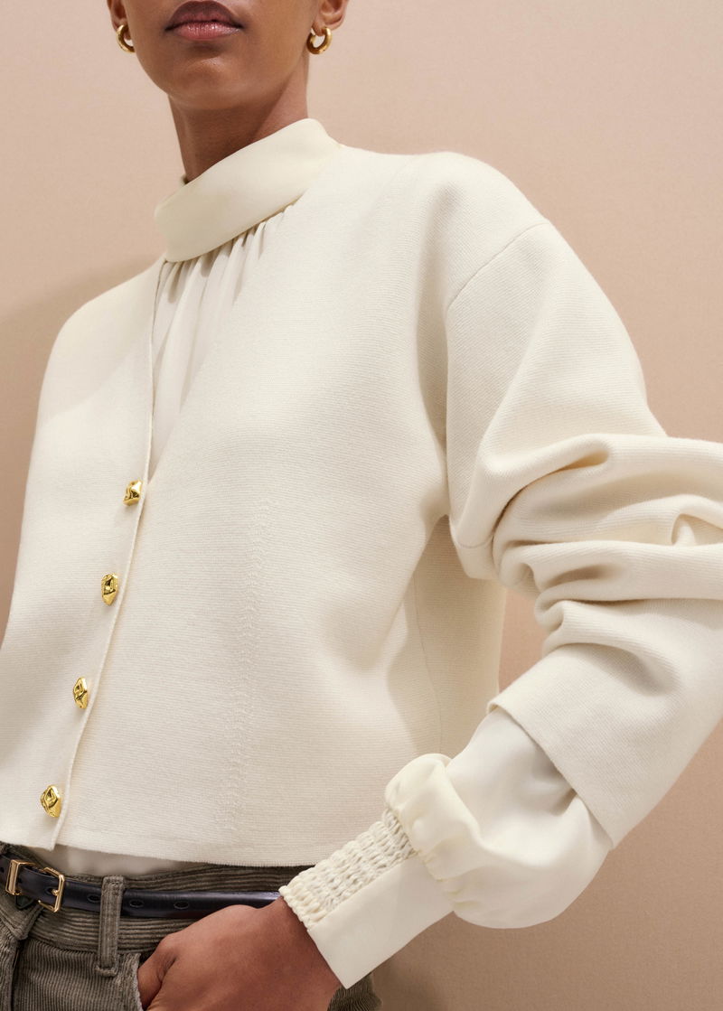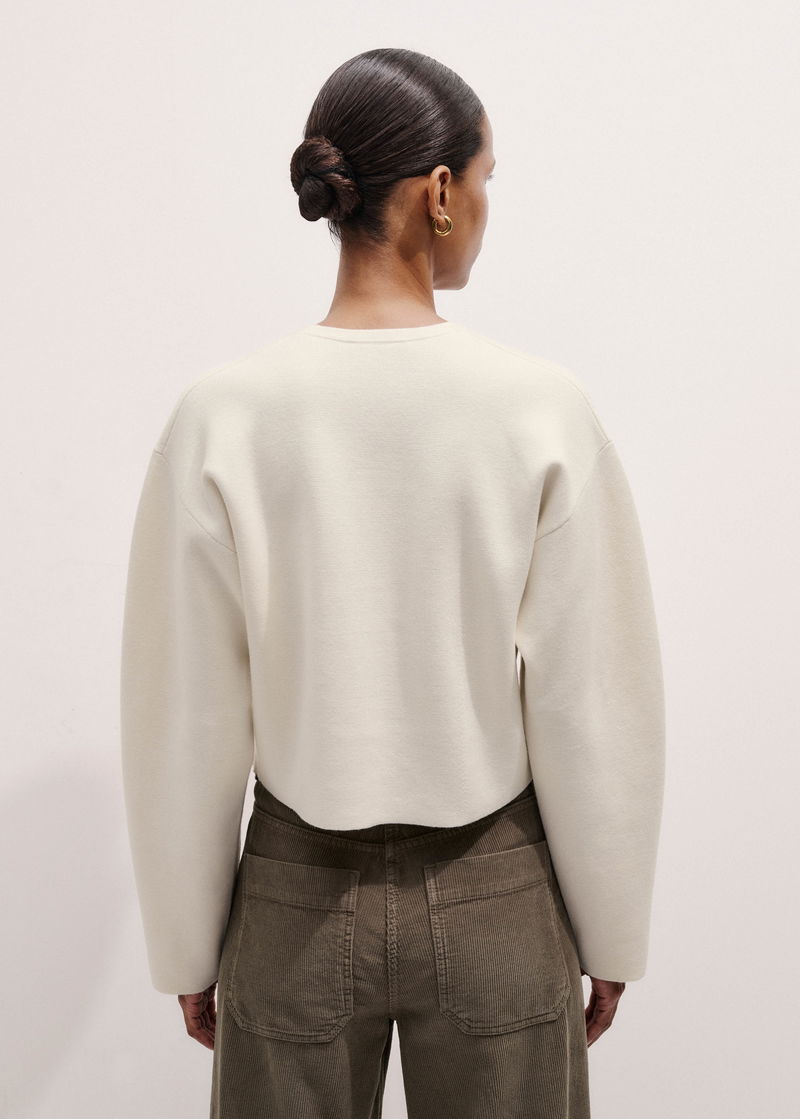 Merino Cotton Milano Knit Extreme Sleeve Crop Cardi Cream