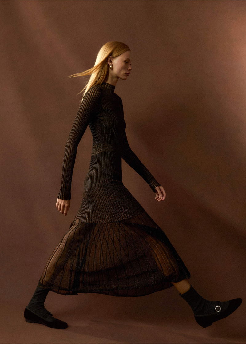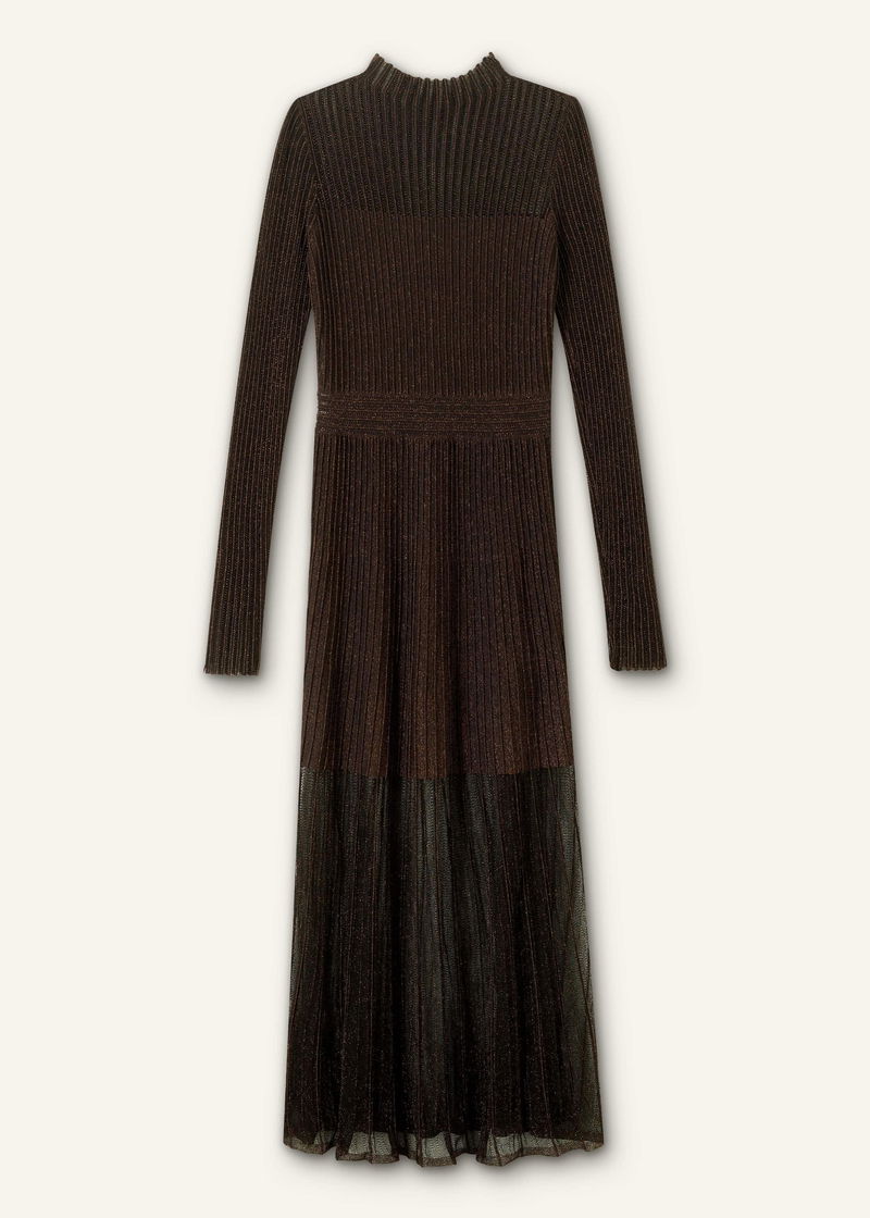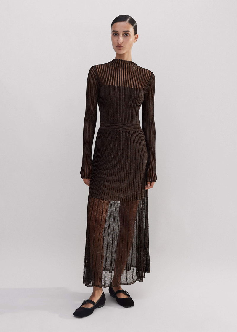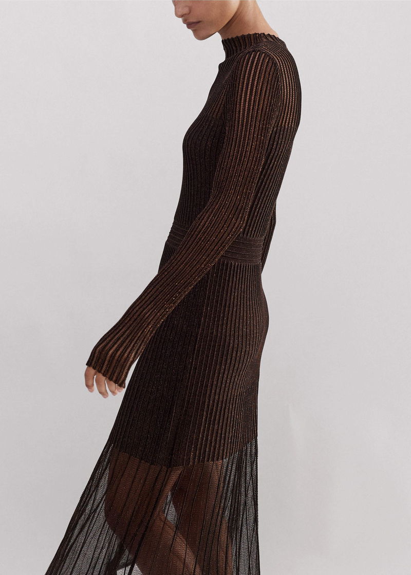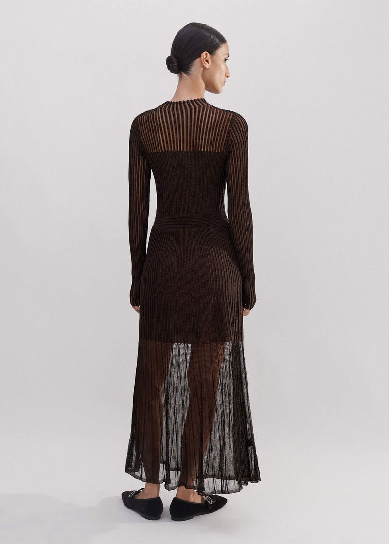Metallic Pointelle Knit Maxi Dress Bronze/Double Espresso