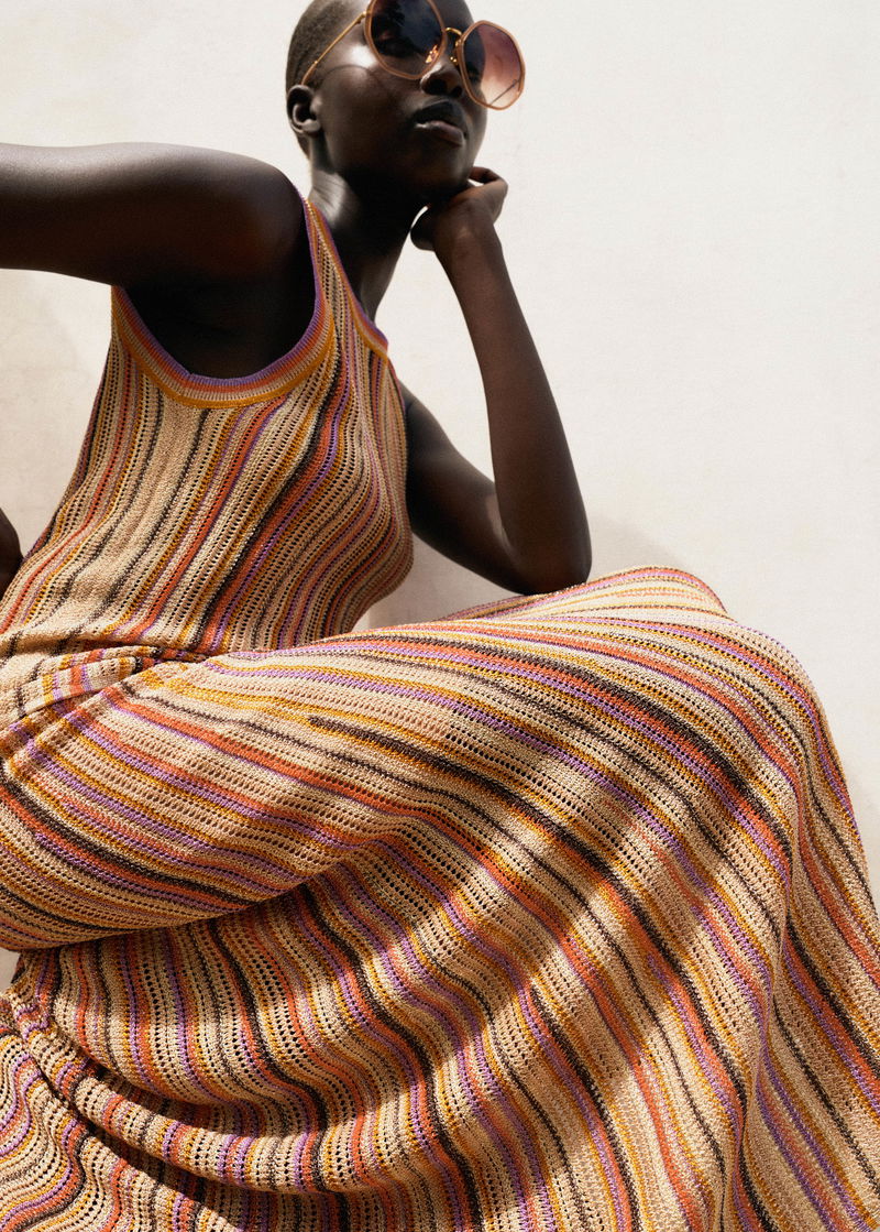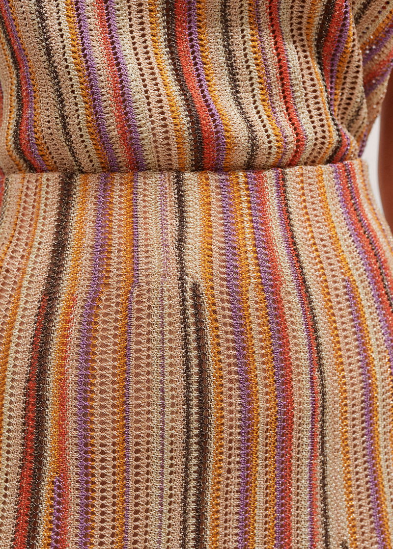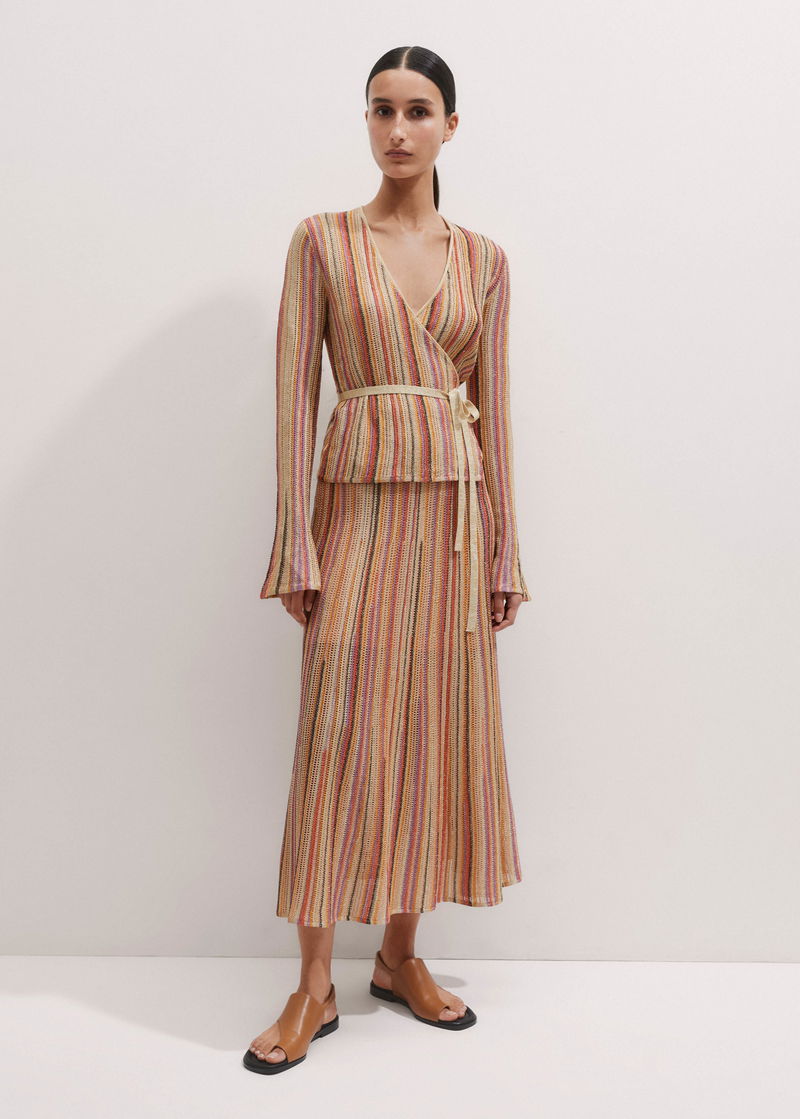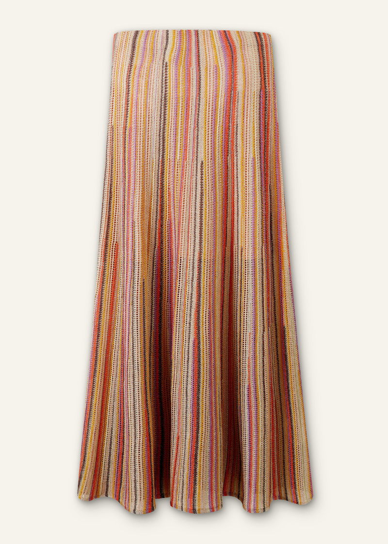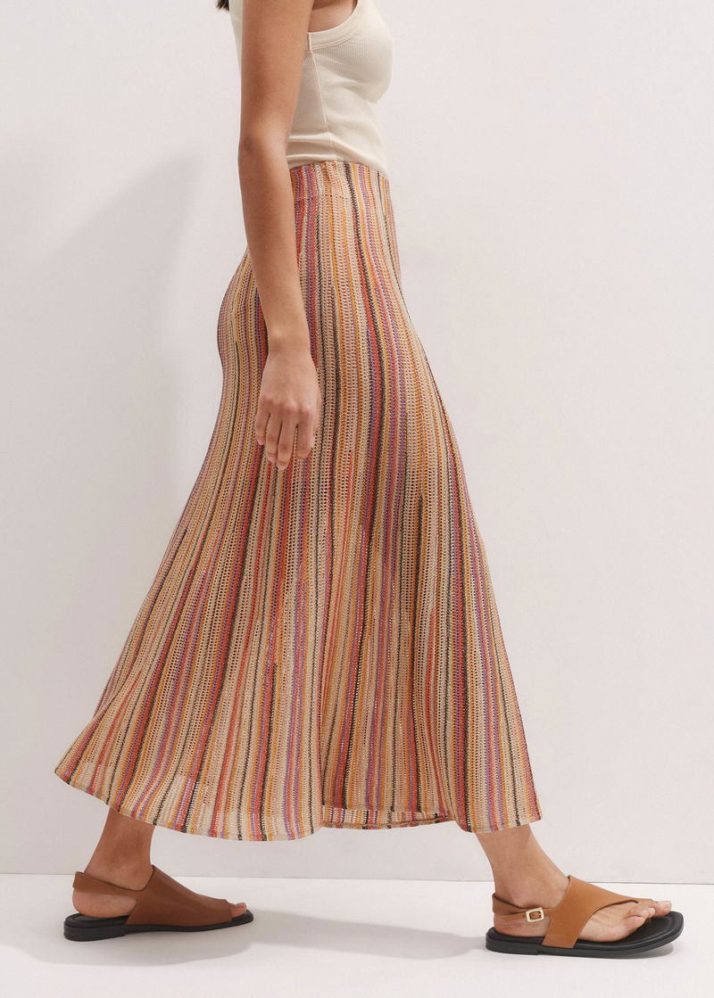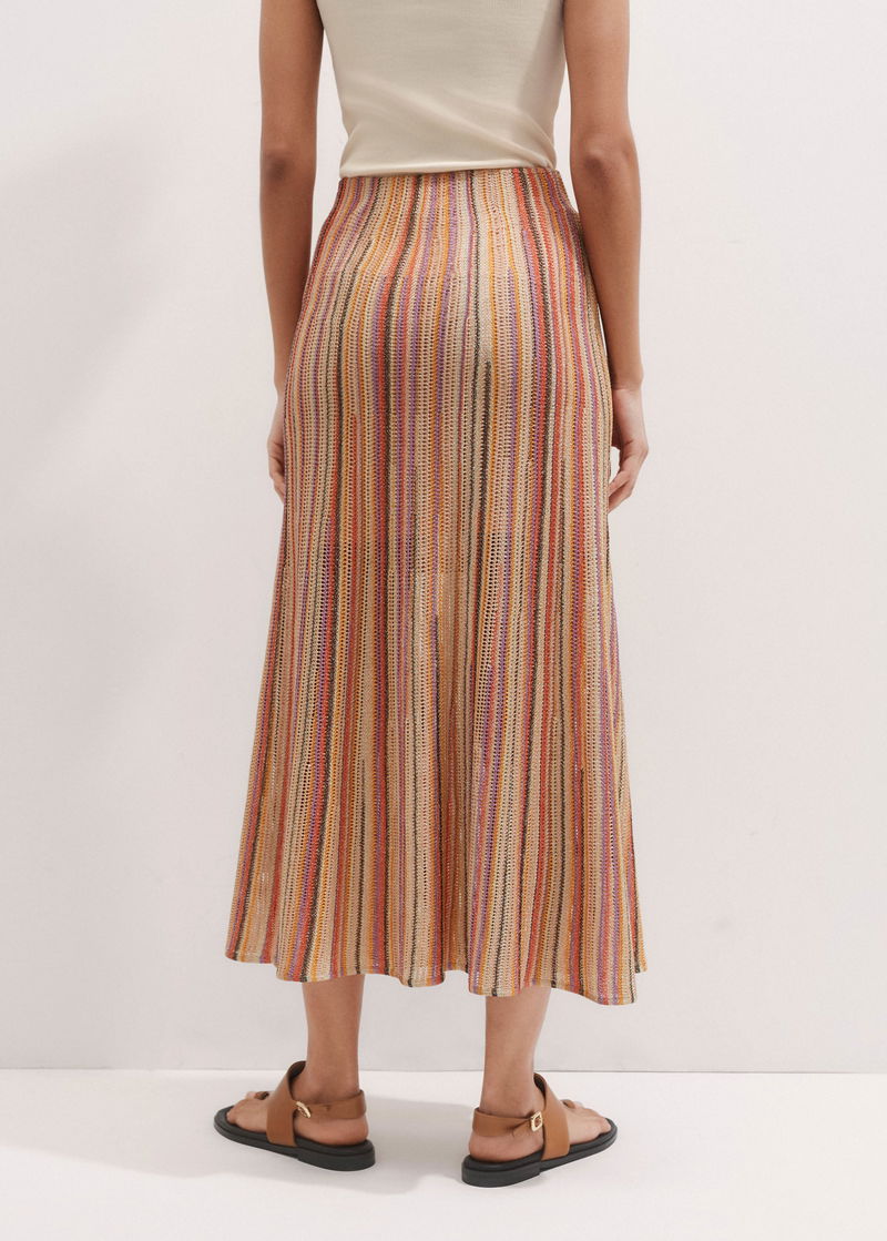 Metallic Textured Stripe Knit Maxi Skirt Gold Multi