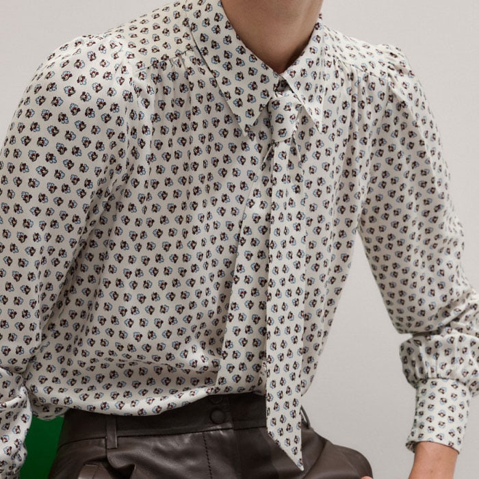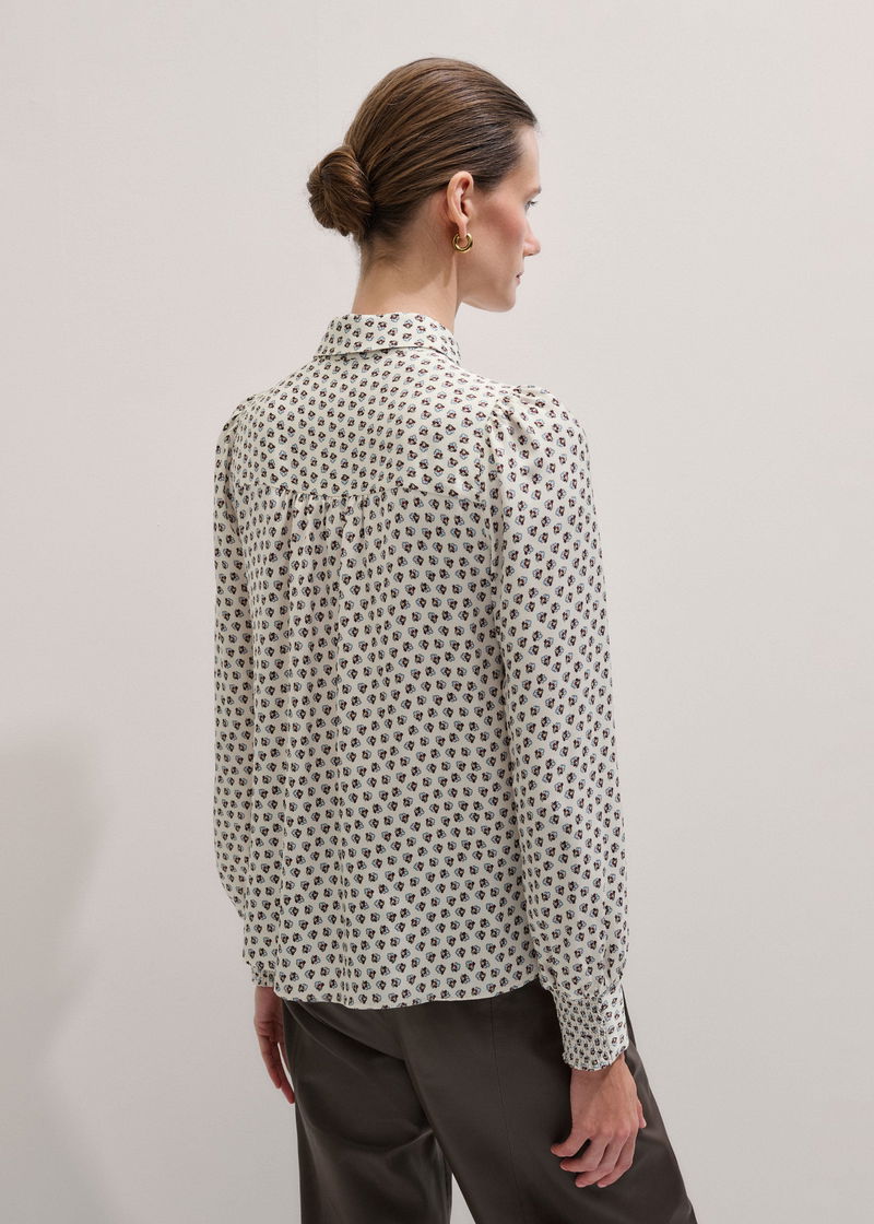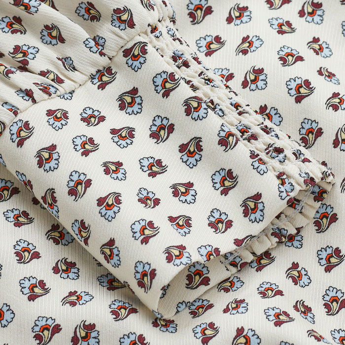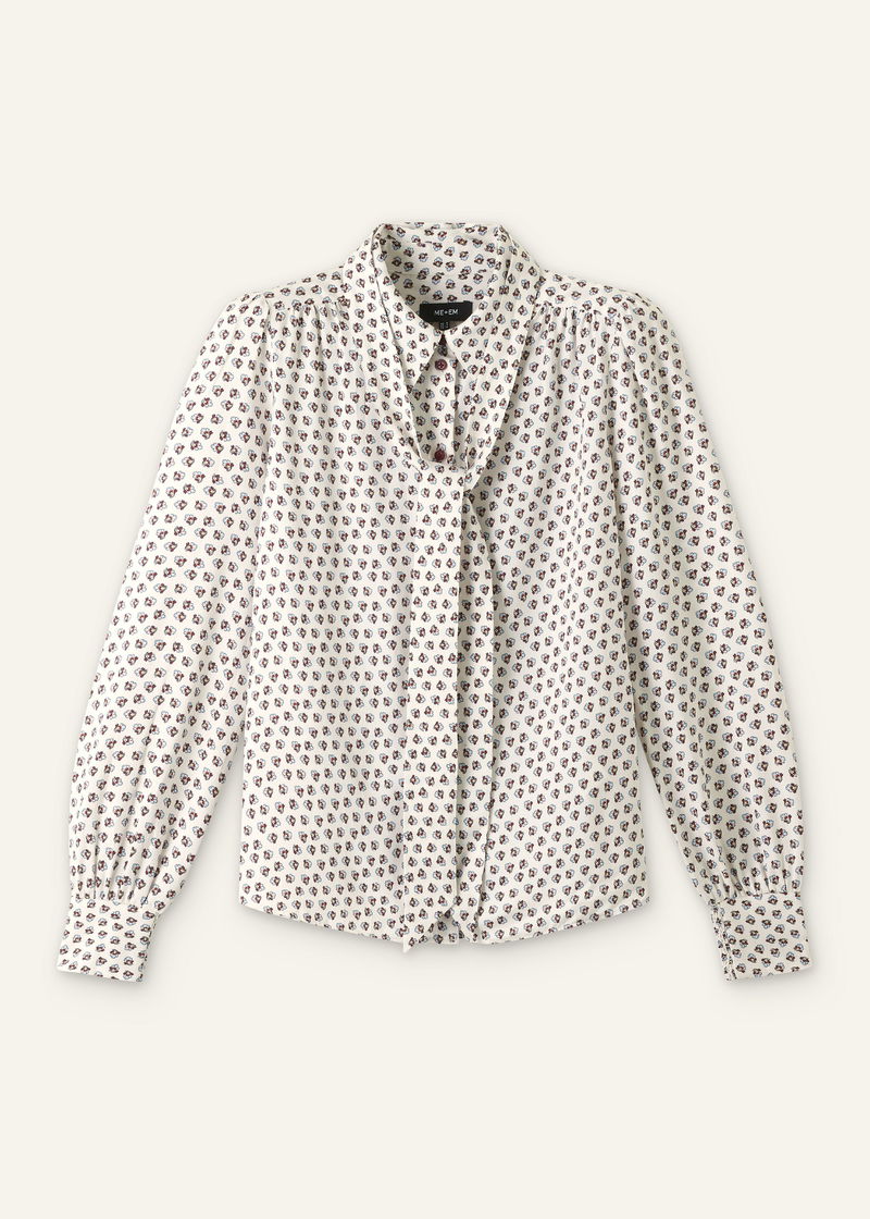 Micro Paisley Print Blouse + Tie Light Cream Multi