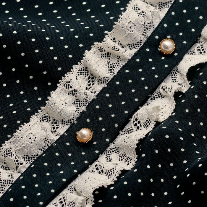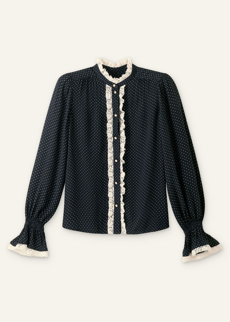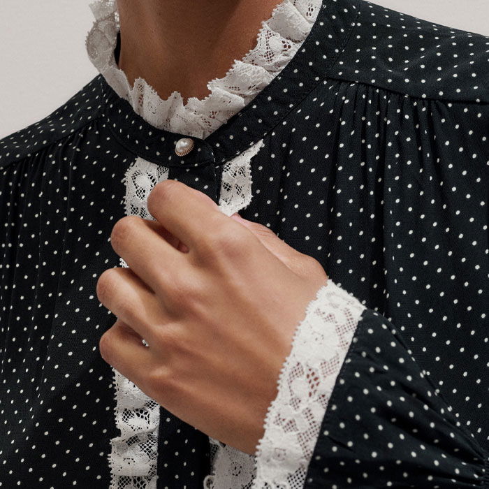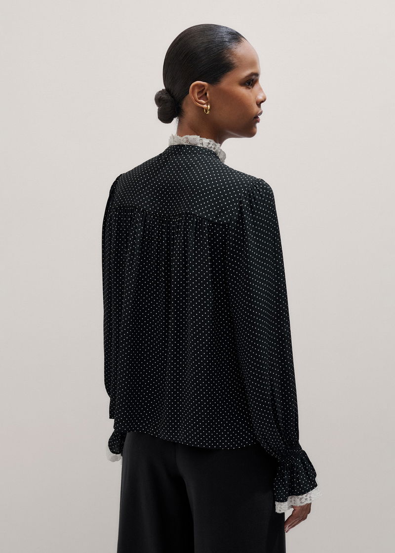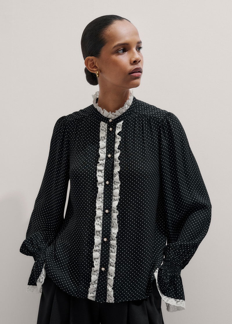 Micro Polka Dot And Lace Blouse Black/Light Cream