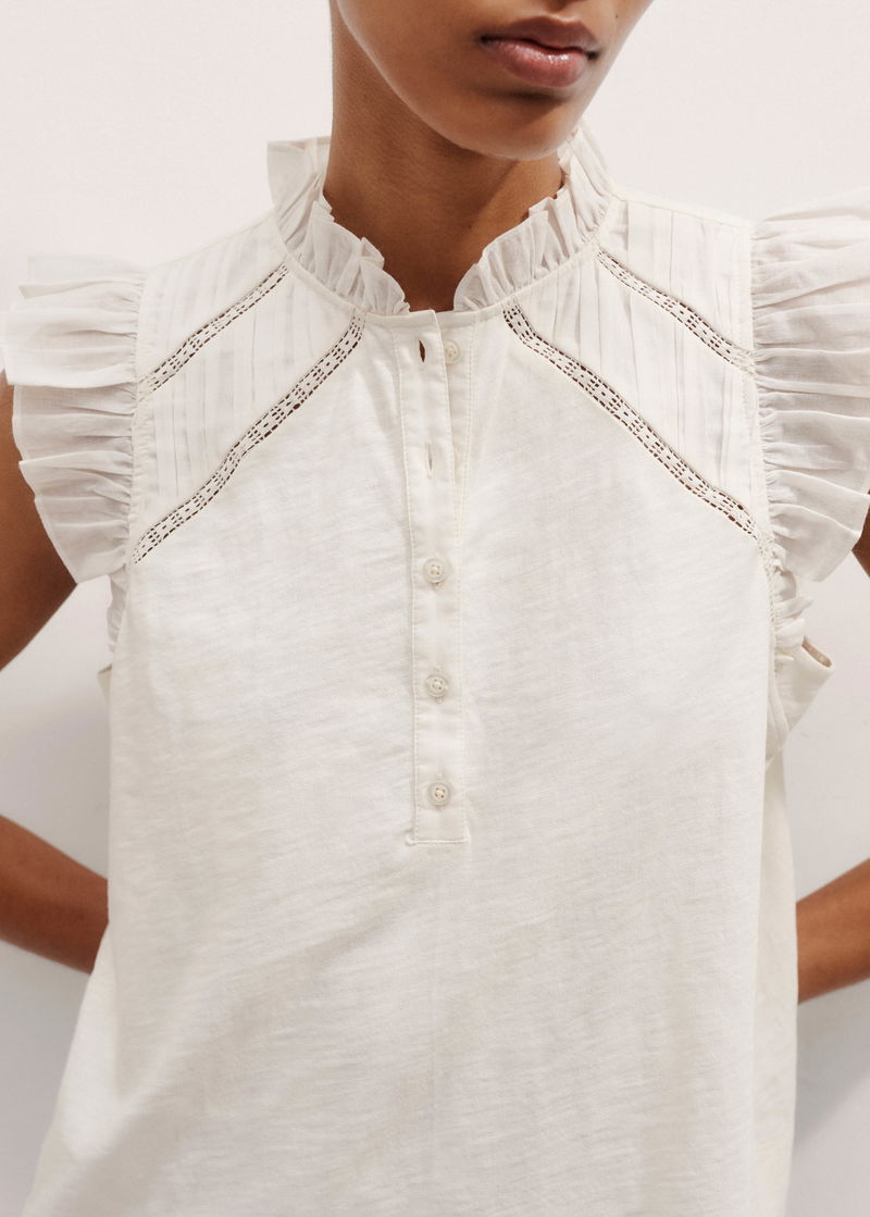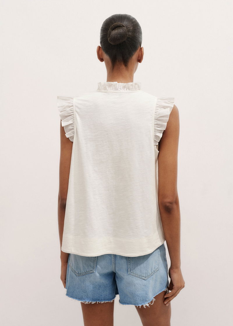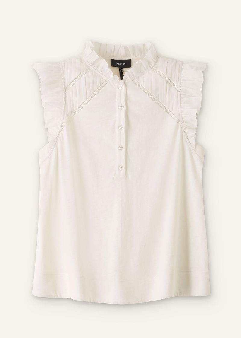 Mixed Media Frill Detail Swing Tee Light Cream
