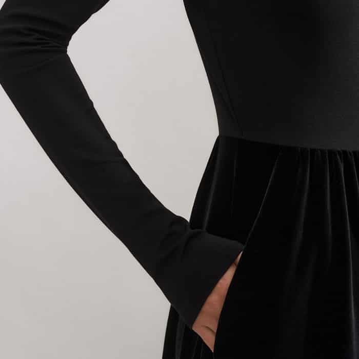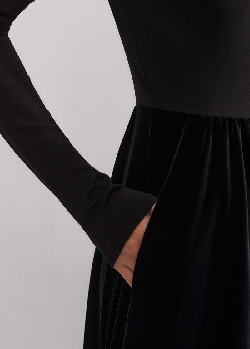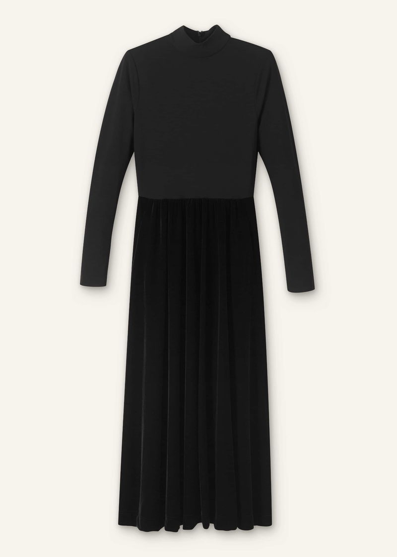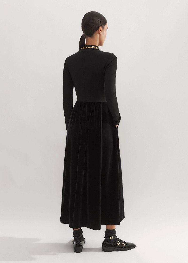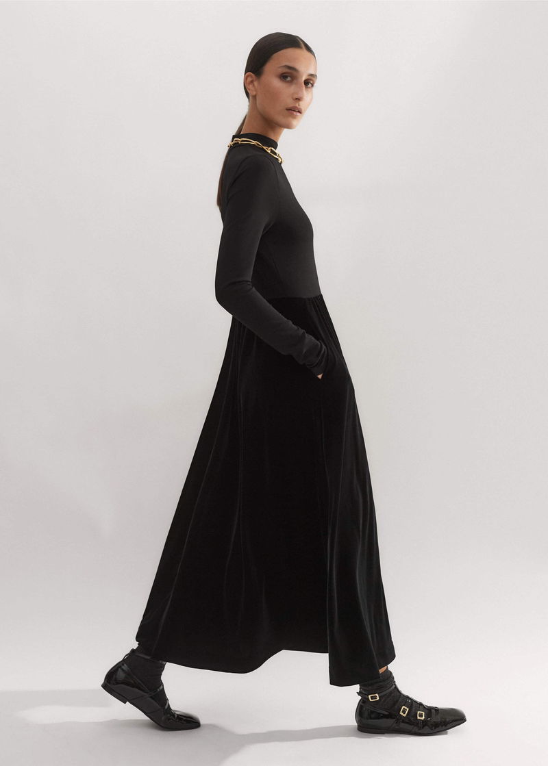 Mixed Media Long Sleeve Maxi Dress Black