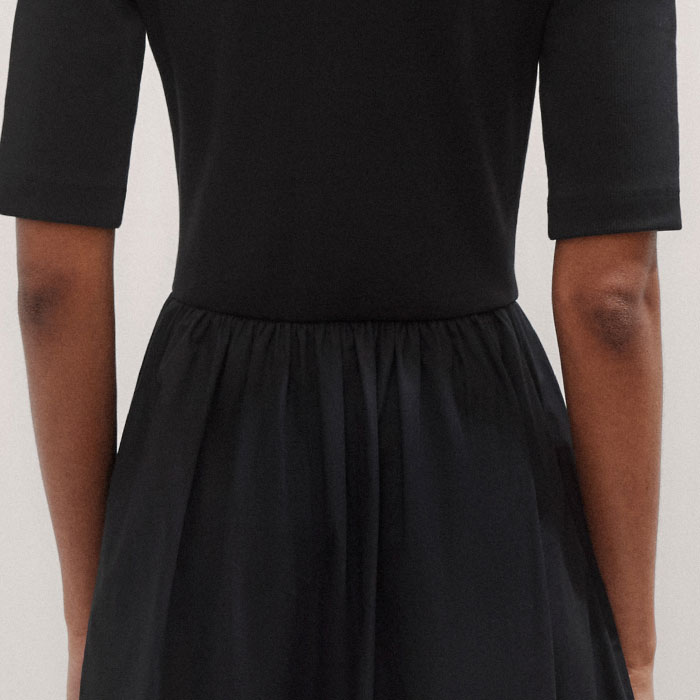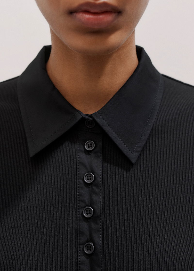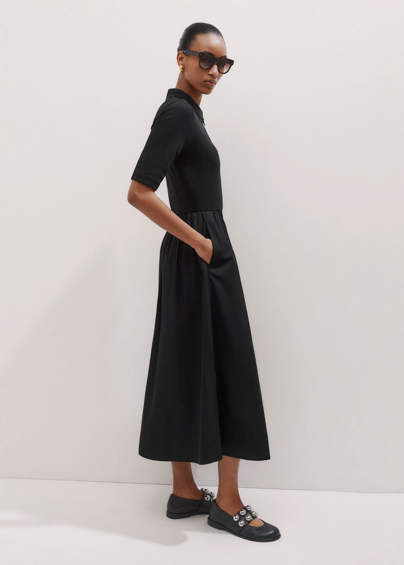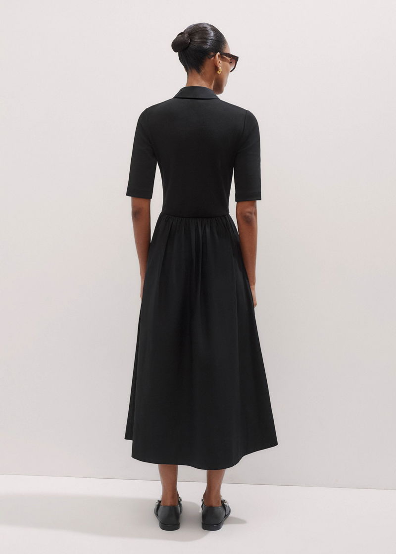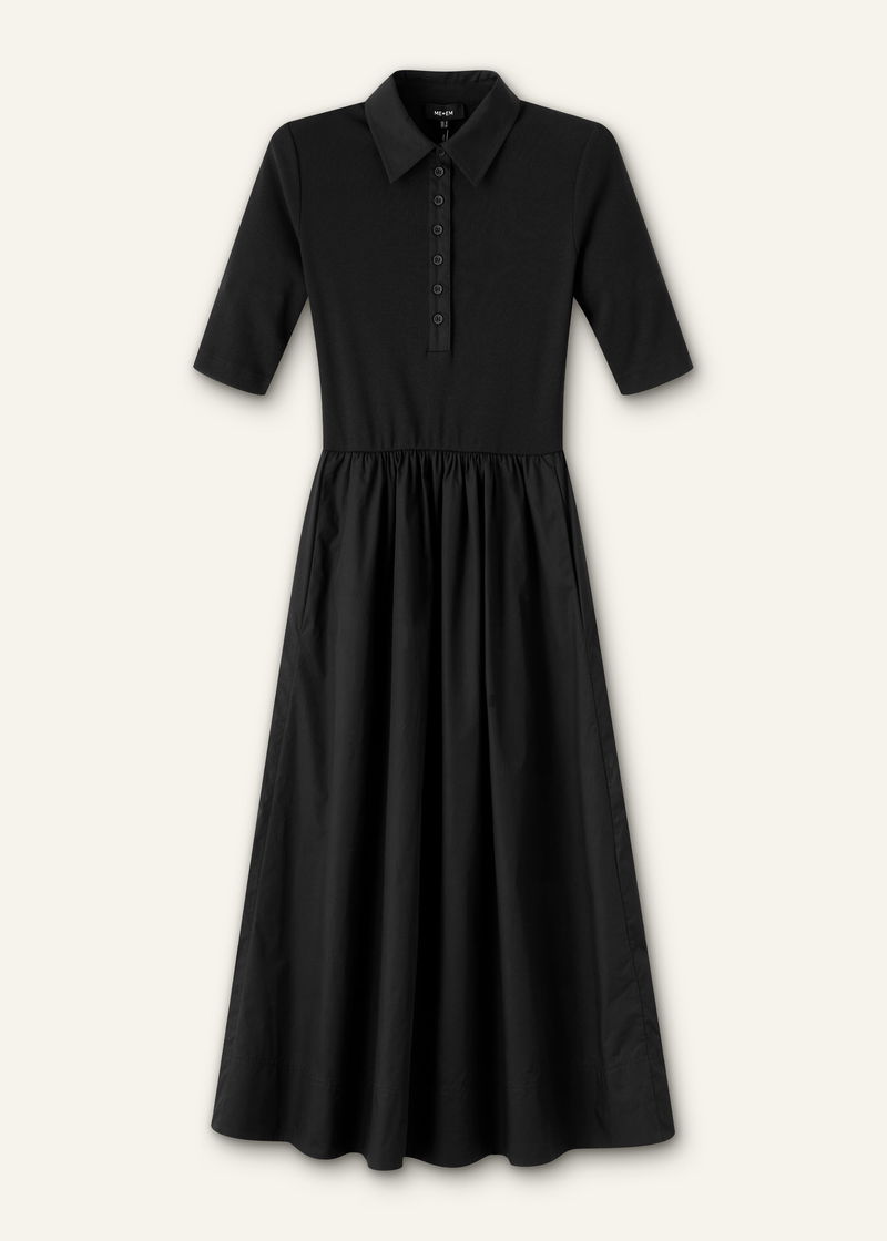 Mixed Media Shirt Collar Maxi Dress Black