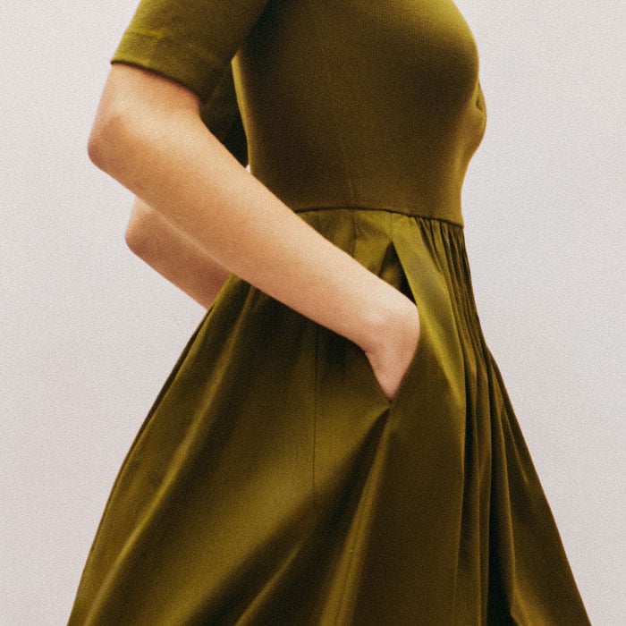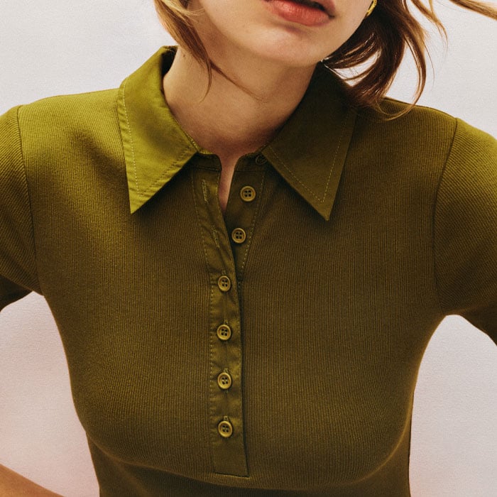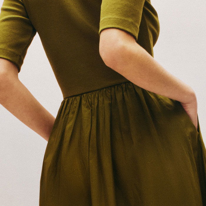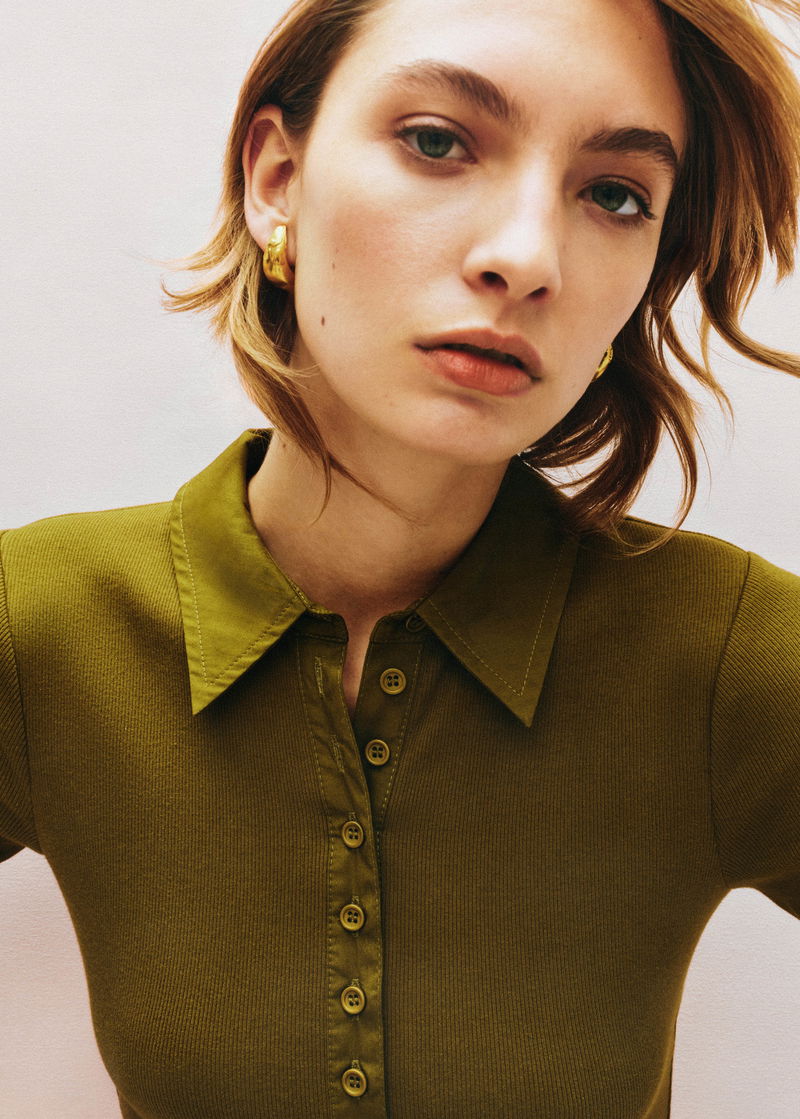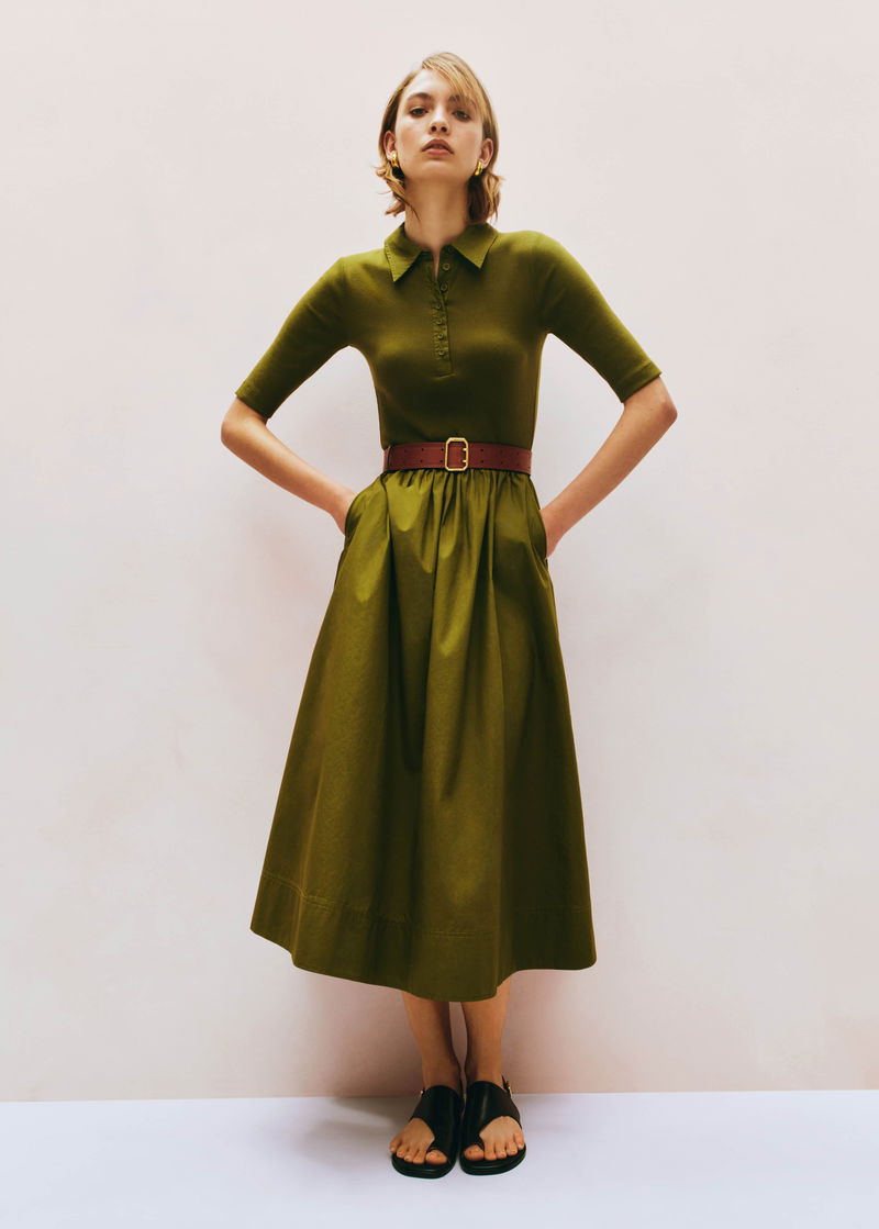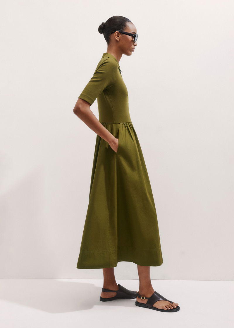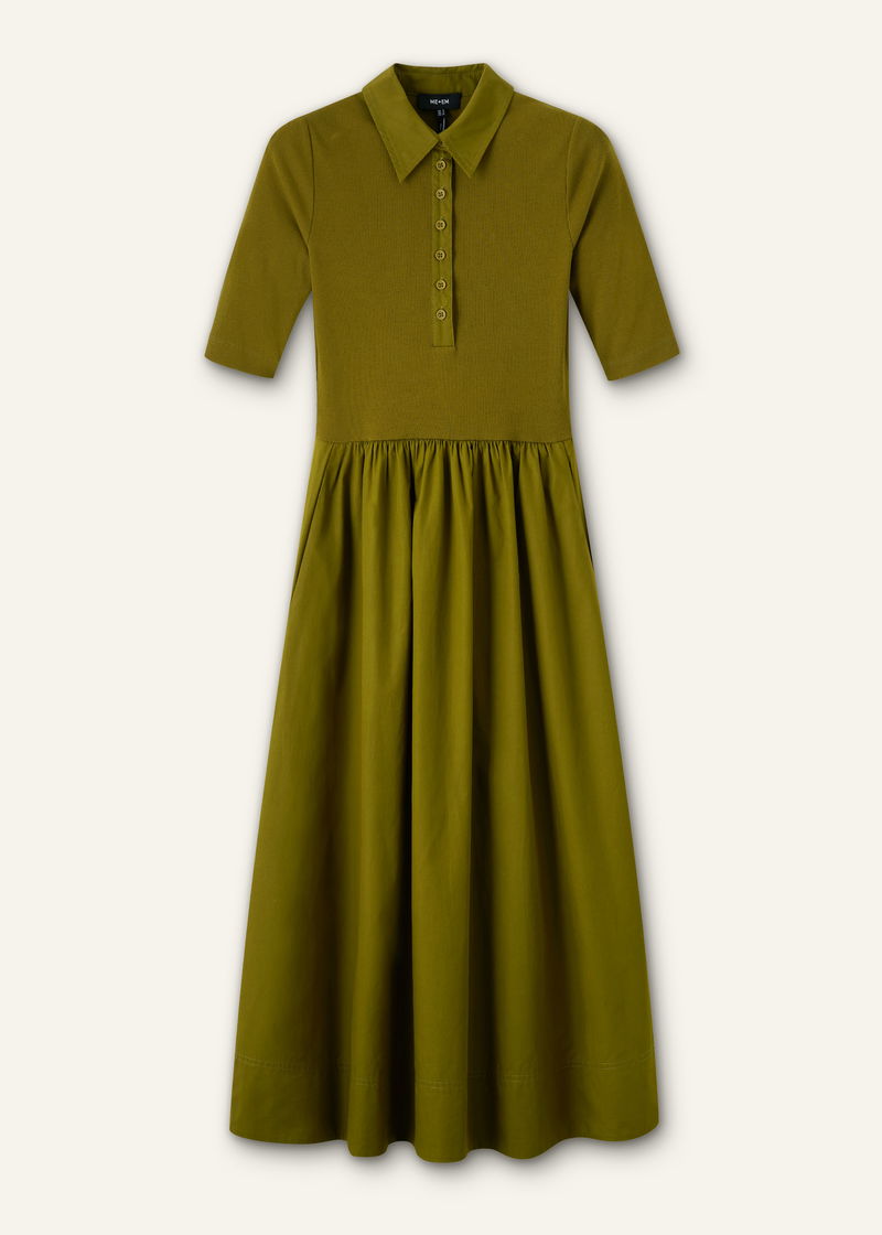 ME+EM's Green Mixed Media Shirt Collar Maxi Dress combines two essential staples into one effortless piece.