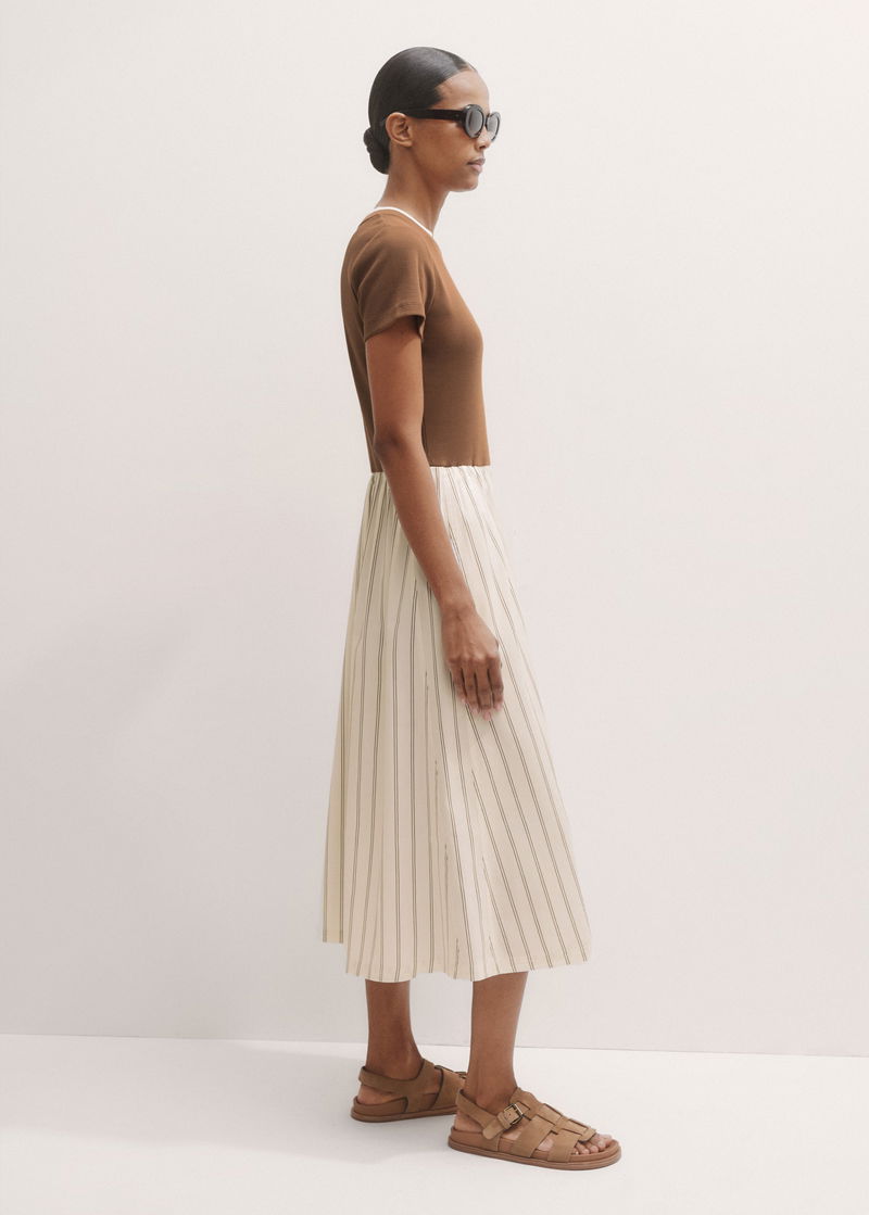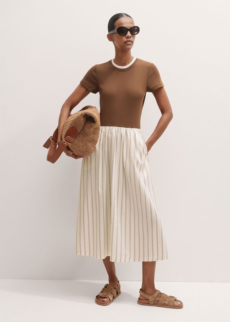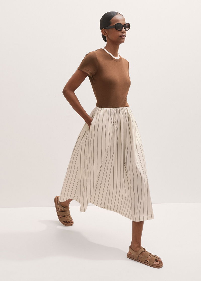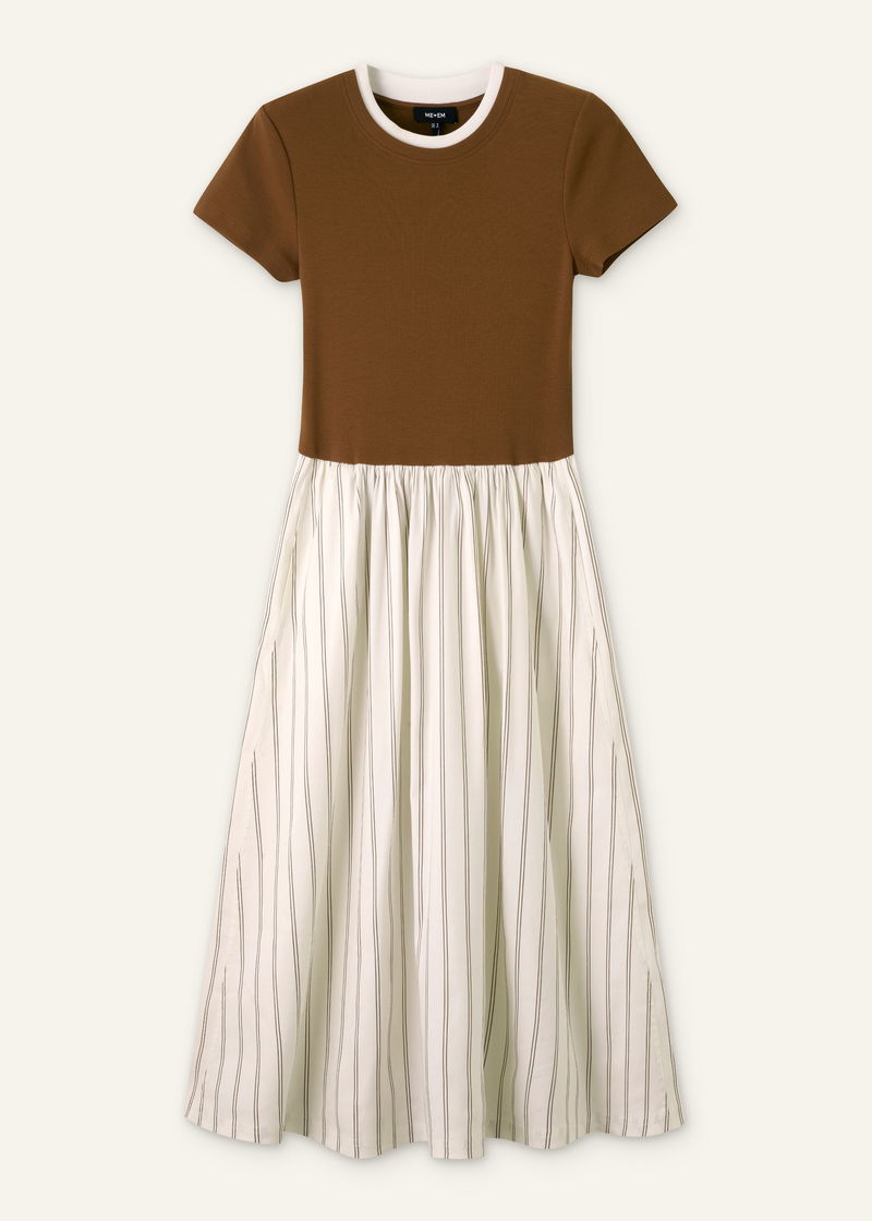 Mixed Media Stripe Midi Dress Nutmeg/Multi