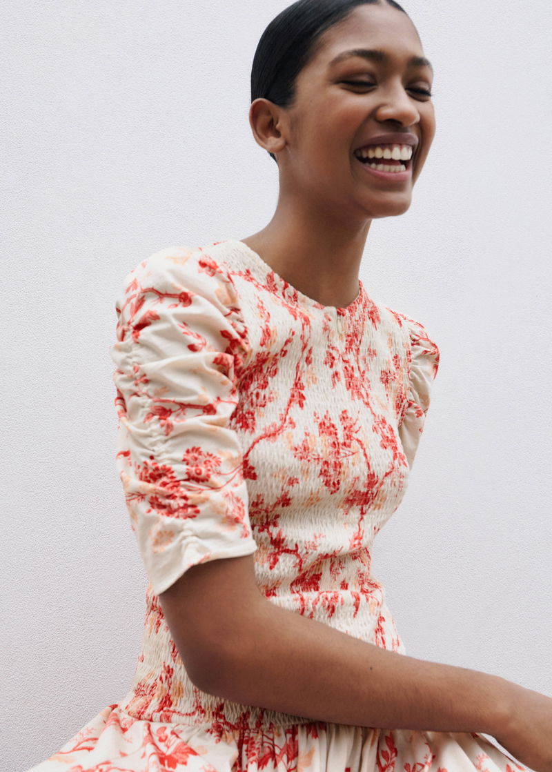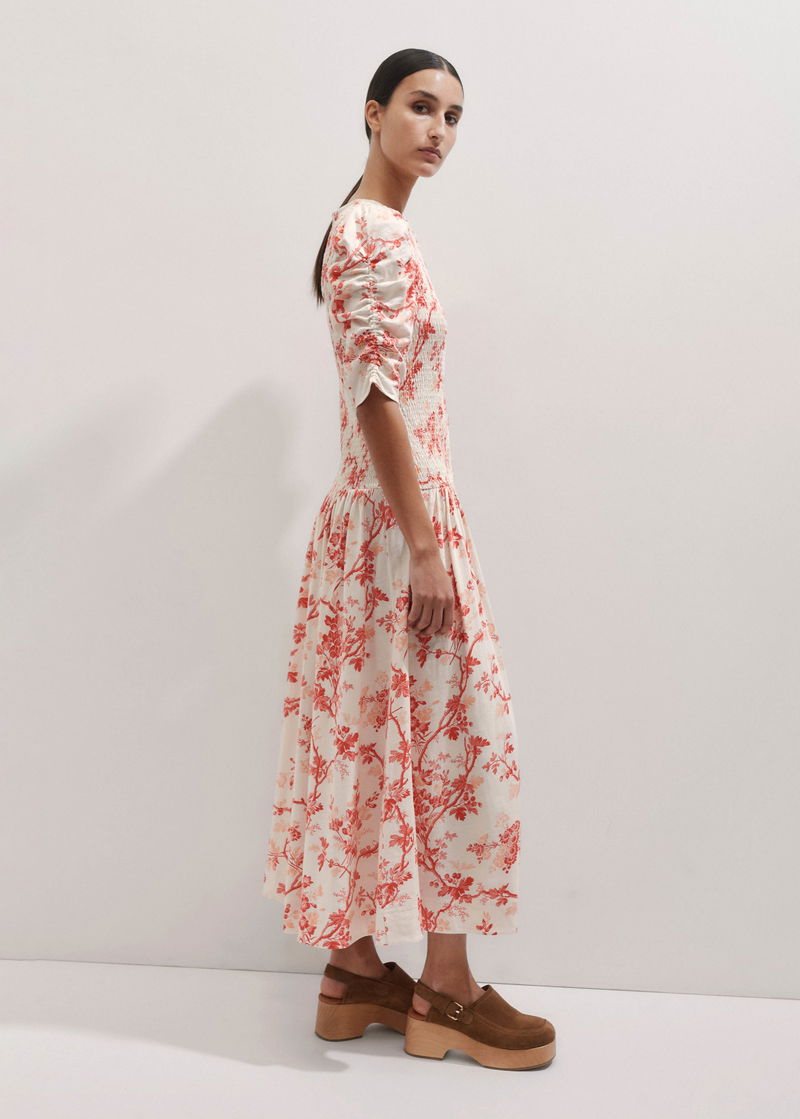 Modern Botanical Print Maxi Dress Light Cream/Intense Orange/Pumpkin Spice