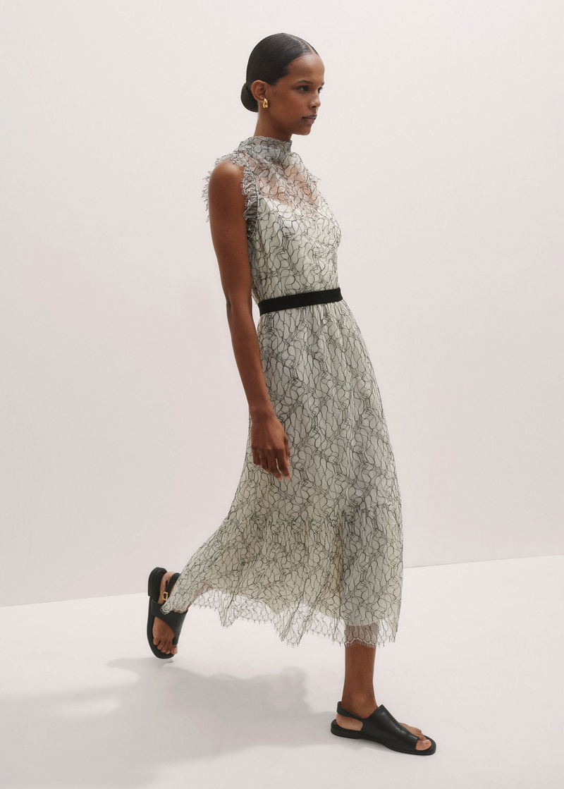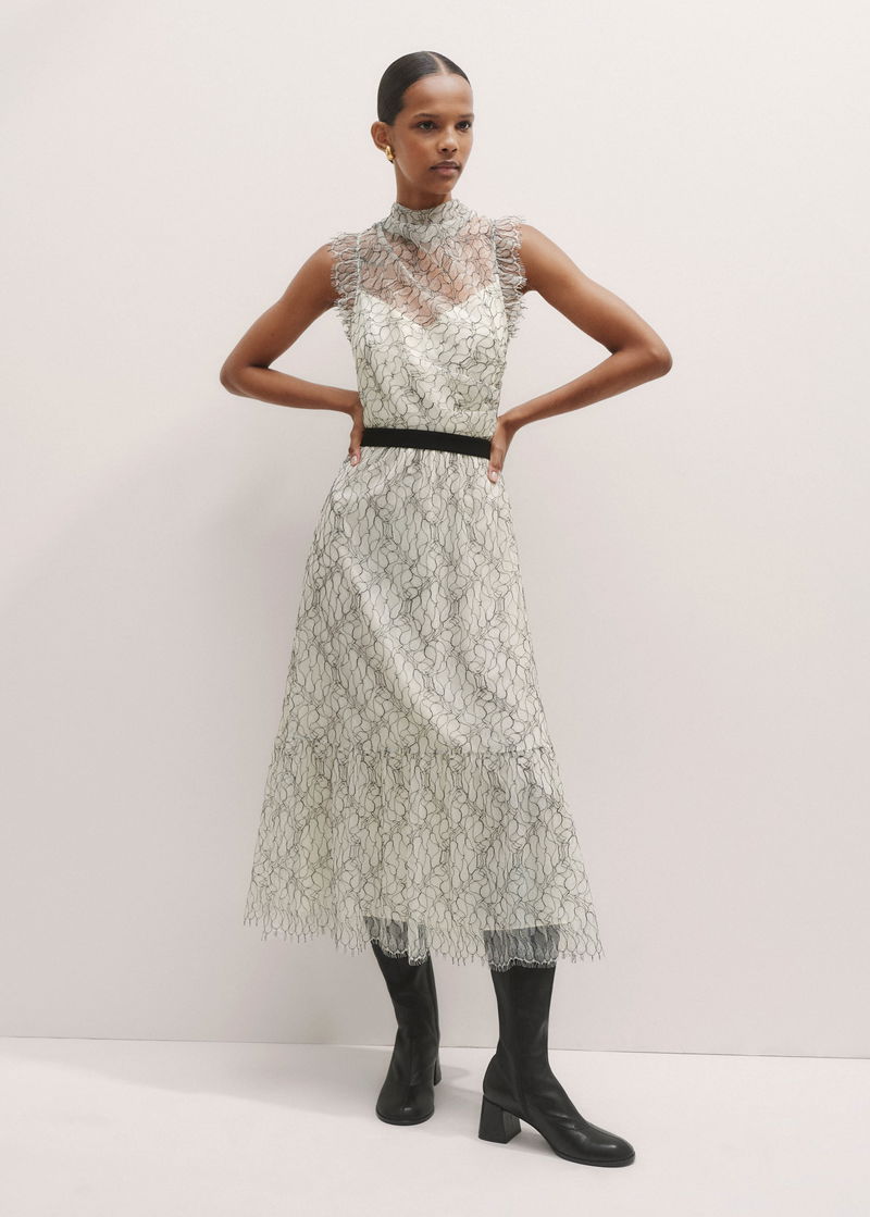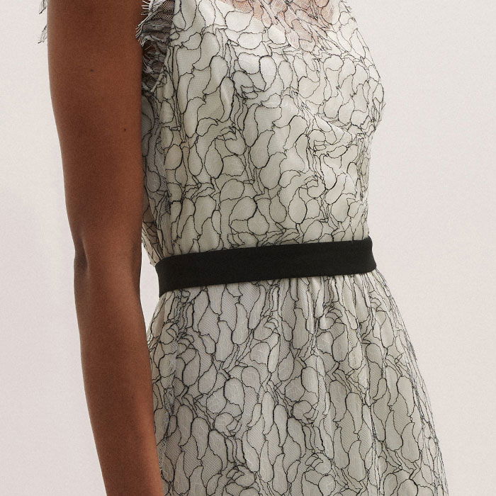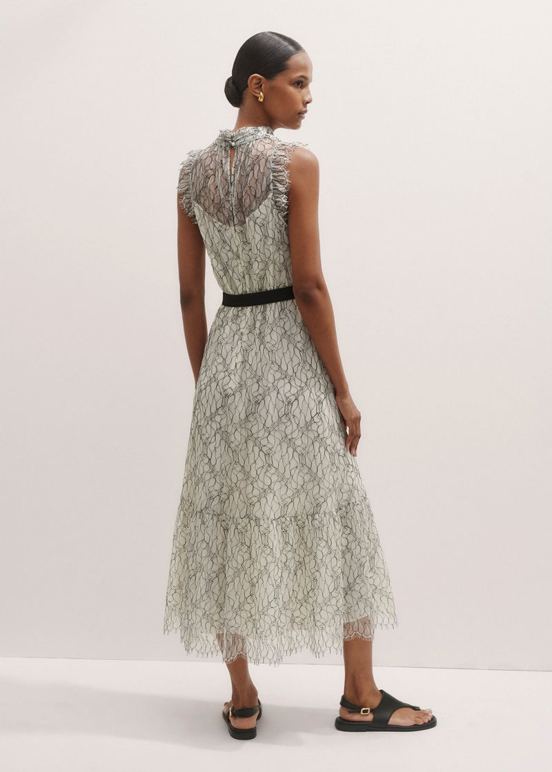Monochrome Lace Midi Dress + Belt Cream/Black