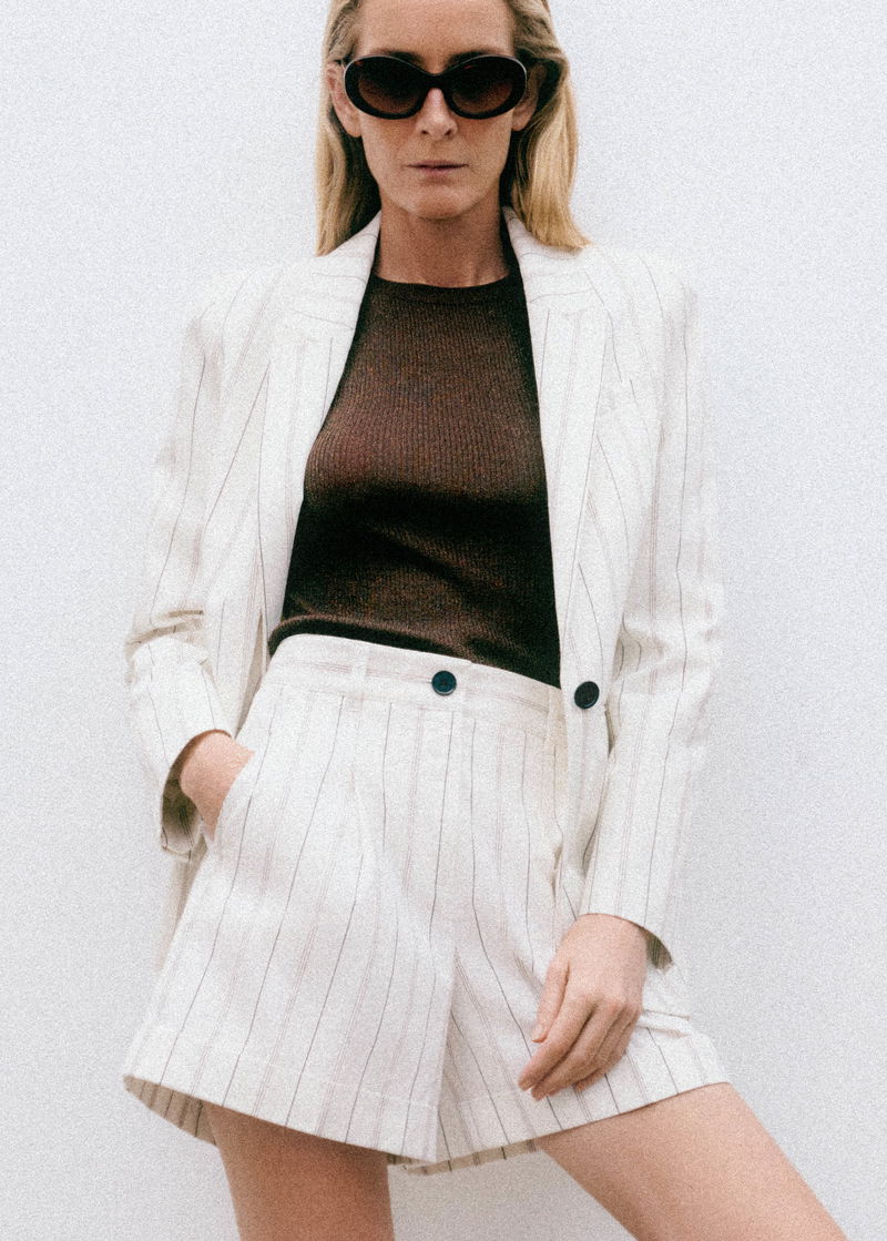 ME+EM's White Multi Stripe Short is made from soft yet structured Italian organic cotton twill.