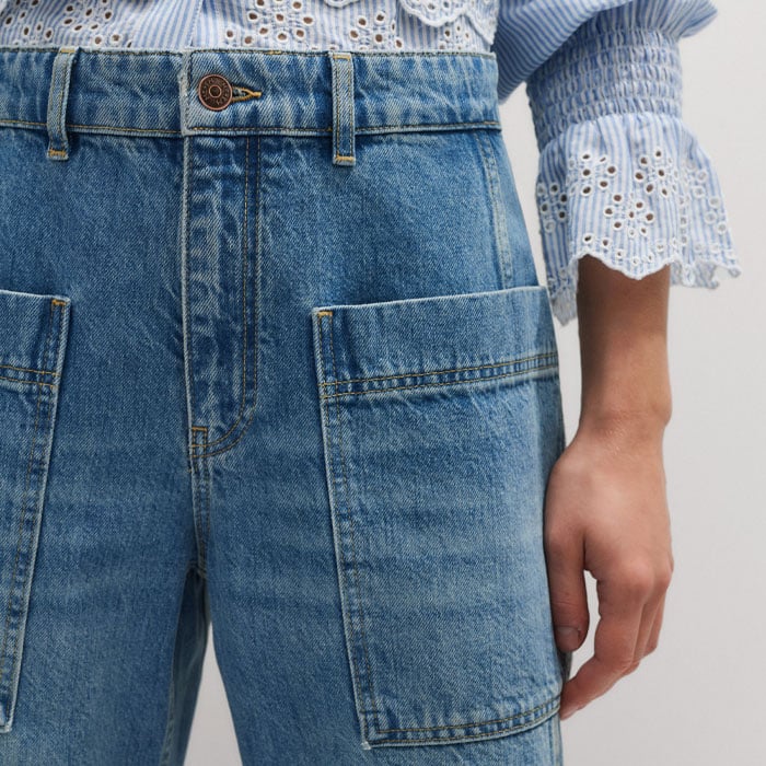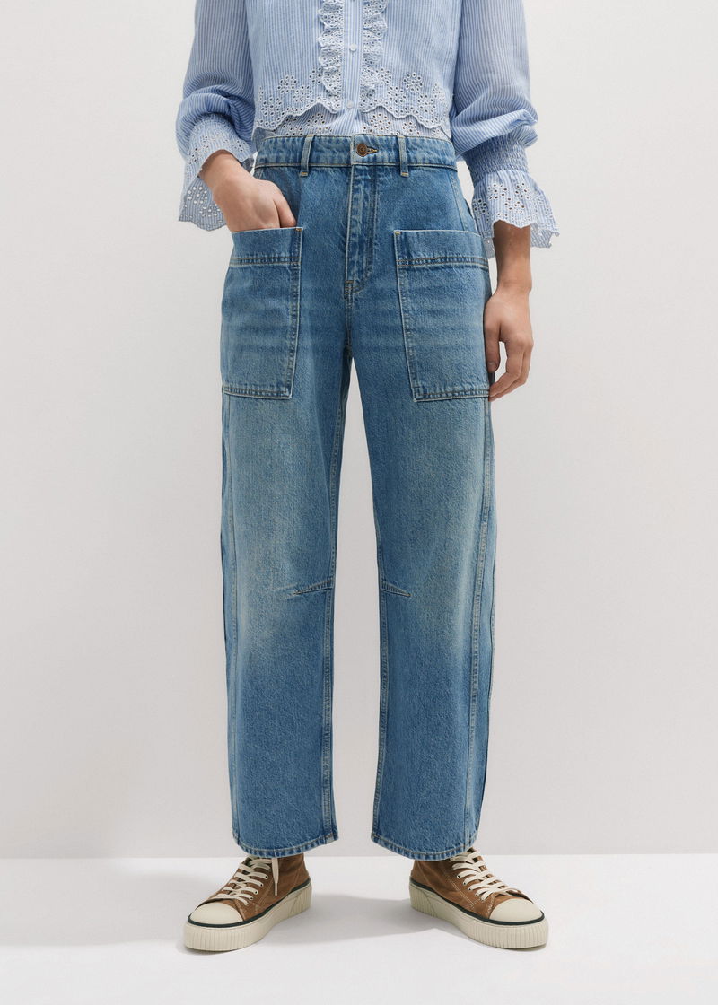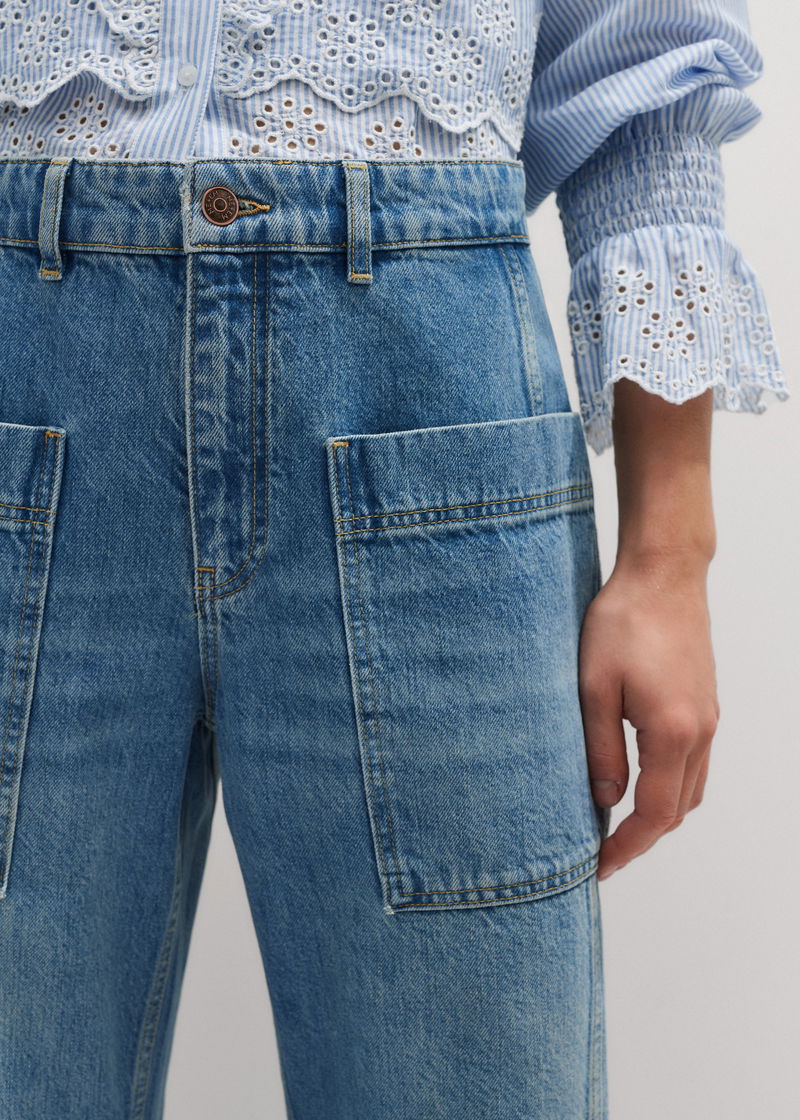 Patch Pocket Engineered Jean Mid Blue Wash