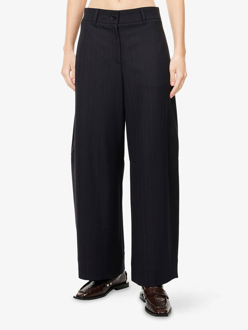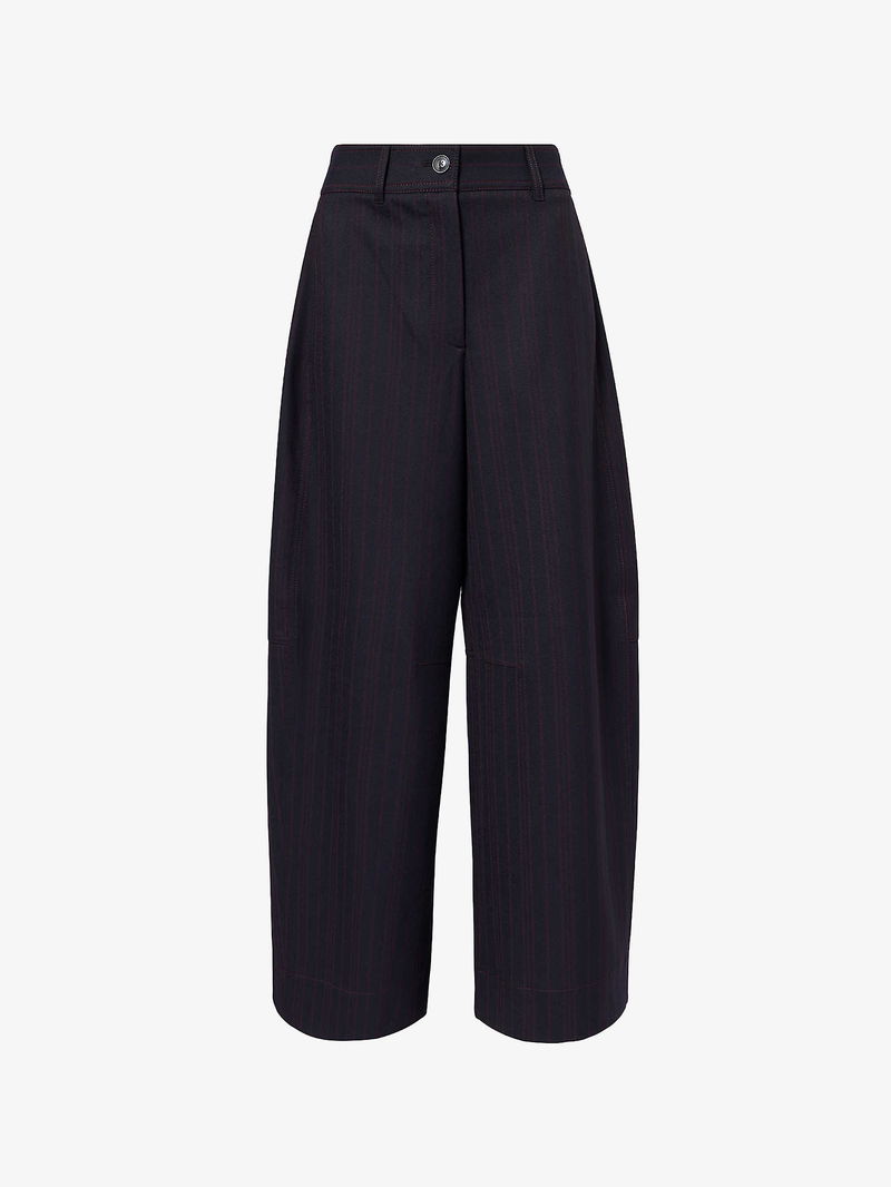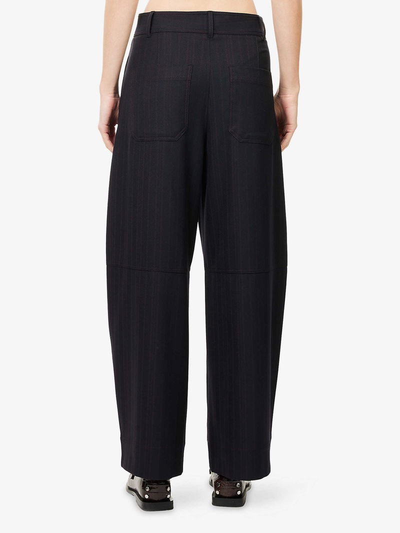 Pinstripe Barrel-Leg Stretch-Woven Trousers