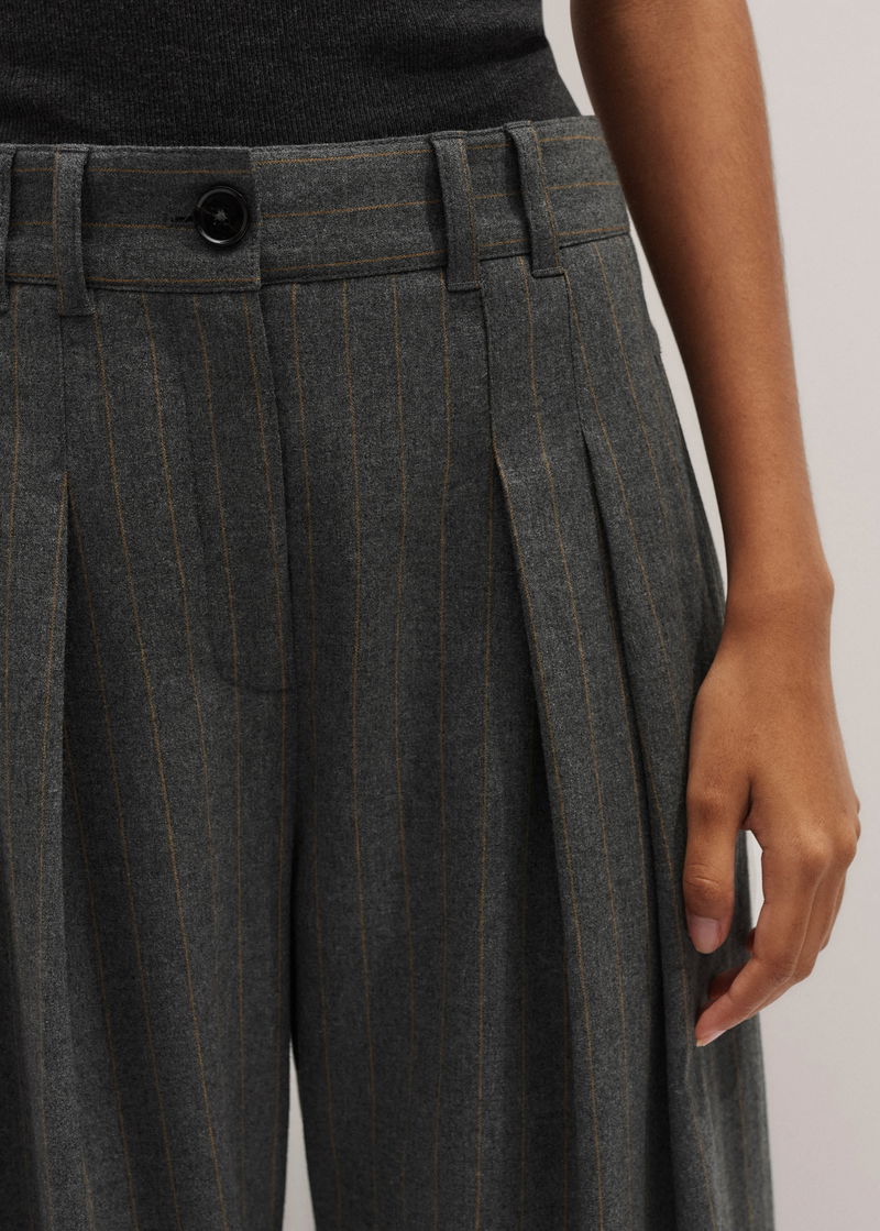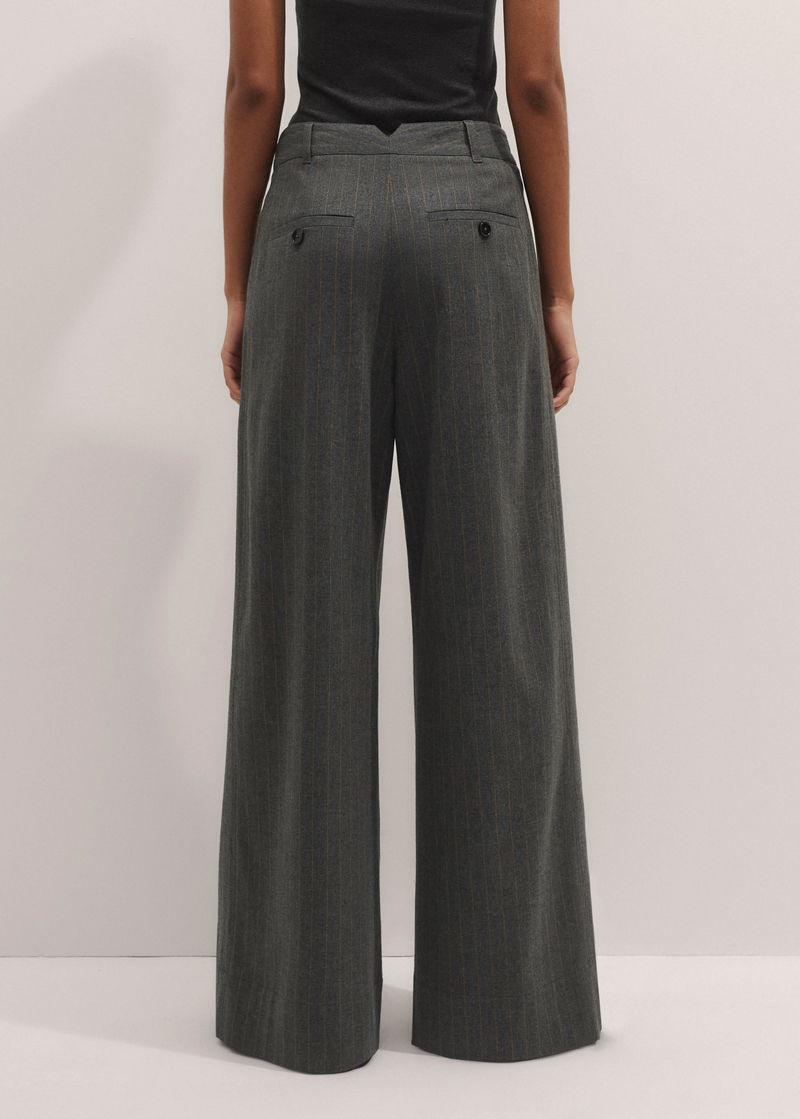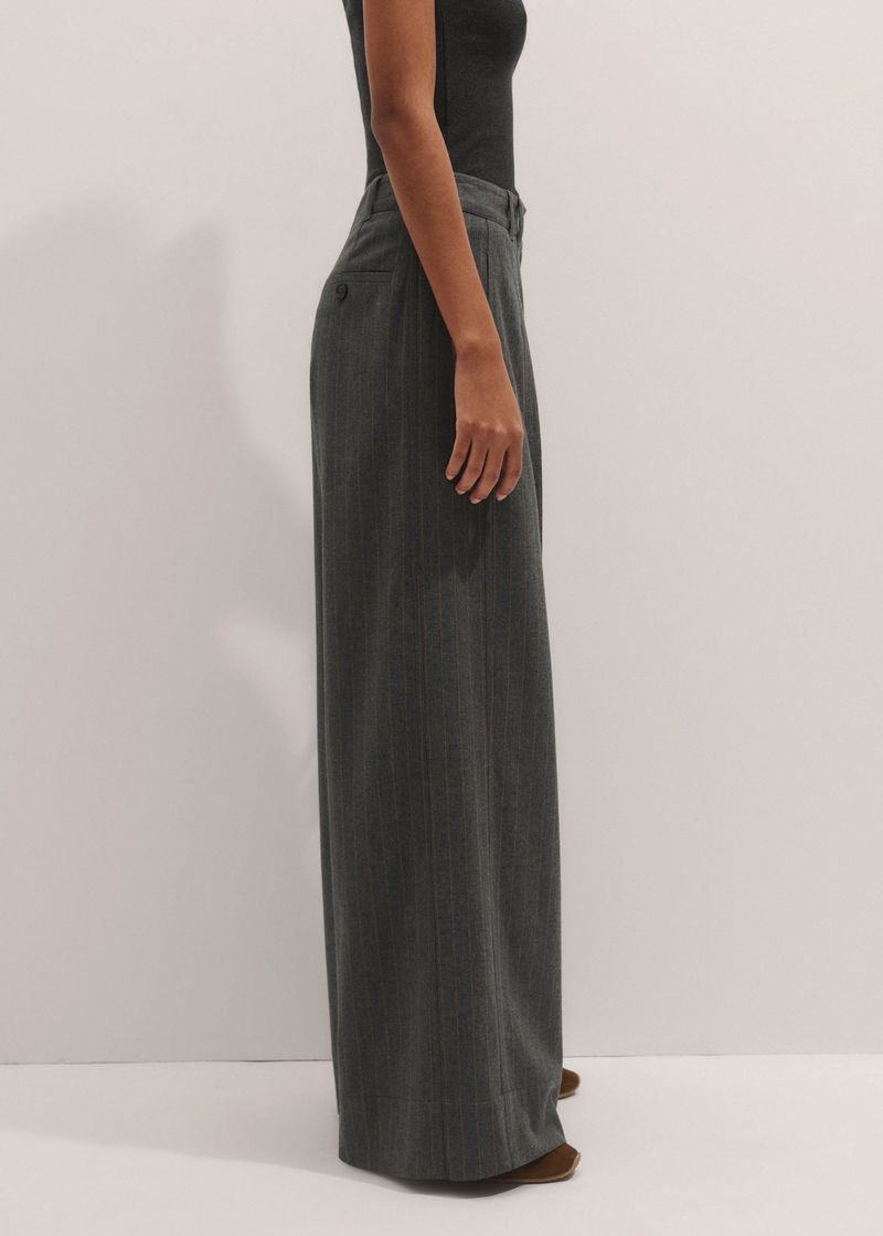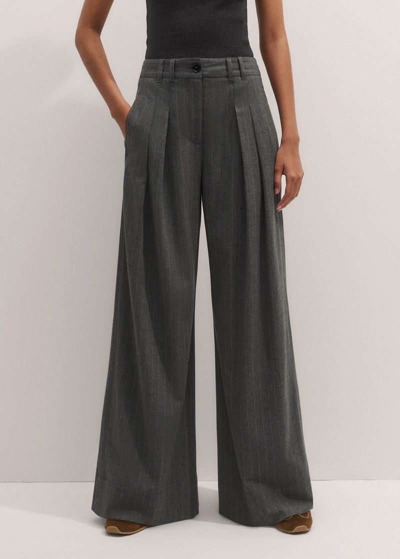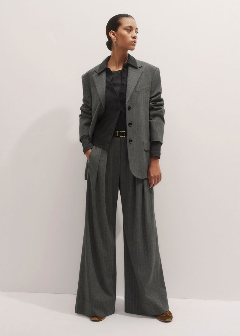 Italian wool-blend tailoring and pressed pleats grant ME+EM's Grey Pinstripe Pleat Front Wide-Leg Trouser a soft, relaxed finish.