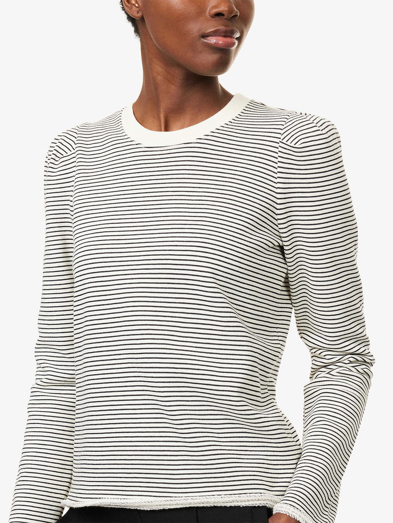Pinstripe Puff-Sleeve Cotton Sweatshirt