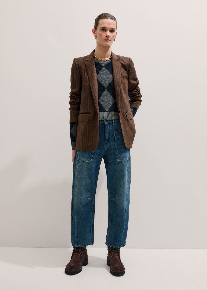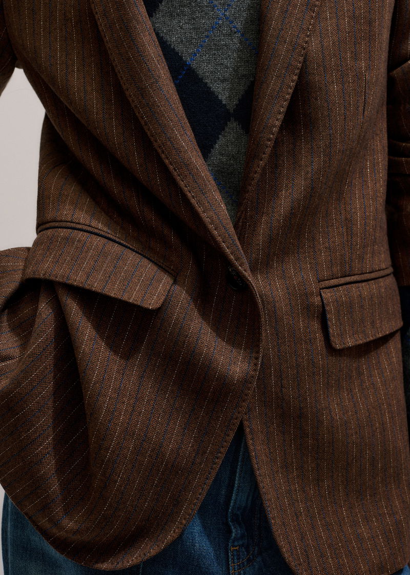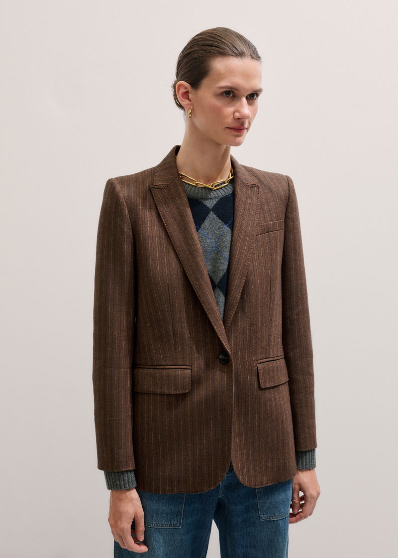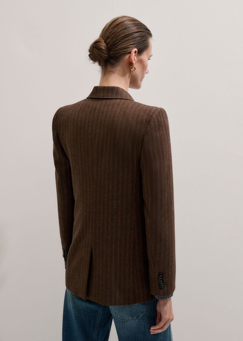 Pinstripe Sharp Shoulder Blazer Toffee