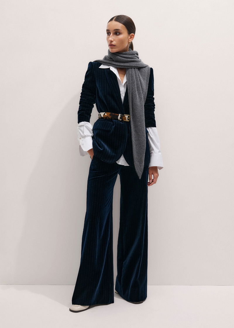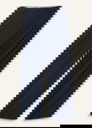 ME+EM's Navy Wool Pinstripe Wide-Leg Pant is designed with a smooth fit at the hips and a wide, fluid cut through the legs.
