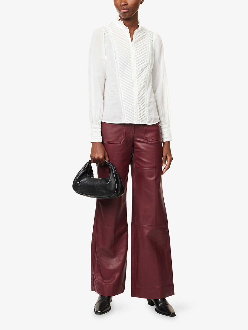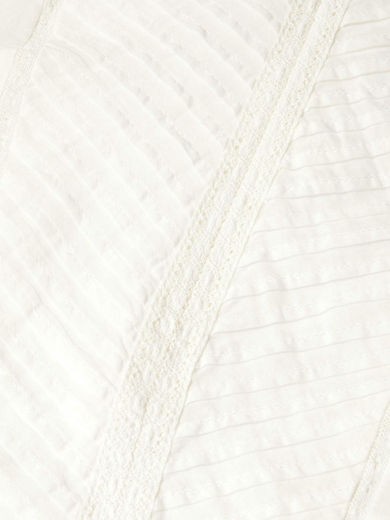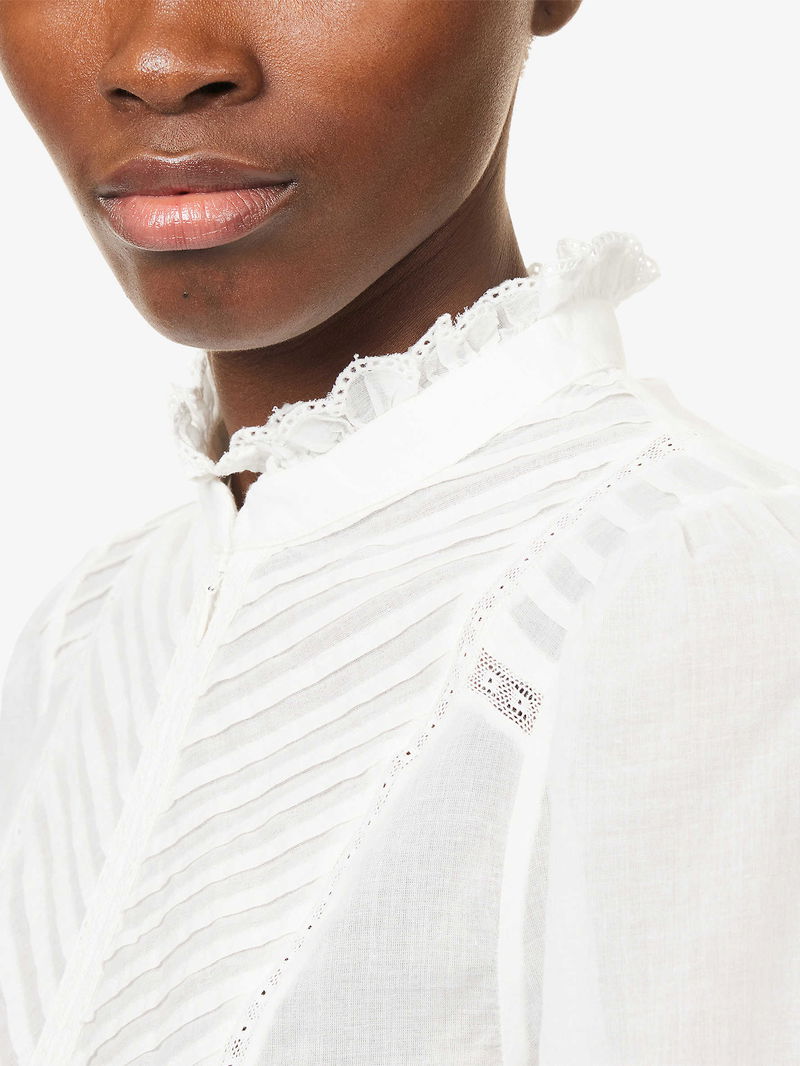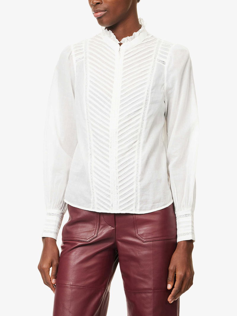 Pintuck-Pleated High-Neck Cotton Blouse