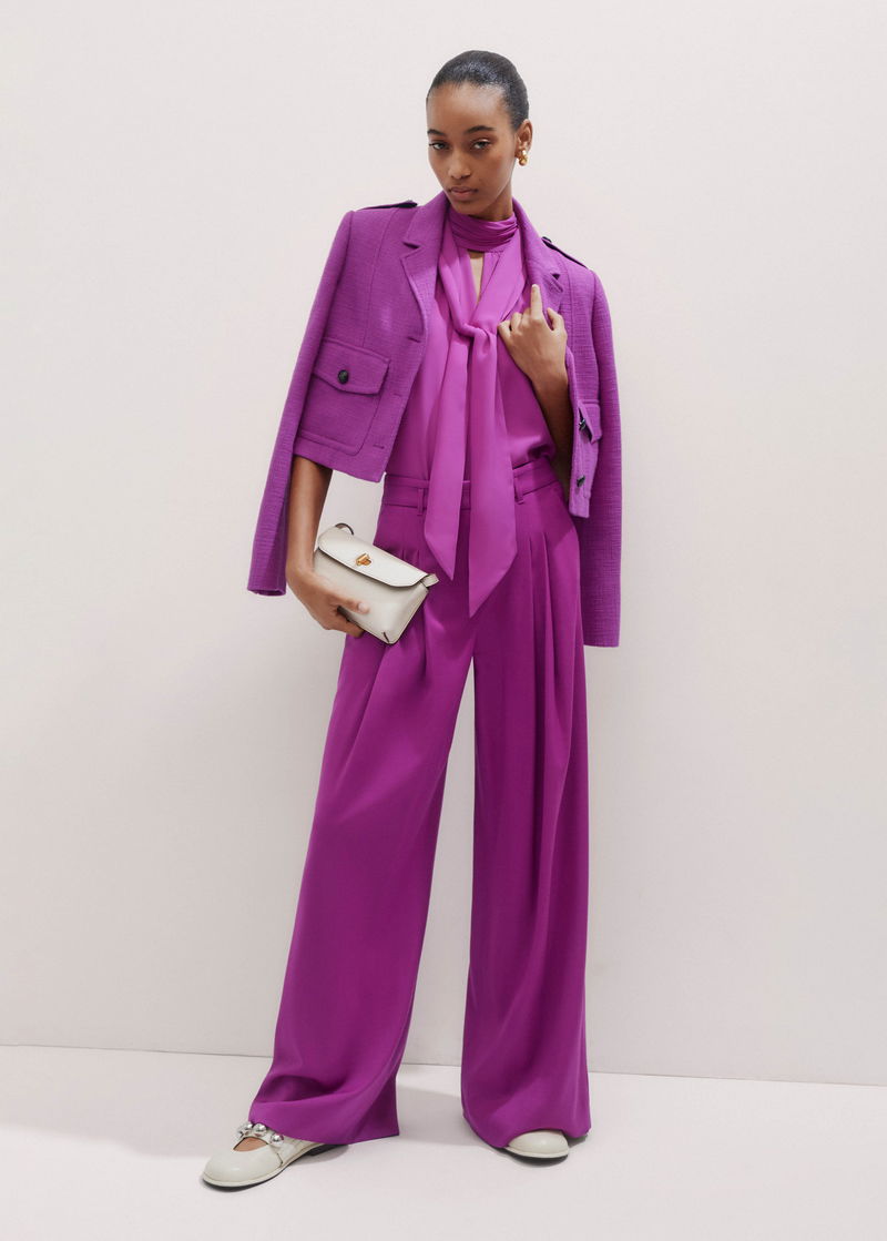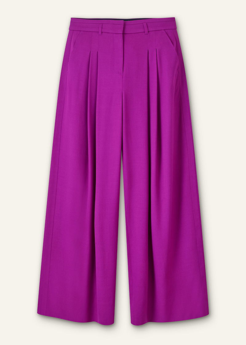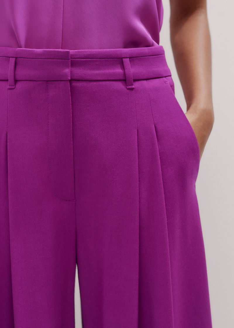 ME+EM's Purple Pleat Front Trouser is made from a lightweight wool-blend tailoring fabric, imbued with viscose and elastane for additional stretch and a fluid drape.