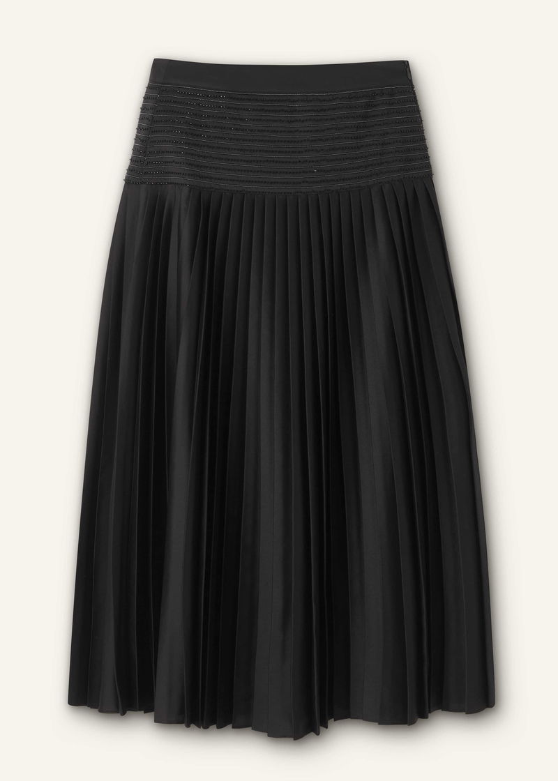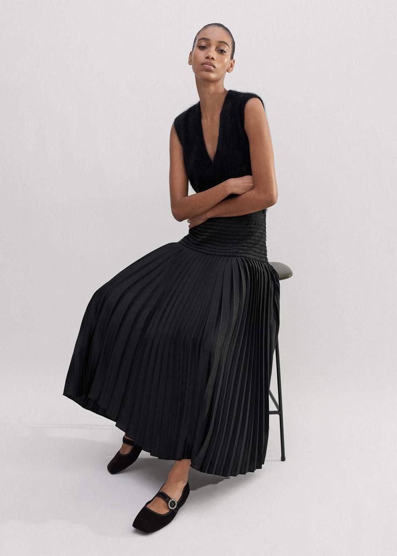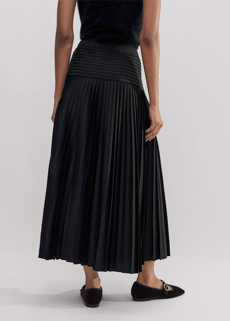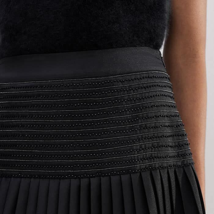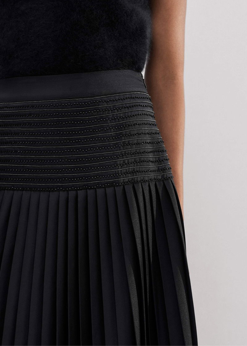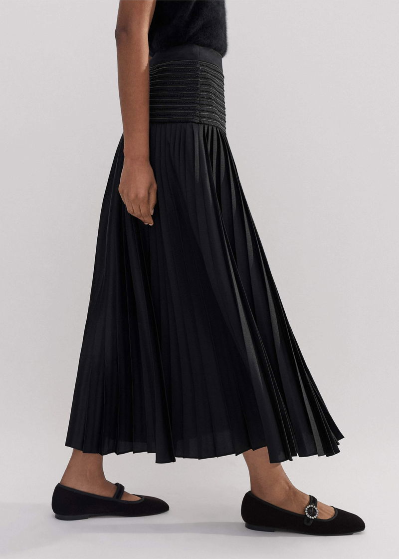 ME+EM's Black Pleated Evening Skirt is fitted with a wide-panel waistband that's embellished with delicate beading to add a point of interest.
