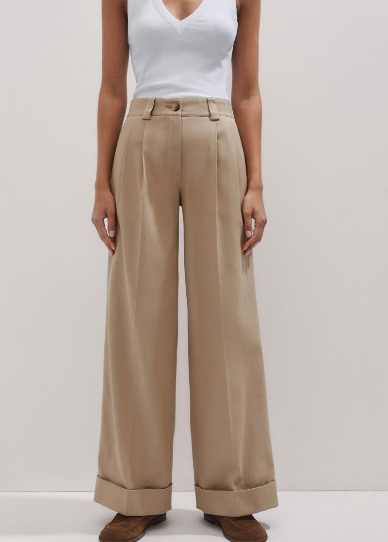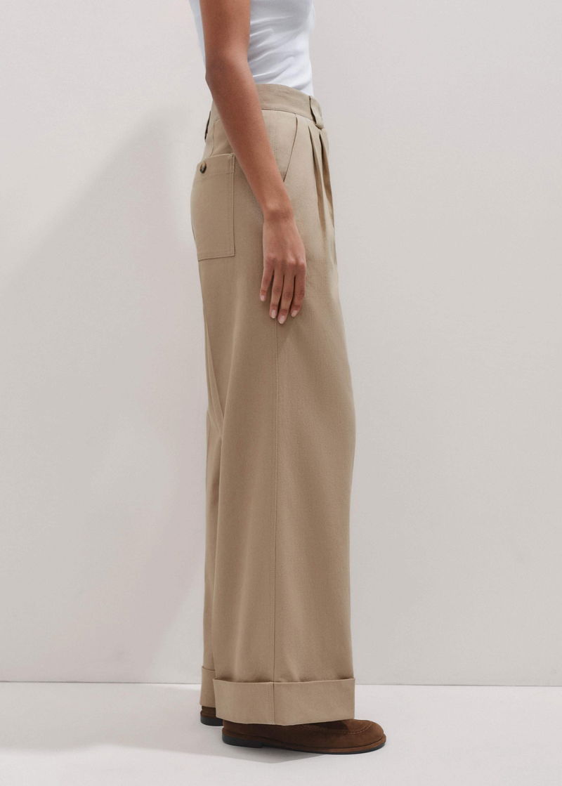 Pleated Straight-Leg Trainer-Grazer Trouser Desert Taupe