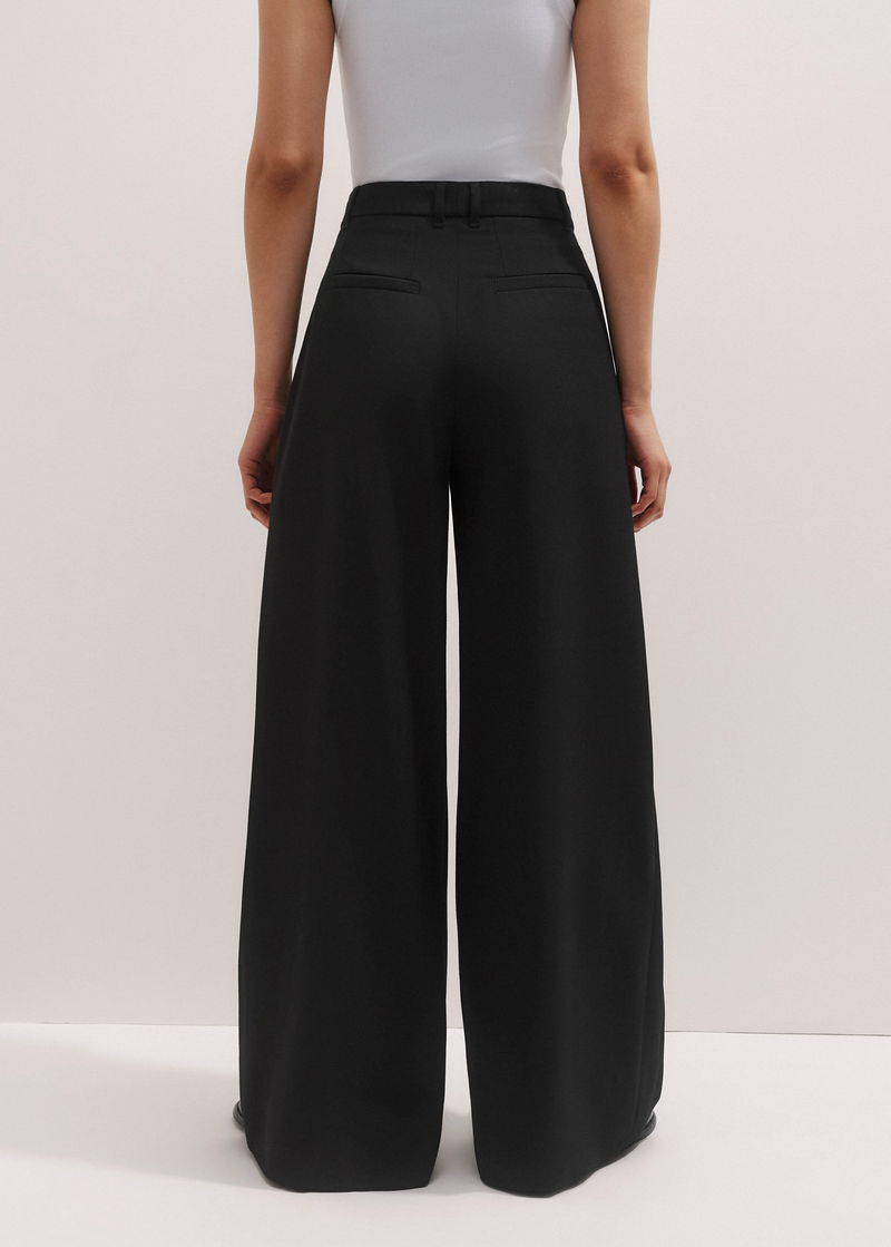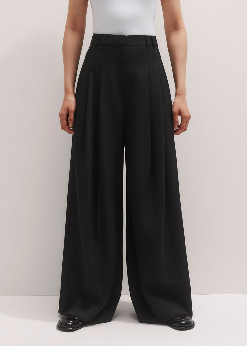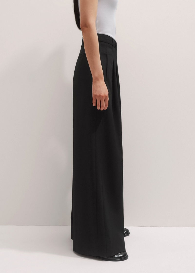 ME+EM's Black Pleated Wide-Leg Trouser has a smooth fit at the hips and a wide, fluid cut through the legs.