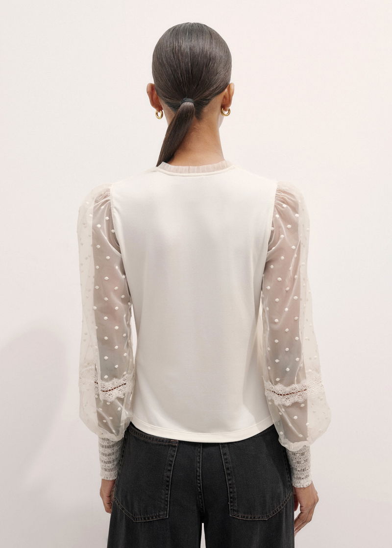 Polka Dot Tulle Layering Blouse Light Cream