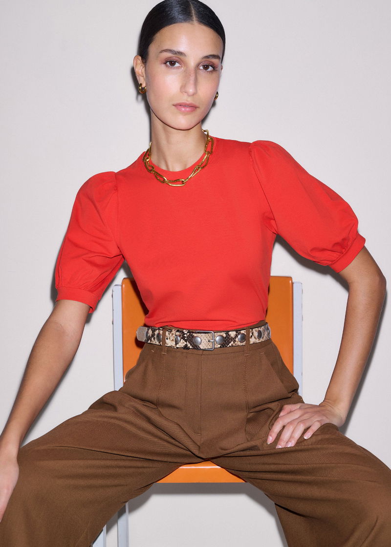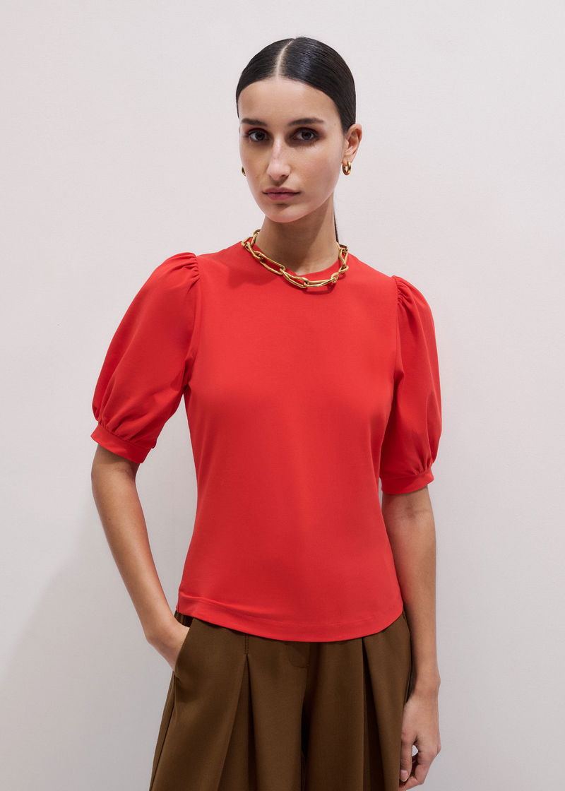 Pouf Sleeve Tee Poppy Red