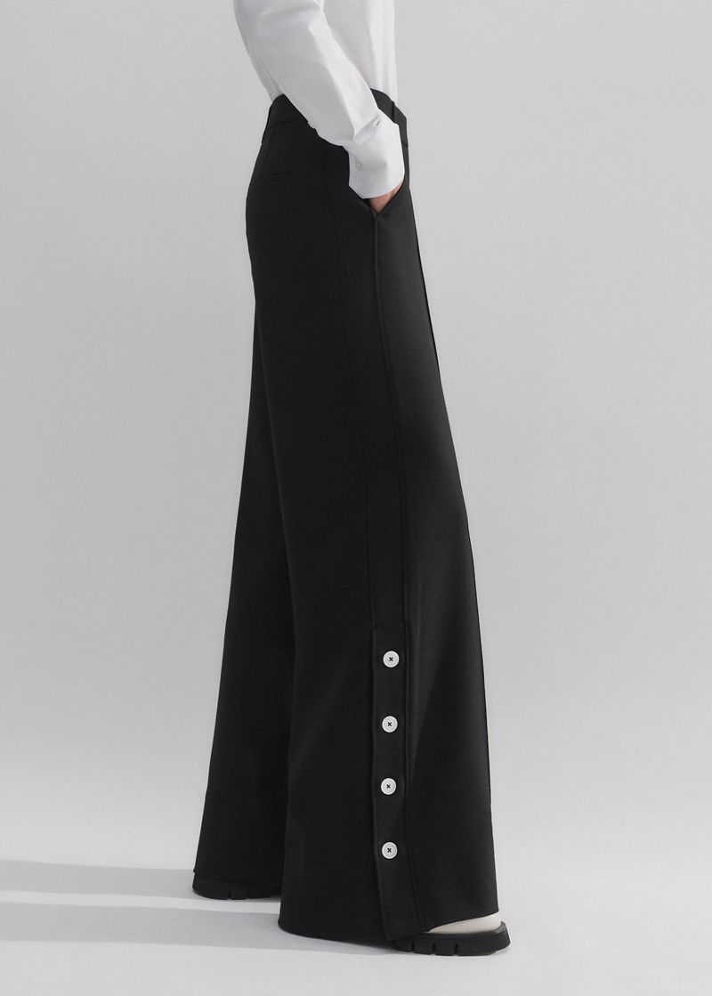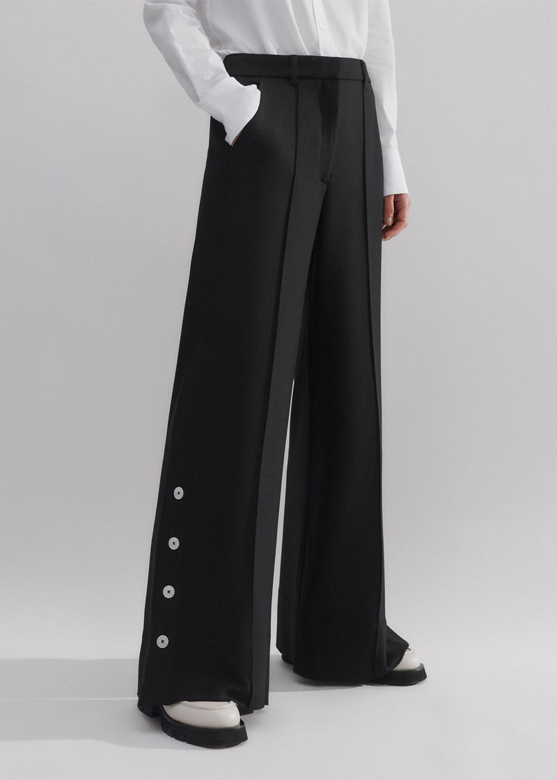 ME+EM's Black Regular-Length Button Hem Wide-Leg Trouser is crafted from twill tailoring which has a naturally fluid quality and a flattering drape.