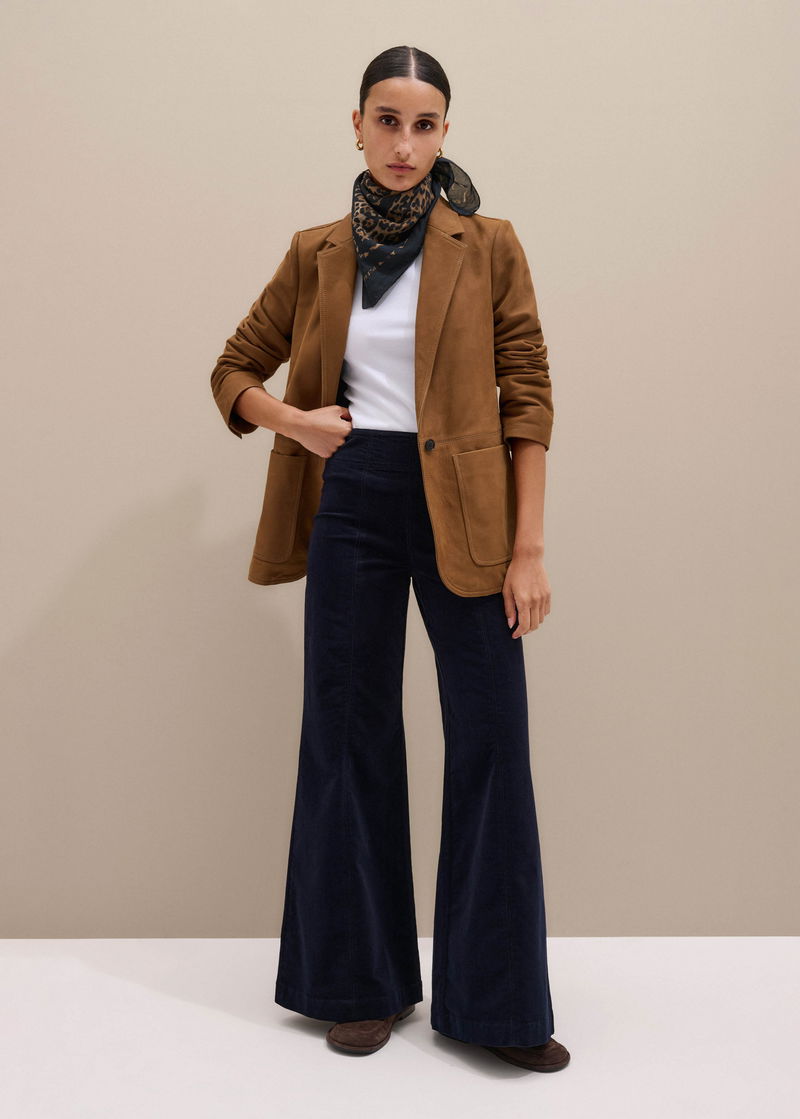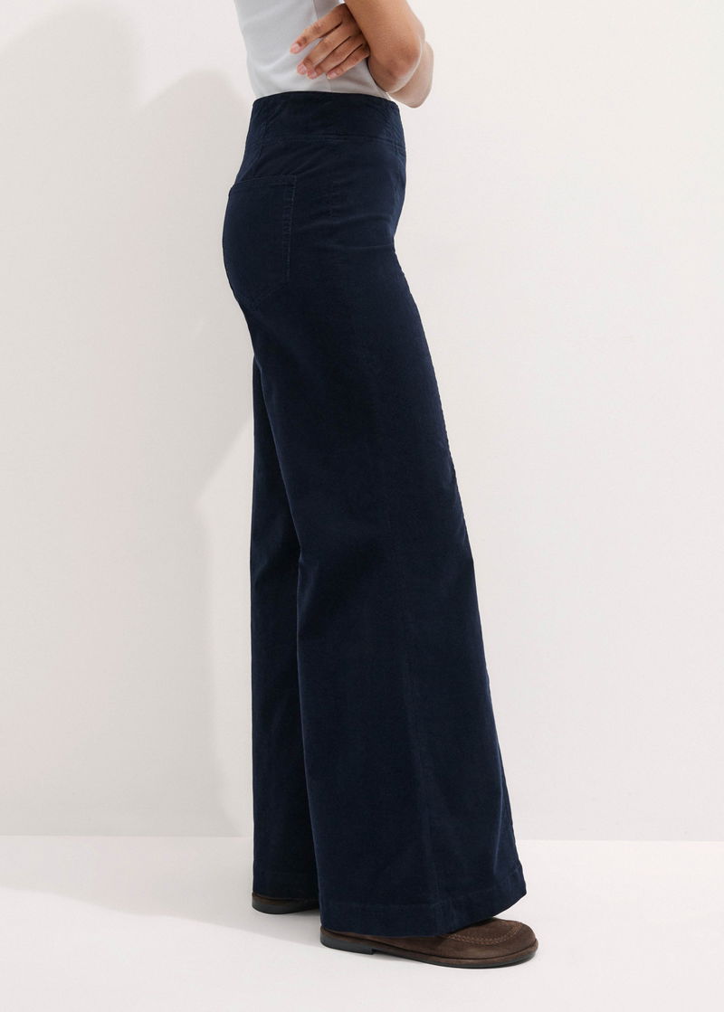 ME+EM's Navy Regular-Length Velvet Cord Travel Palazzo Pant is crafted from an Italian cotton cord with a plush velvety finish.
