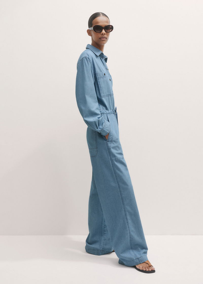 Relaxed Denim Jumpsuit Light Blue Wash
