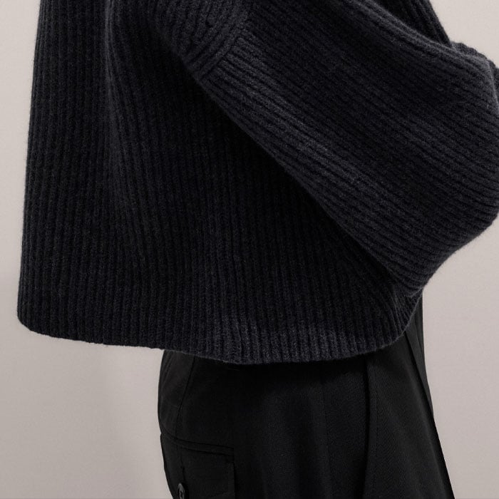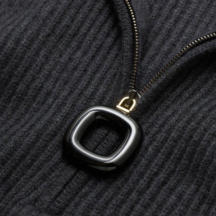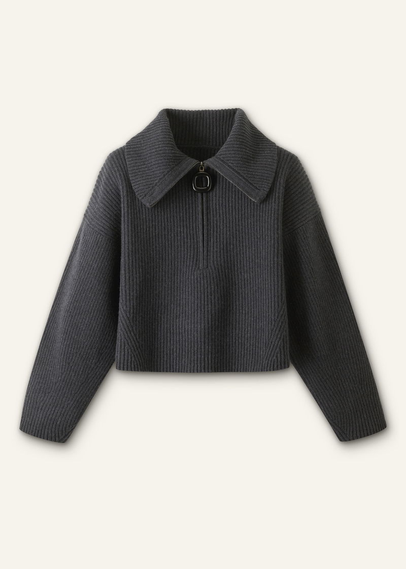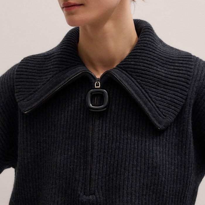 Relaxed Fly Neck Zip Jumper Ultra Dark Charcoal Melange