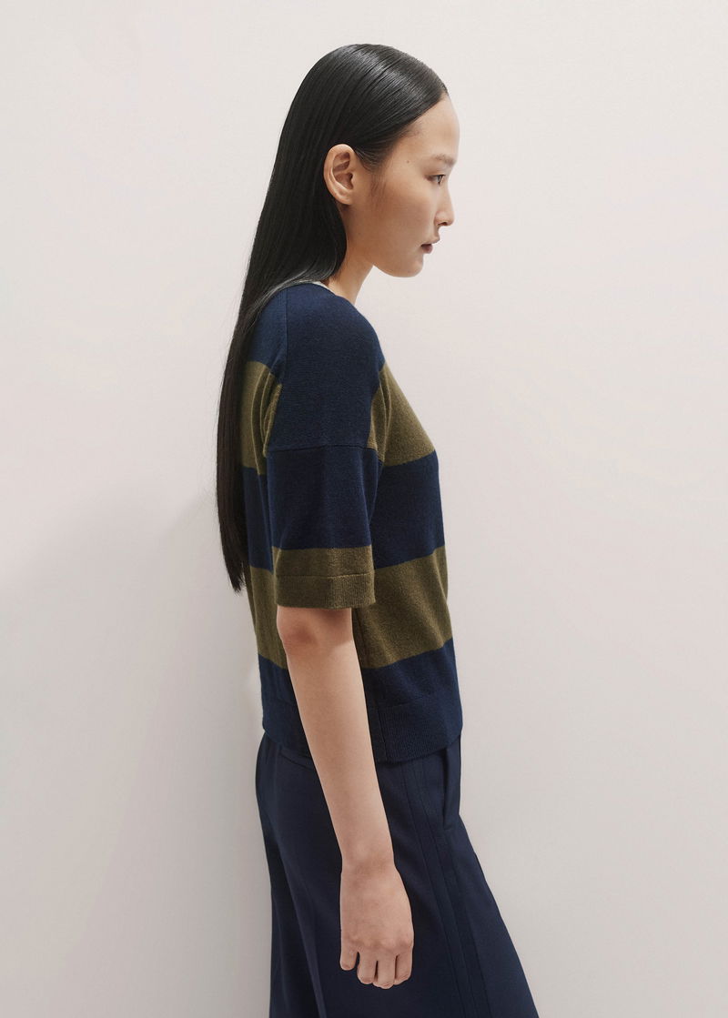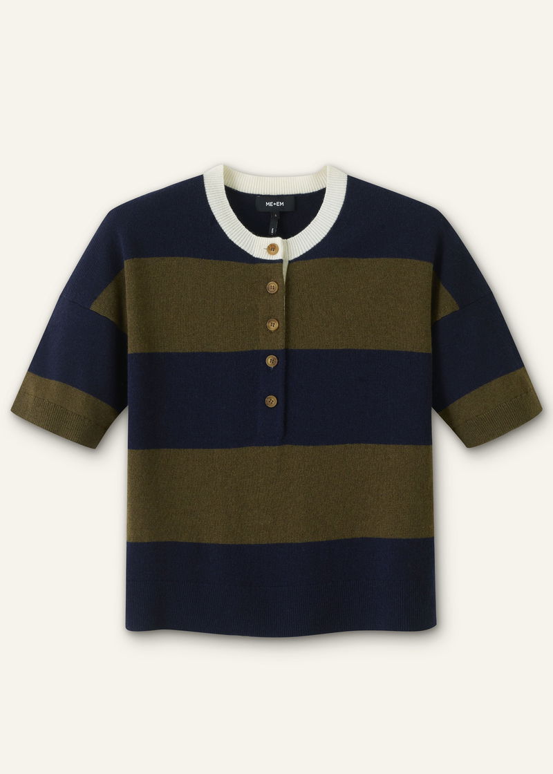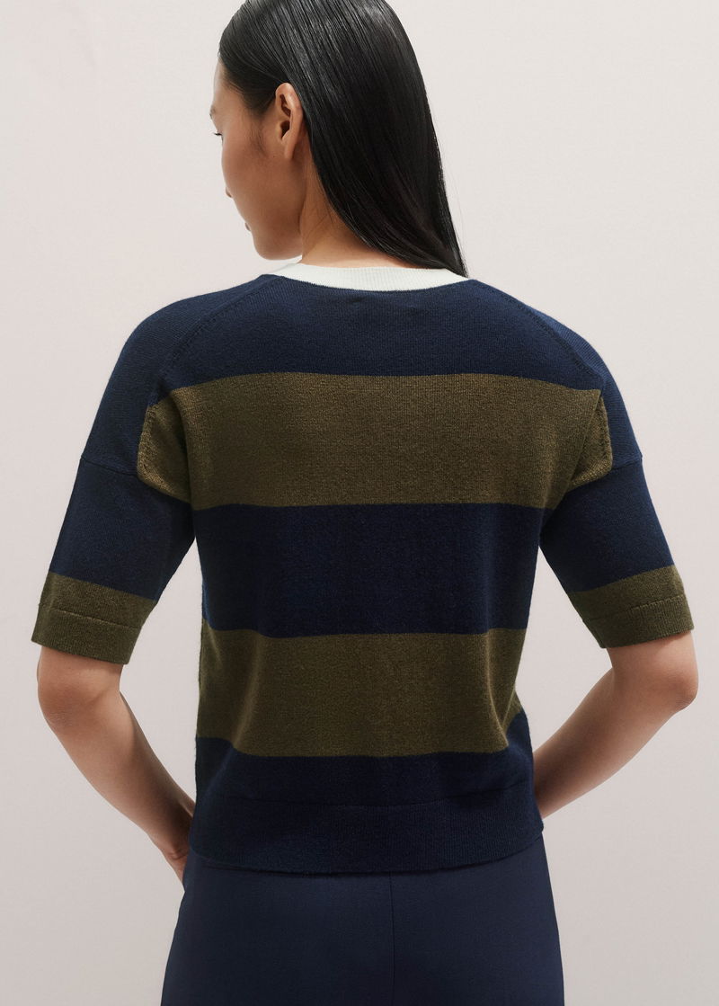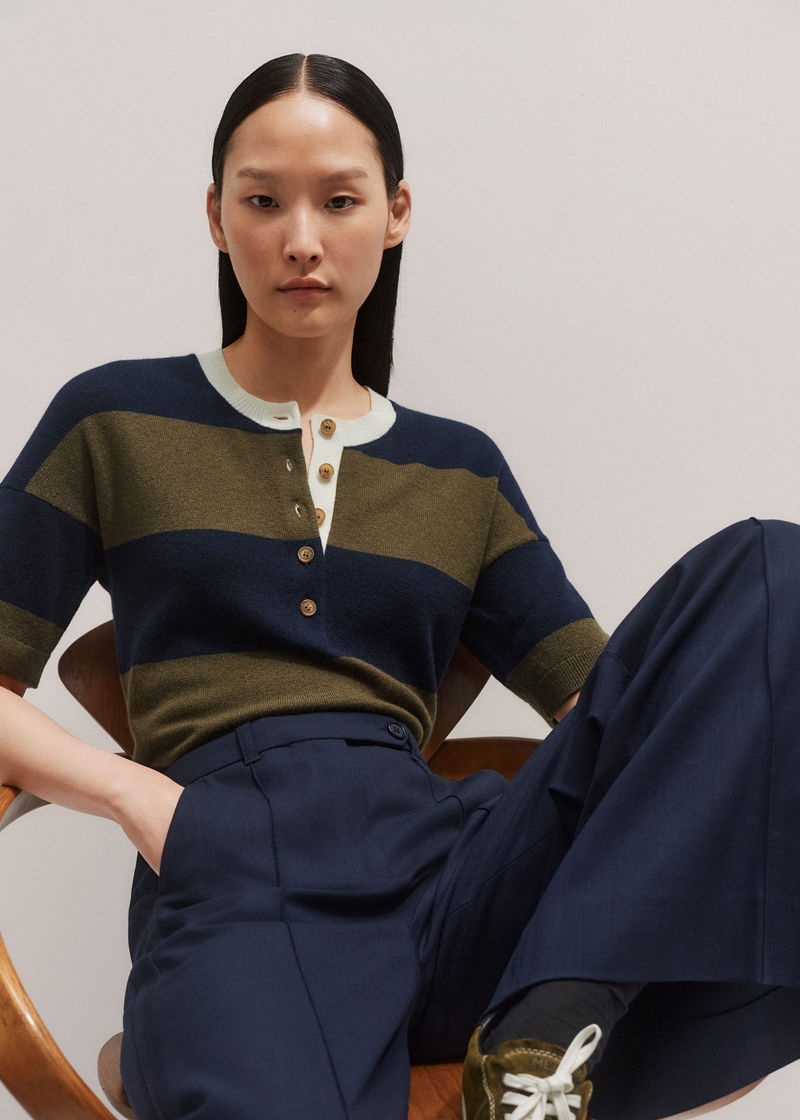 Relaxed Stripe Knit Henley Tee Bright Navy/Olive