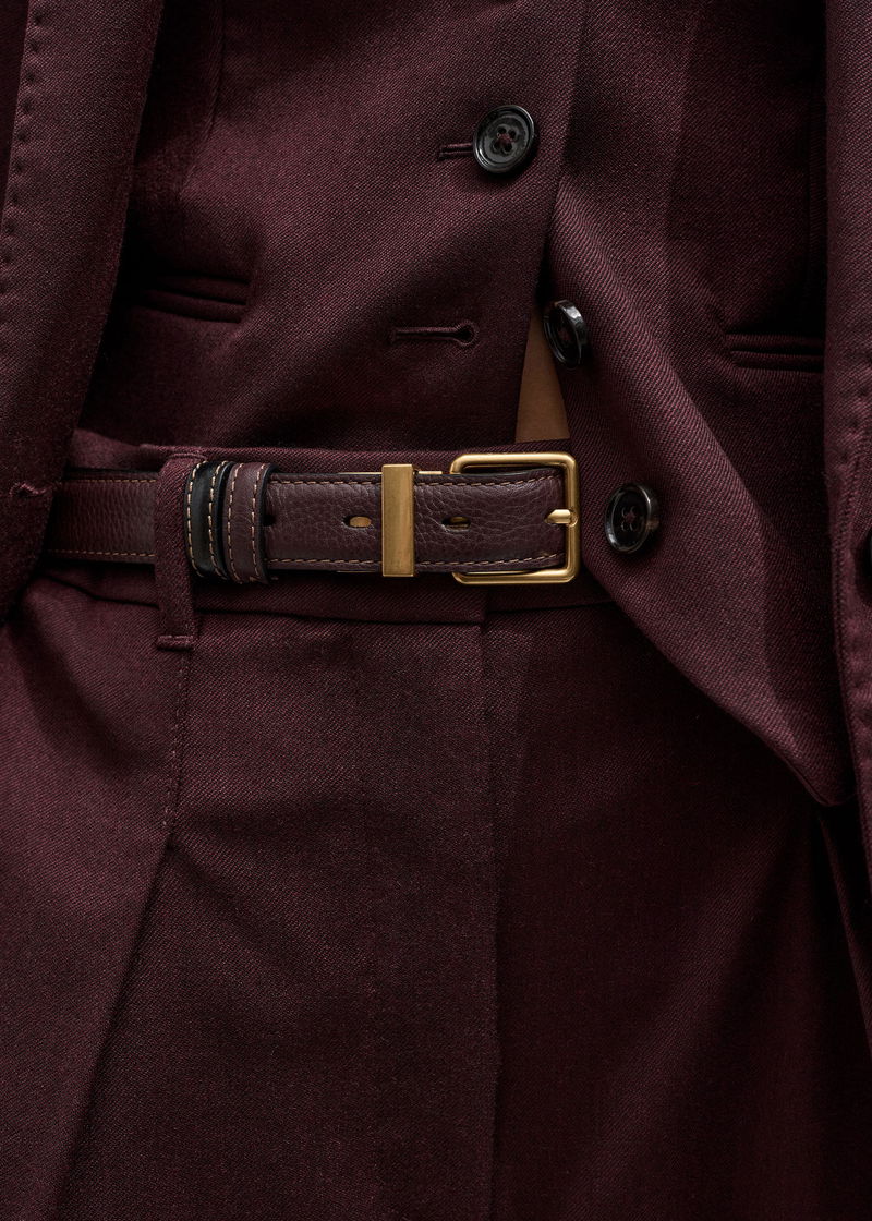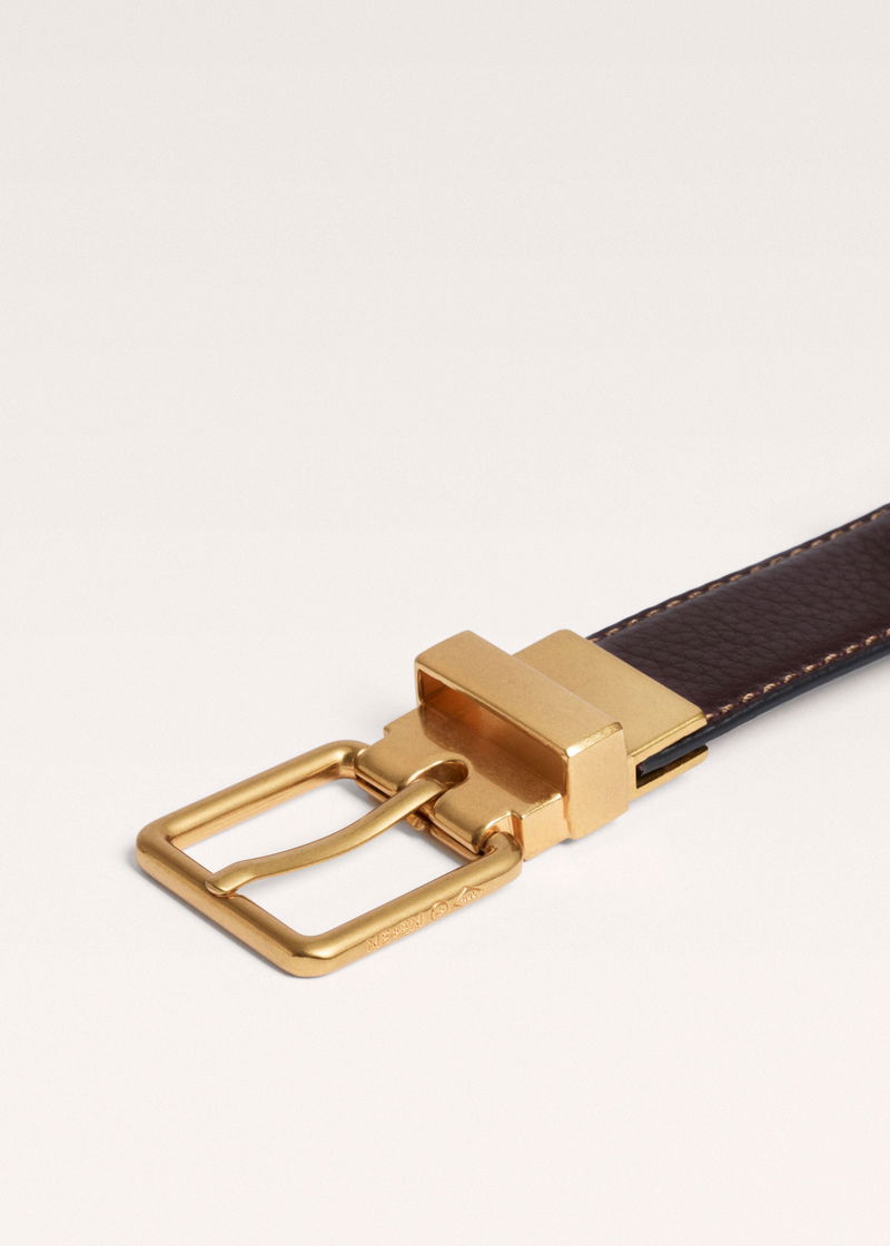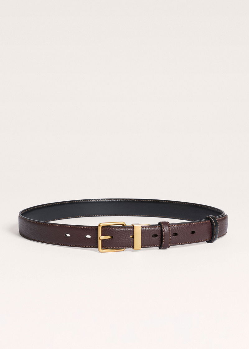 ME+EM's Red Leather Reversible Belt has black and merlot keepers that are removable, allowing you to colour-match to the side of the belt that you choose to display.