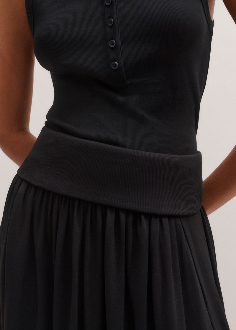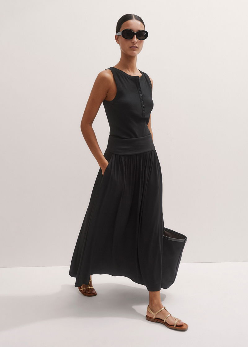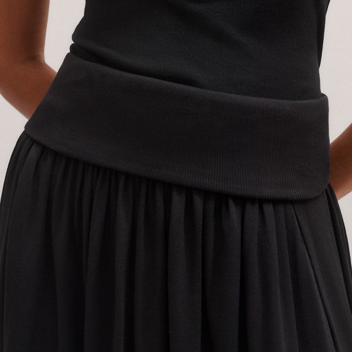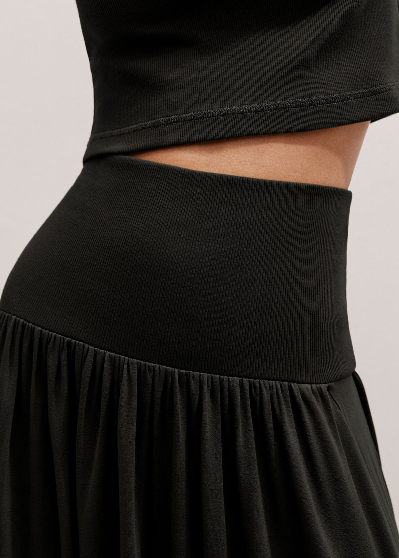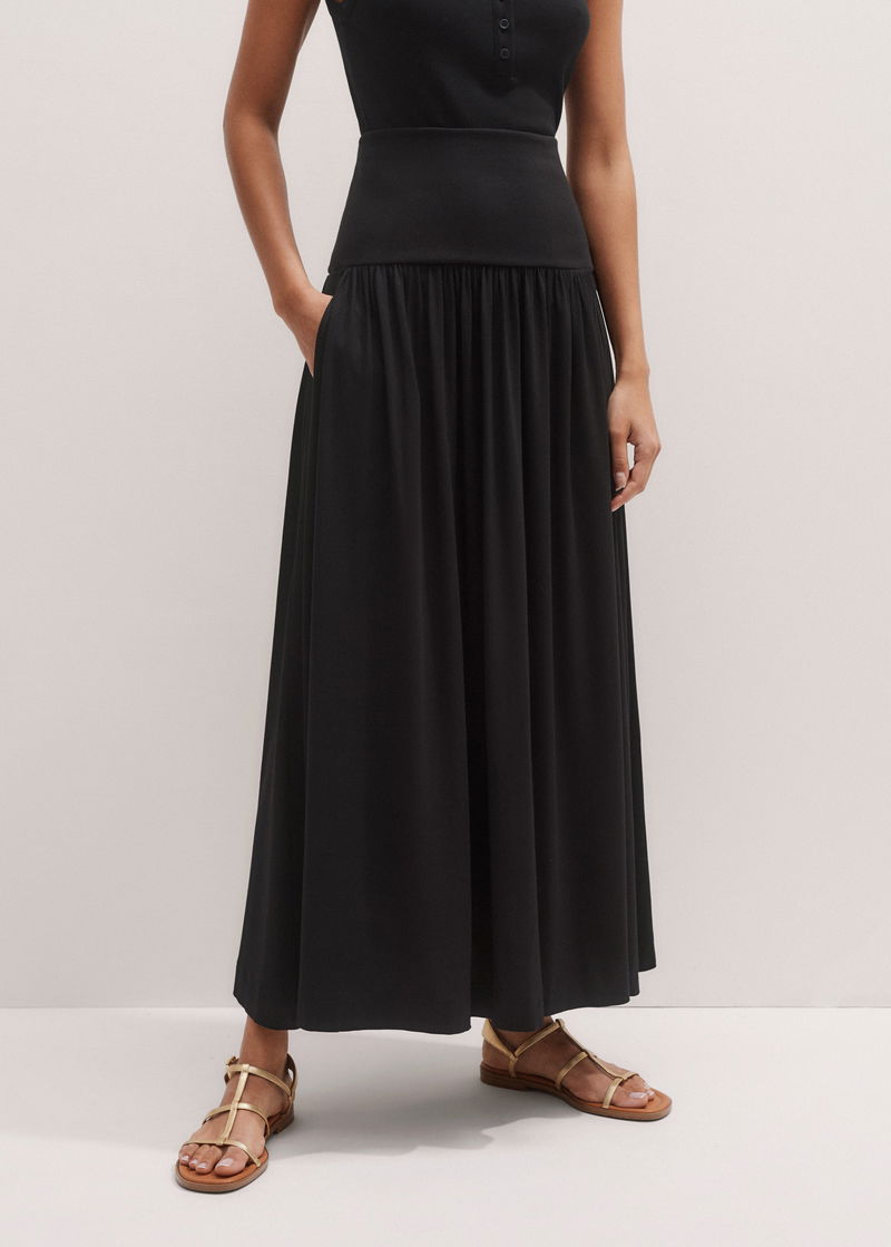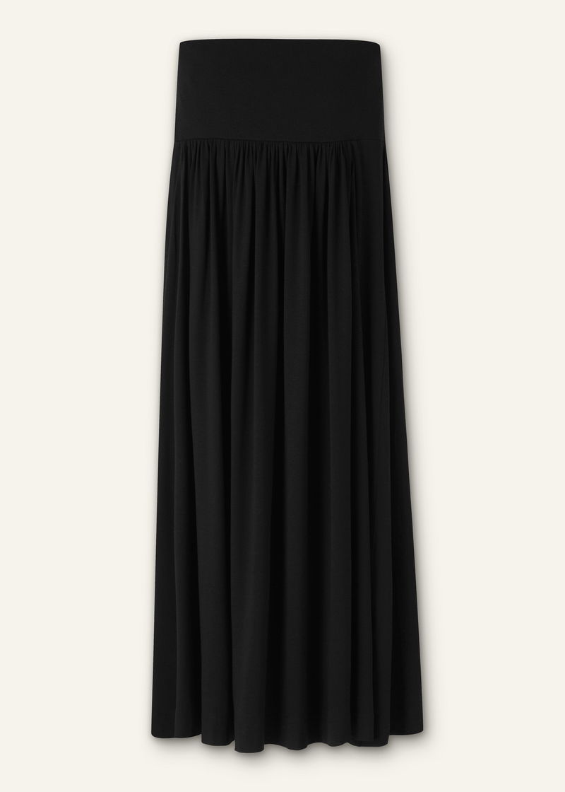 Rib Waist Maxi Skirt Black